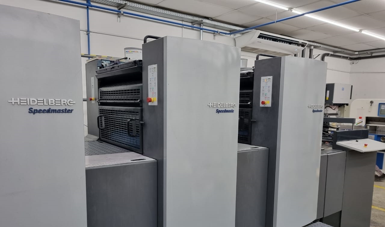 Impressora 4 cores, formato 52 x 74 cm, Prinect Press Center, EasyPlate, Alcolor, lavadores automáticos