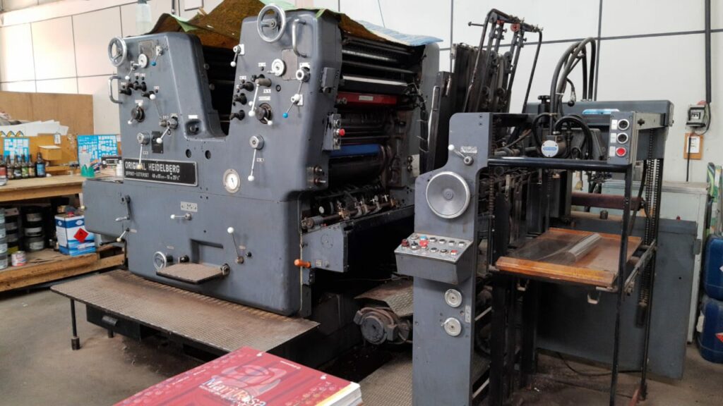 Impressora offset bicolor, formato 36 x 52 cm