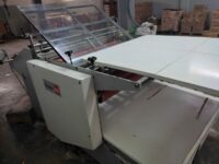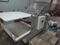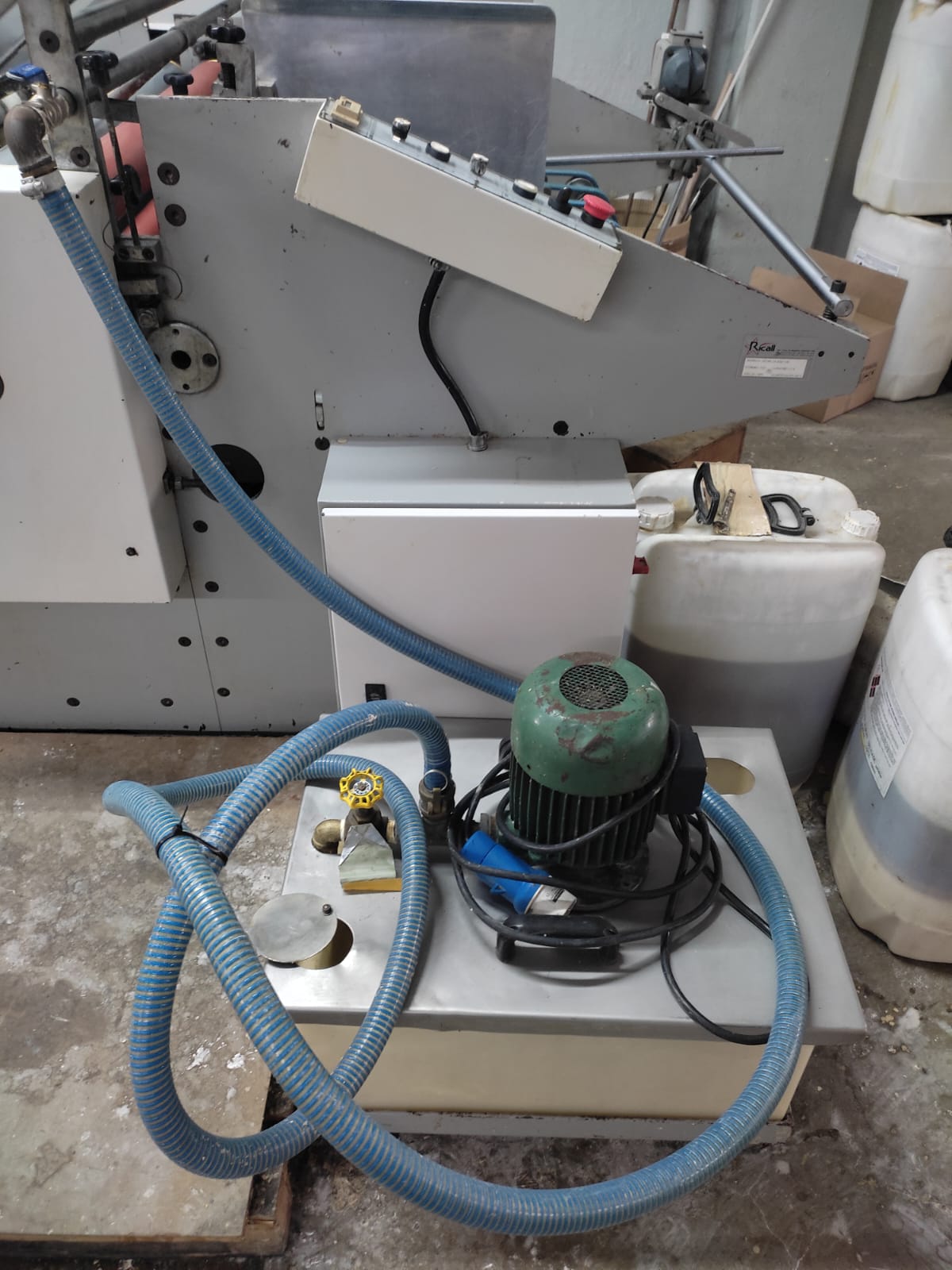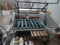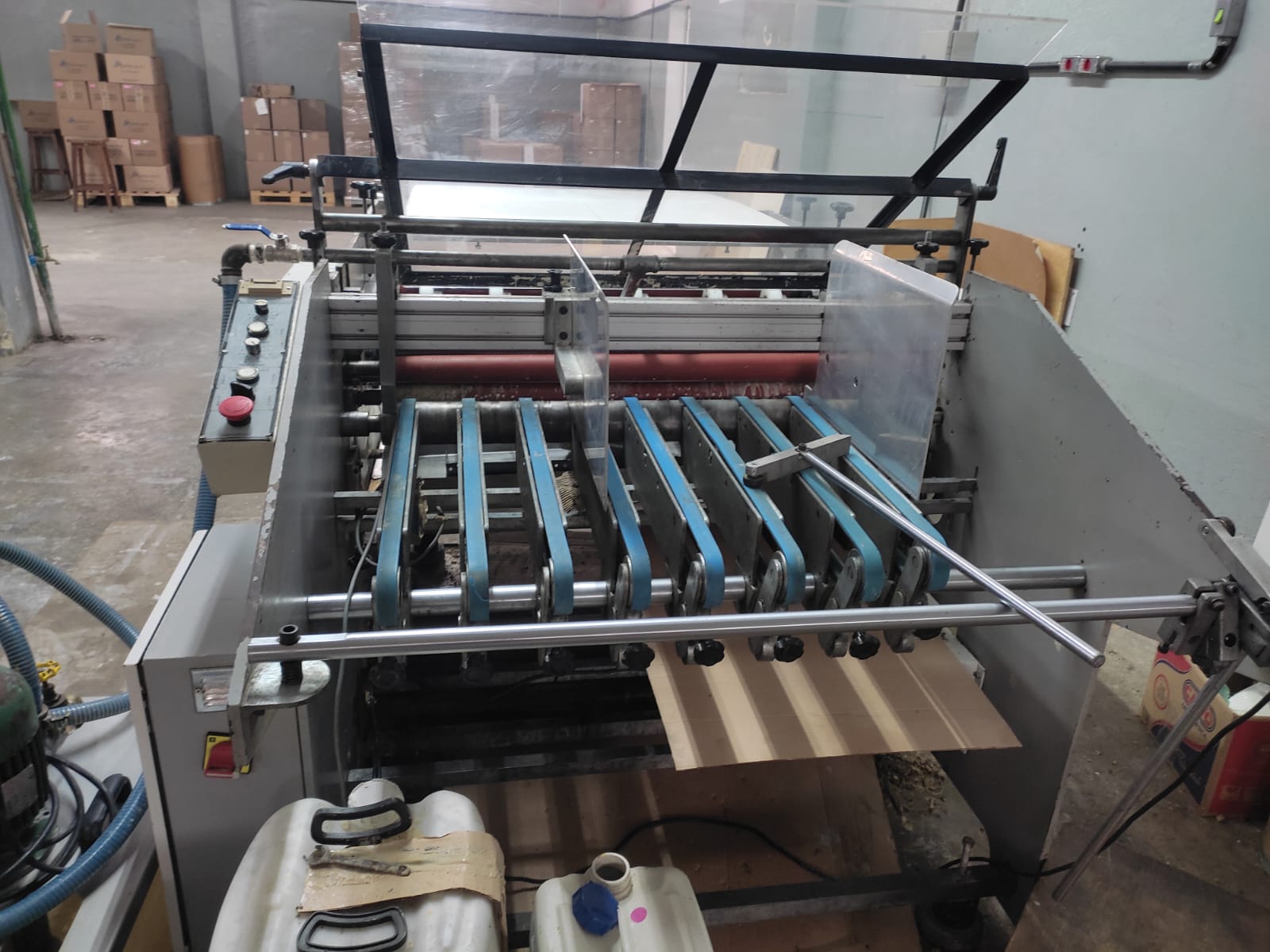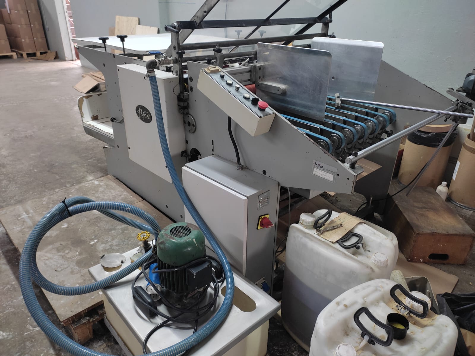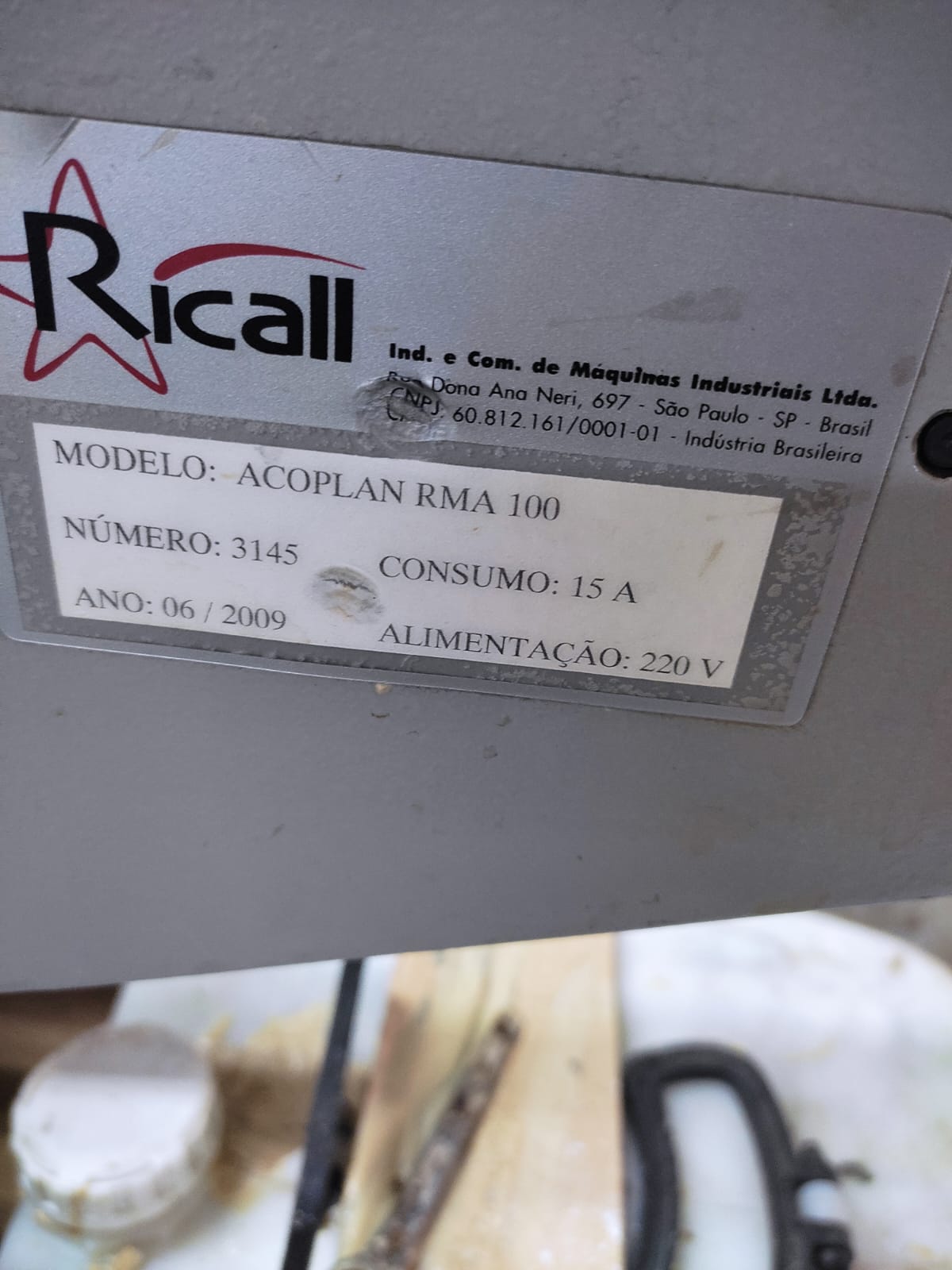 Acopladeira de micro-ondulado semi-automática usada, marca Ricall, modelo RMA 100, ano 2009 com 100 cm de largura, alimentação automática, bomba de cola, compactador na saída.