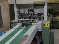 Alceadeira e grampeadeira usada, marca Muller Martini, modelo Presto, ano 2001, formato 305 x 365 mm, 6 estações de alceamento, 2 alimentador de capas, grampeadores e trilateral