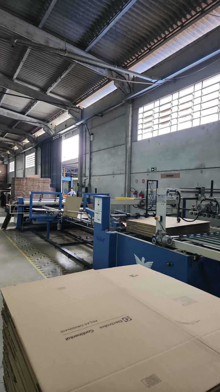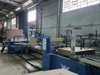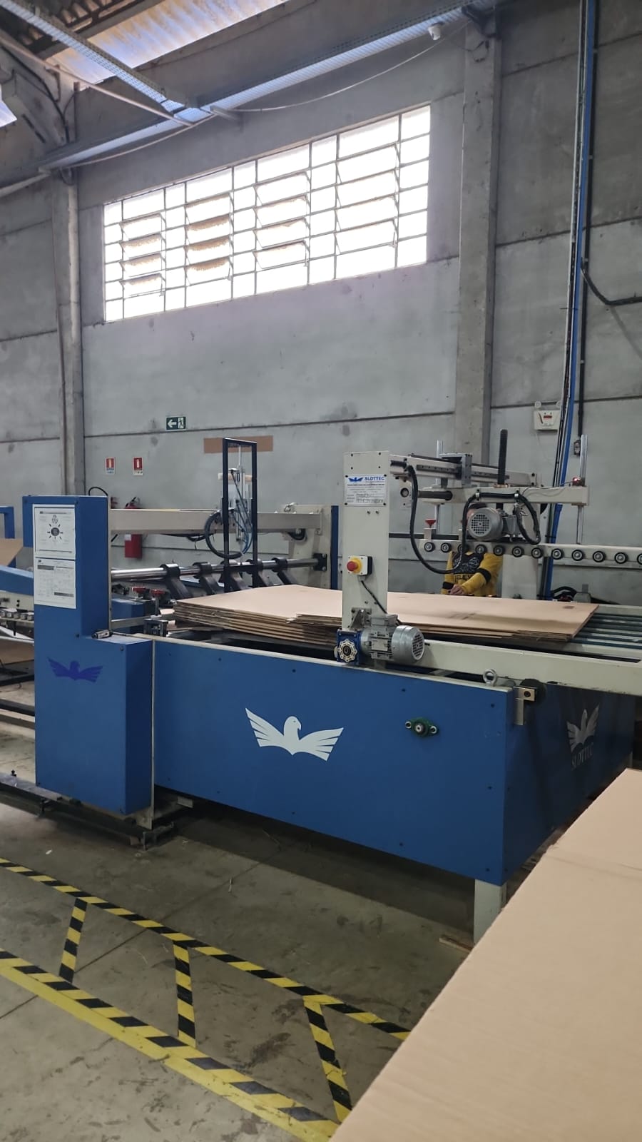Coladeira de Caixas de papelão ondulado usada, marca Slottec, ano 2021, formato 2400 mm, em produção.