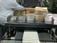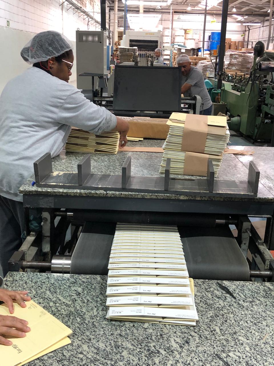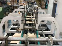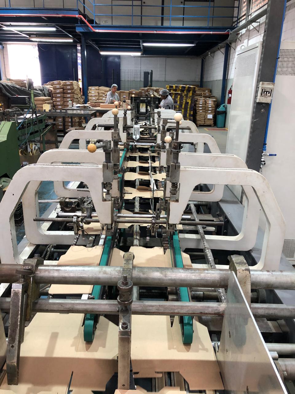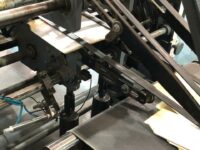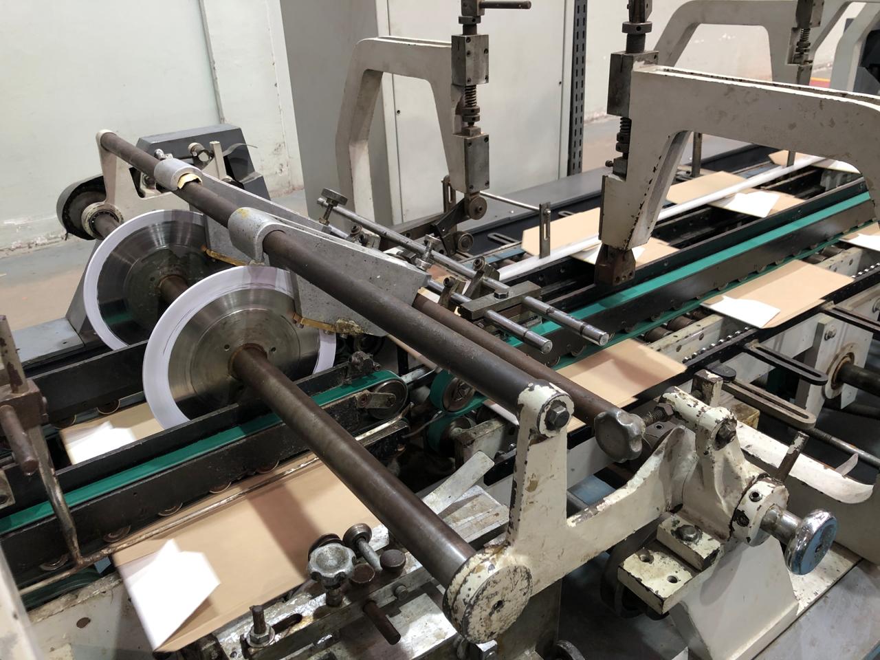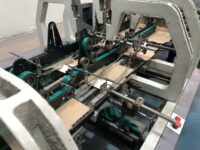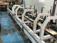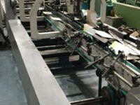 Coladeira de cartuchos usada, marca Ricall, modelo RC 100 PFA, ano 1990, formato máximo 1100 mm, formato mínimo 540 mm, cola lateral, fundo automático, abas duplas, velocidade máxima 230 m/min., vibrador na entrada, único dono, com catálogo, em produção.