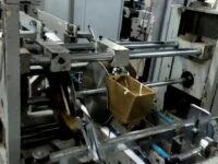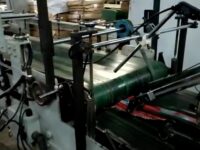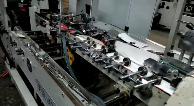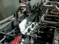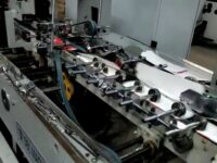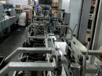 Coladeira de cartuchos usada, marca SBL, modelo STS 650 FC, ano 2005, formato 650 mm de largura, de trilho, 3 pontos de cola, fundo automático, em produção.