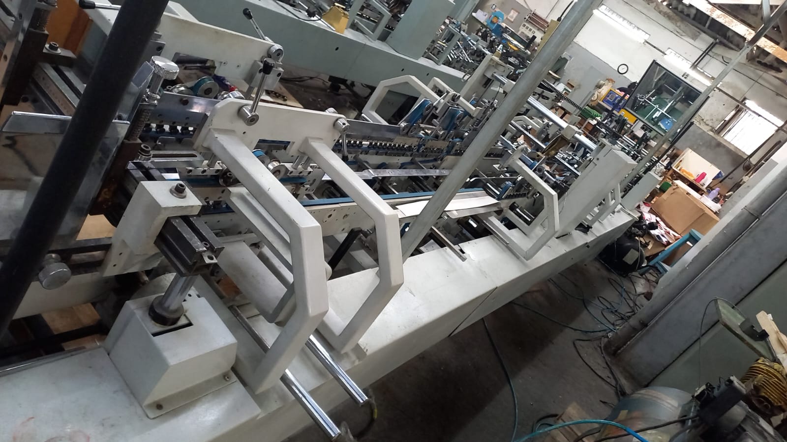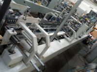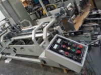 Coladeira de cartuchos usada, marca SBL, modelo STS 650 FC, ano 2005, largura máxima 680 mm, transporte de trilho, 2 coleiros superiores e 2 coleiros inferiores, cola lateral e fundo automático, em produção.