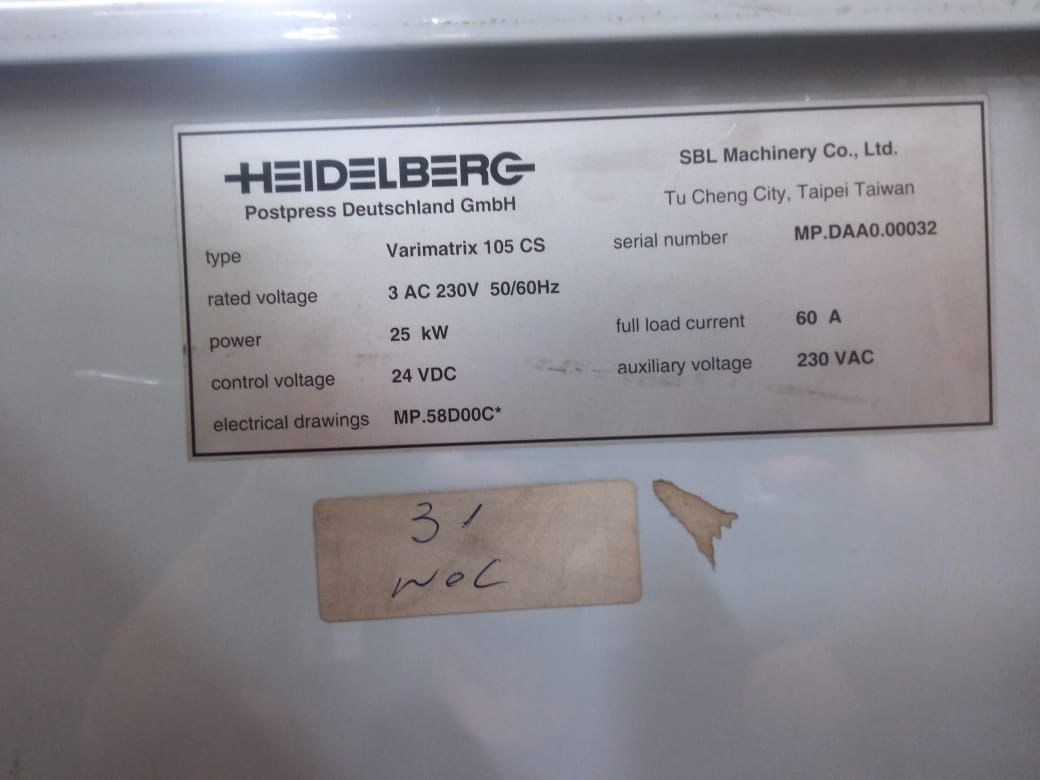 Corte e vinco automática usada, marca Heidelberg/SBL, modelo Varimatrix 105 CS, ano 2006, com destaque e demais especificações abaixo: