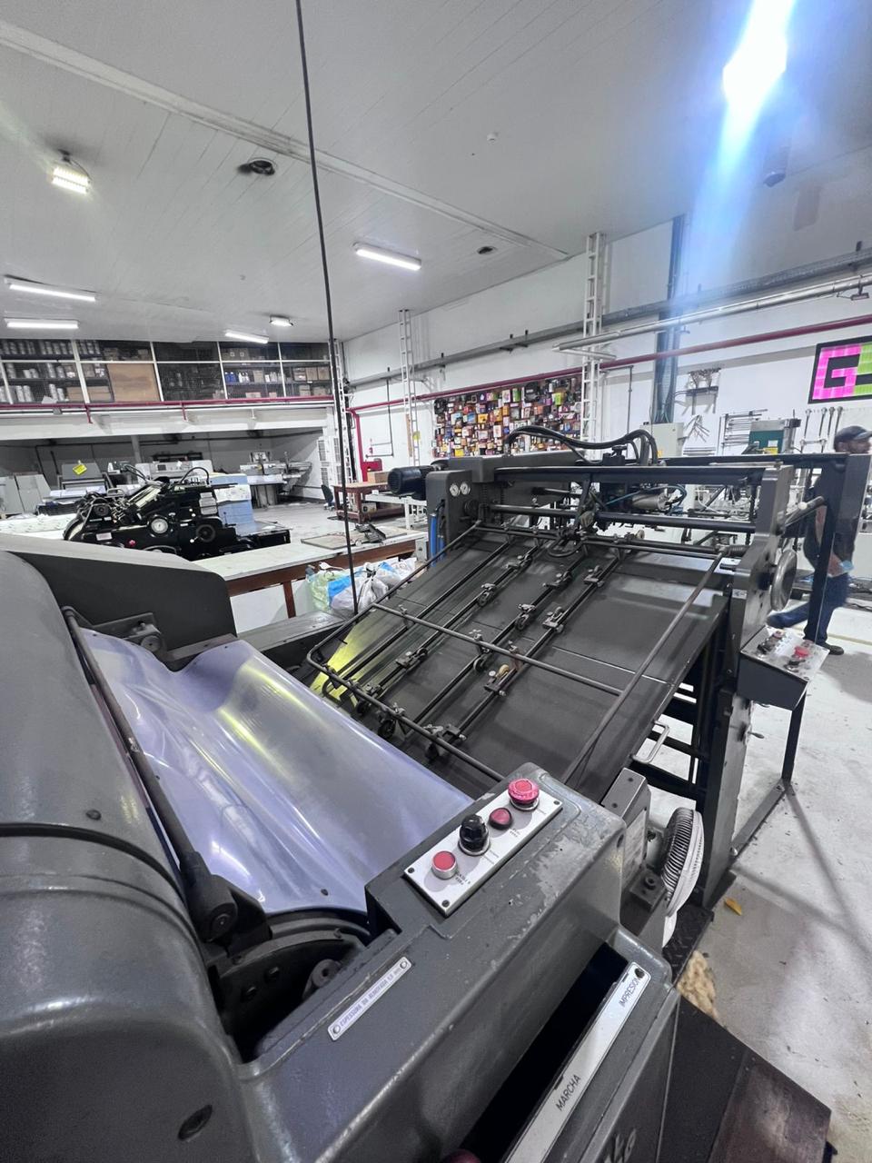 Corte e vinco automática usada, marca Heidelberg, modelo SGS Cylinder (S-Range), formato 72 x 104 cm, velocidade de 3.600 FPH, em produção, perfeito estado.