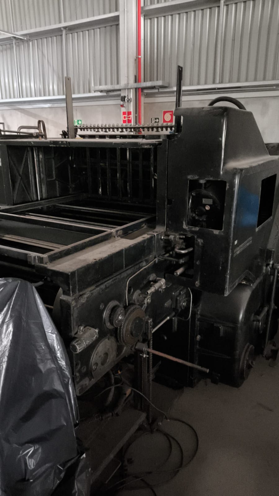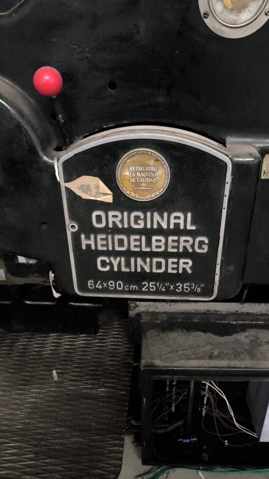 Corte e vinco automática usada, marca Heidelberg, modelo Cylinder, anos 60, formato 64 x 90 cm, equipada com HOT STAMPING, em produção.