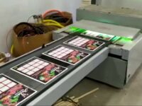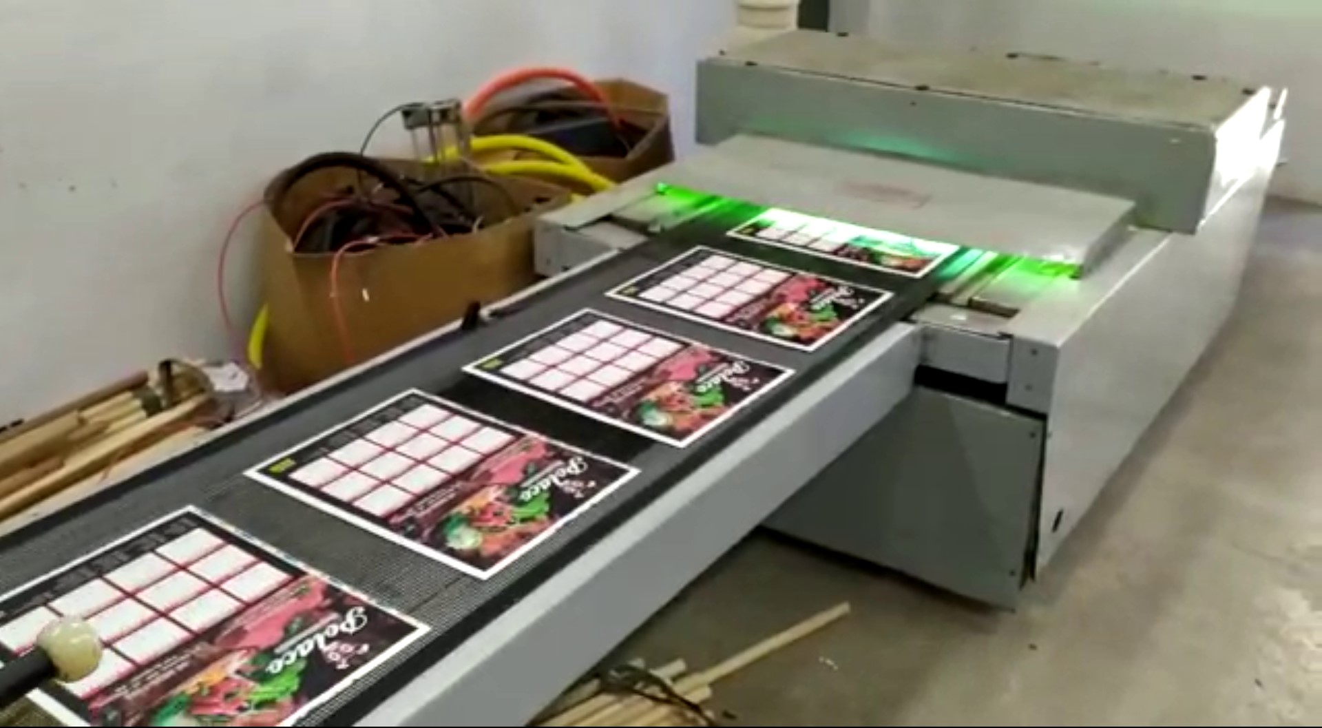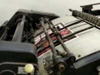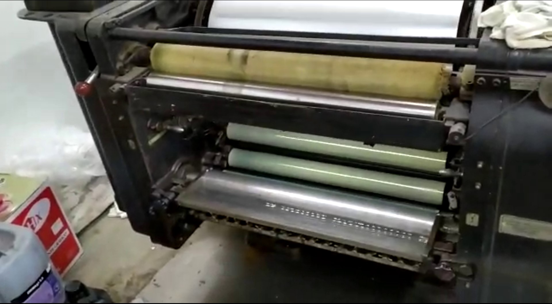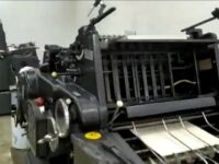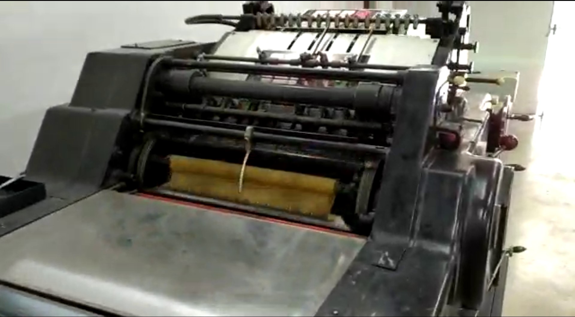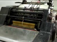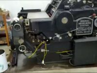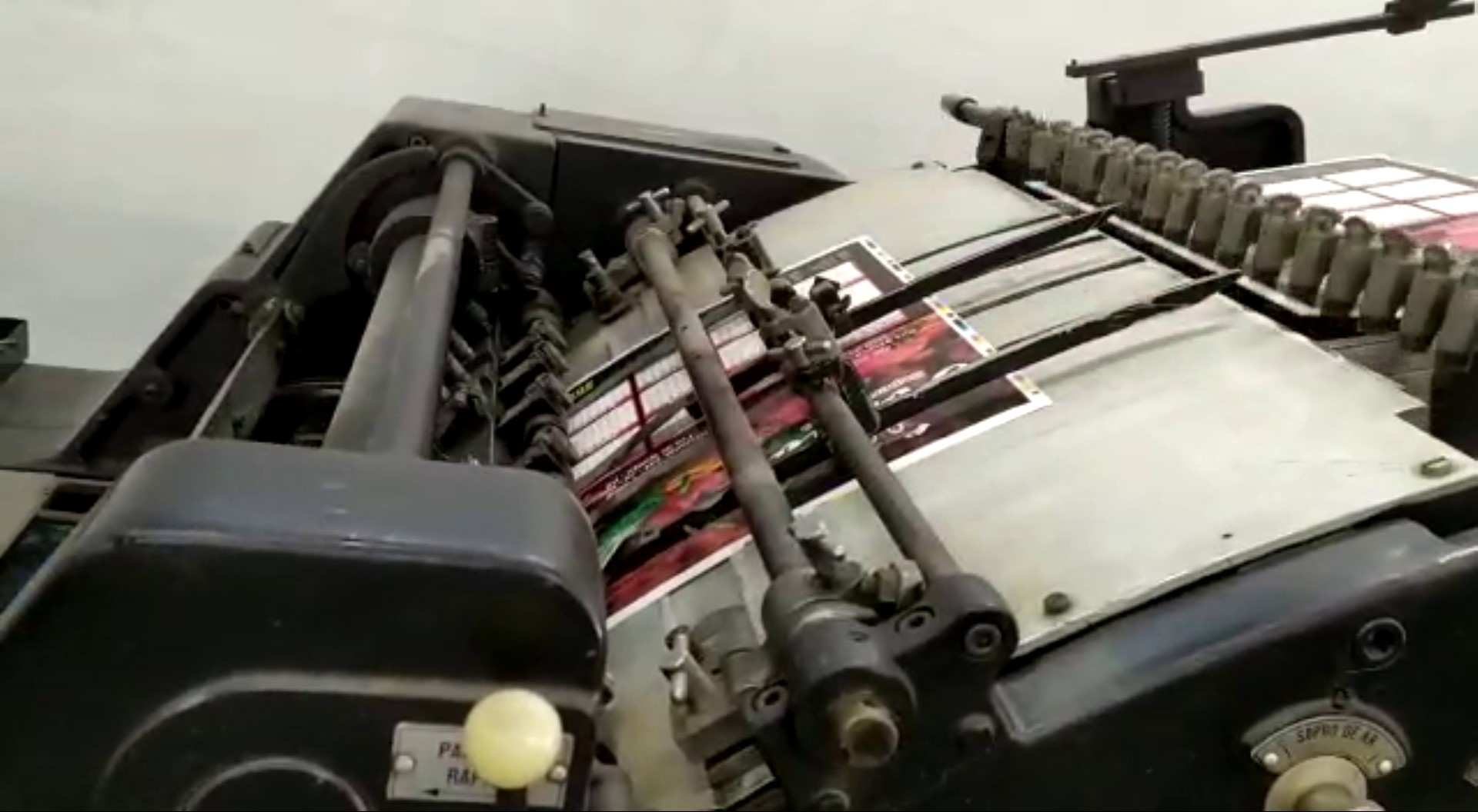 Corte e vinco Heidelberg Einfarben Offset Letterset, anos 60, formato 40 x 57 cm, rolaria UV, adaptada para verniz UV, com forno Bally de 80 cm de largura, 2 lâmpadas e esteira comprida.