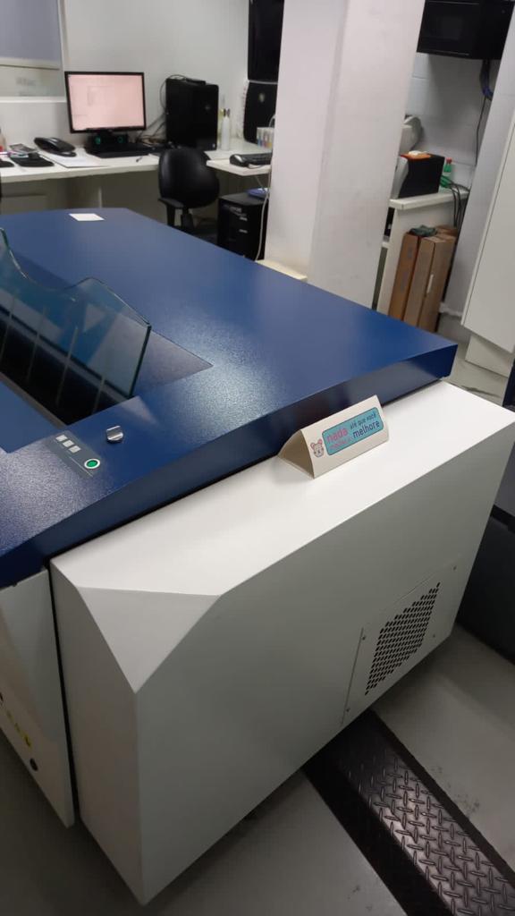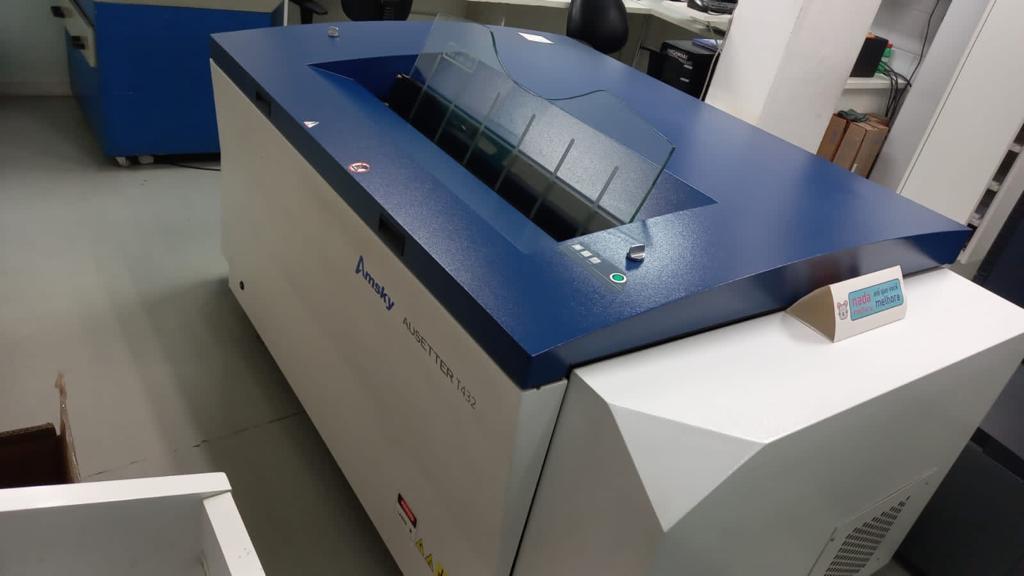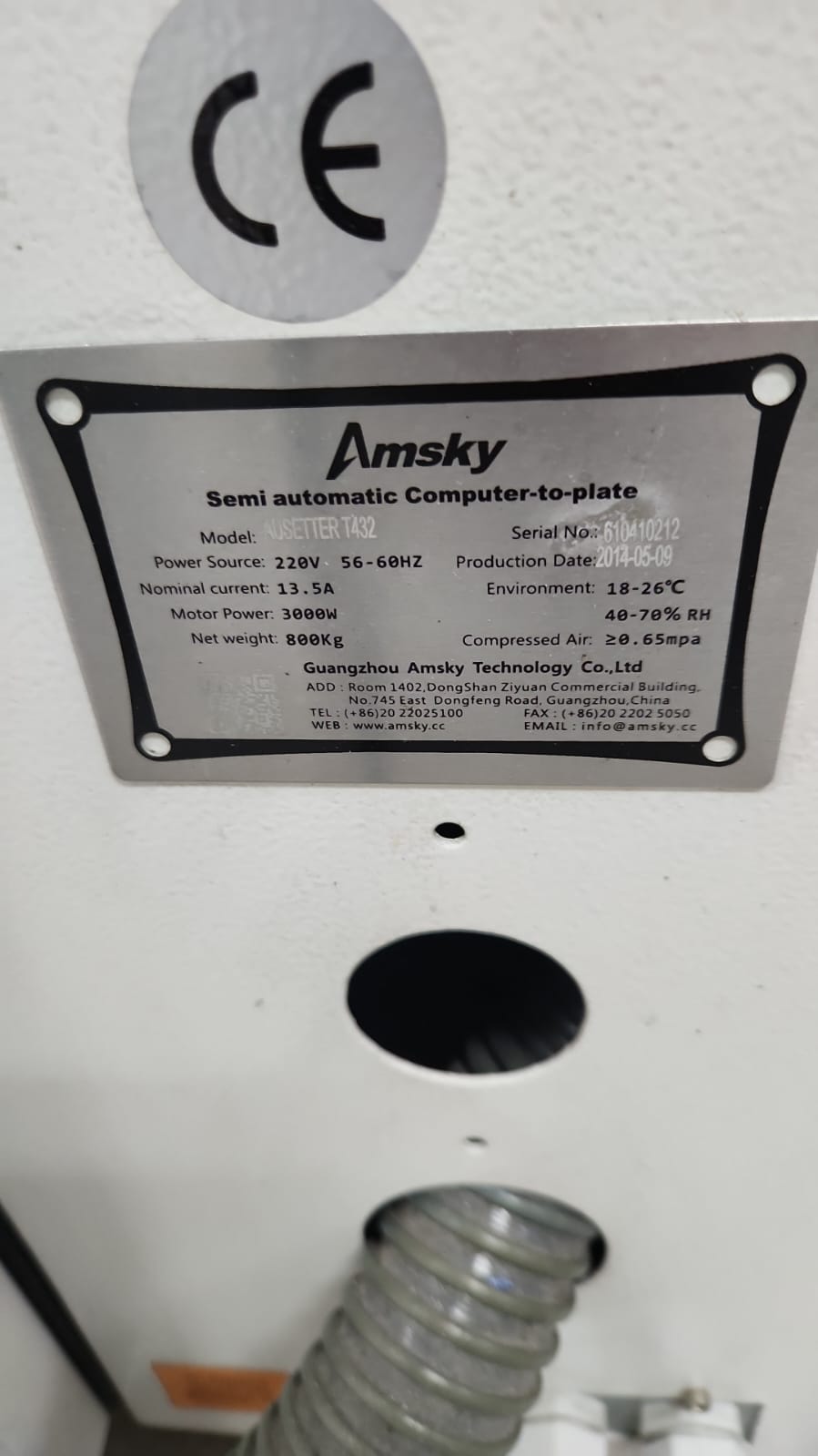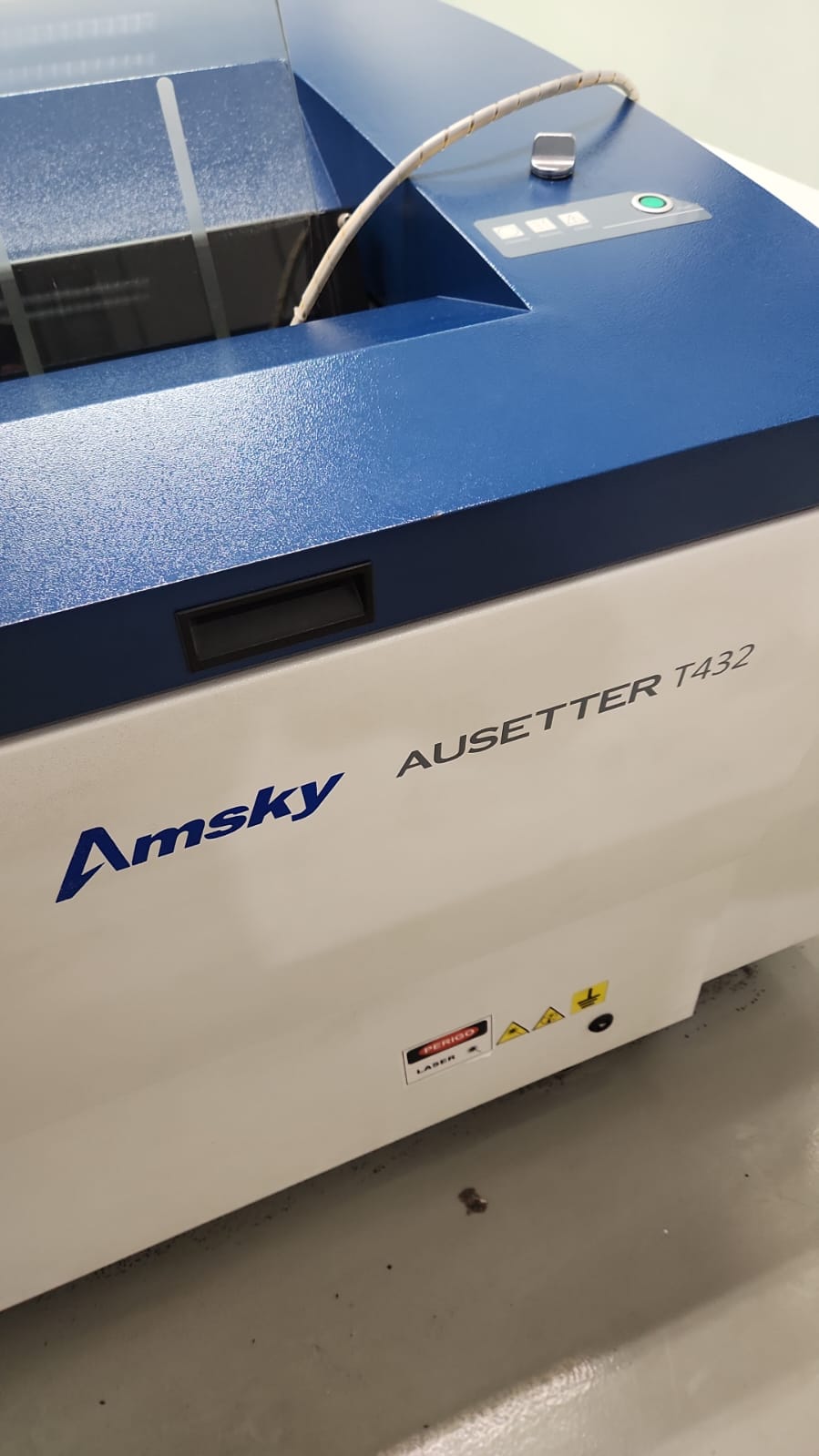 CTP – Compute To Plate usado, marca Amsky, modelo Ausetter T432, ano 2014, formato máximo 830 x 660 mm, laser térmico, velocidade 22 chapas/h, com 1 servidor com Workflow Trueflow, nobreak e PC com monitor. Só gravou 56 mil chapas