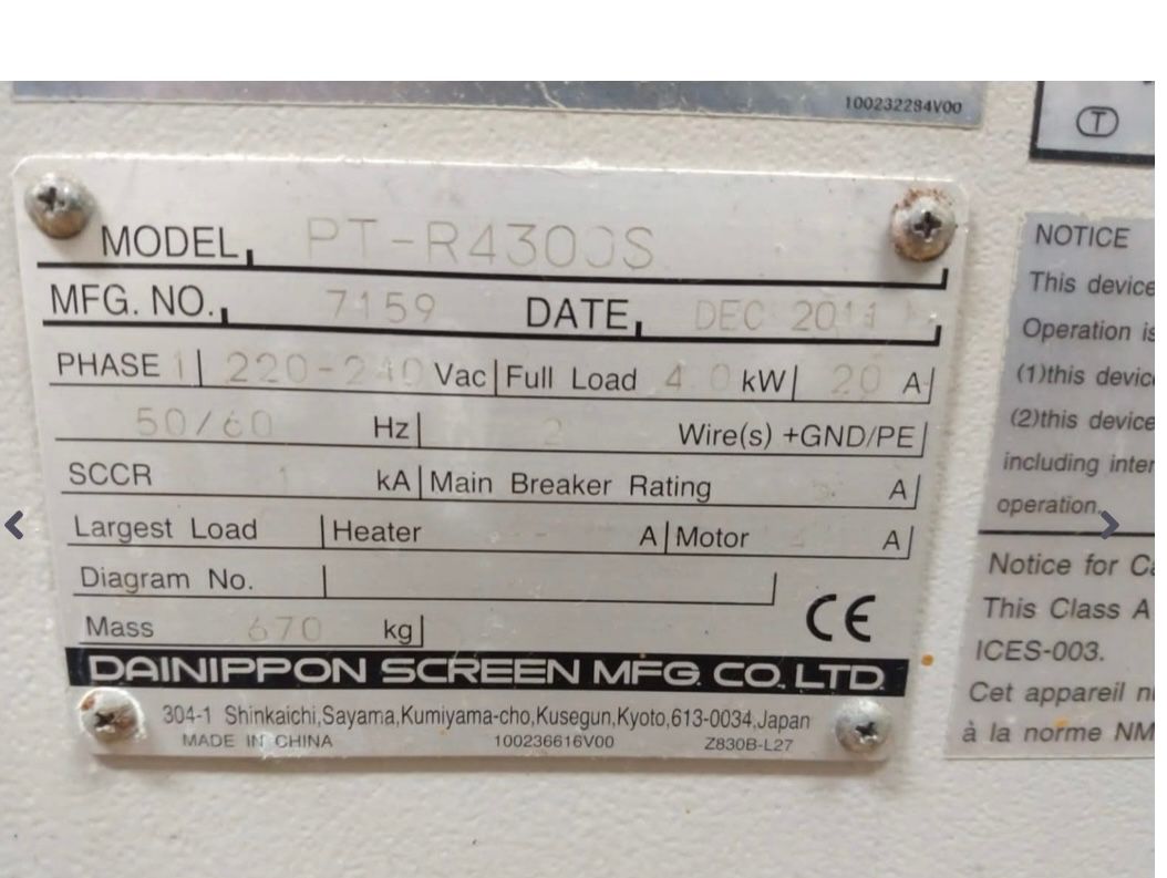 CTP – Computer to Plate, Screen PT R4300 S, ano 2011