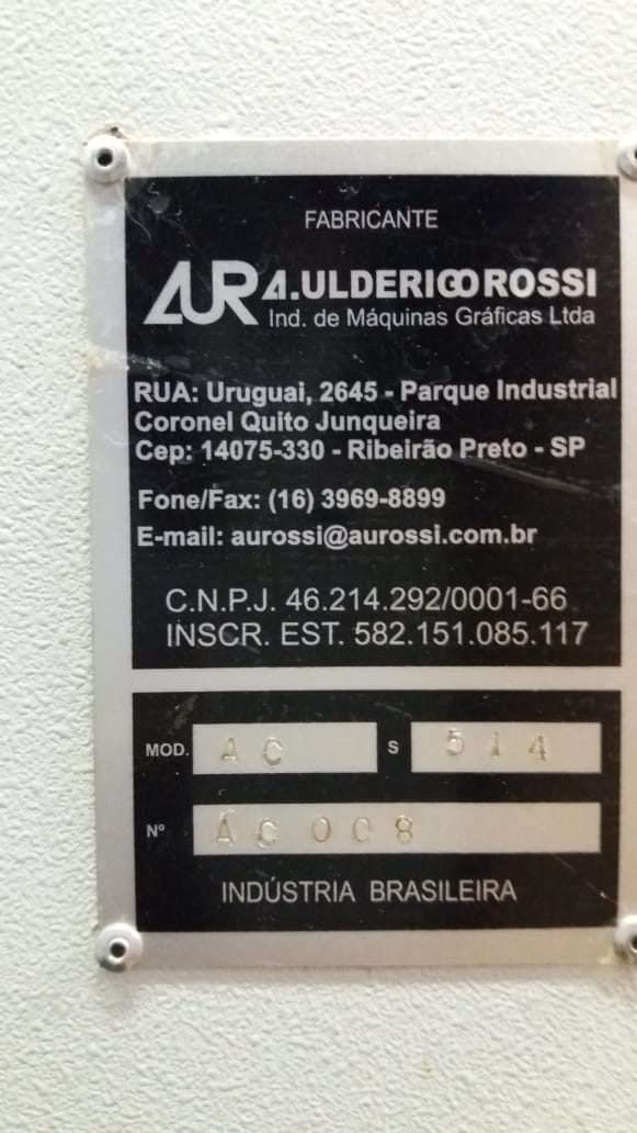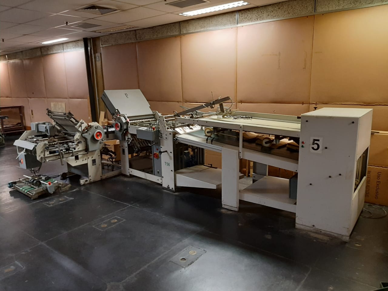 Dobradeira de papéis usada, marca A.U.Rossi, modelo T56-4.4K, ano 2011, formato 56 x 80 cm, com a seguinte configuração: