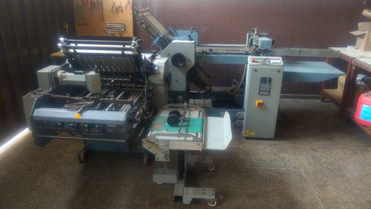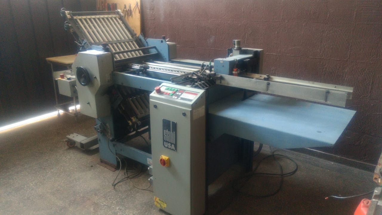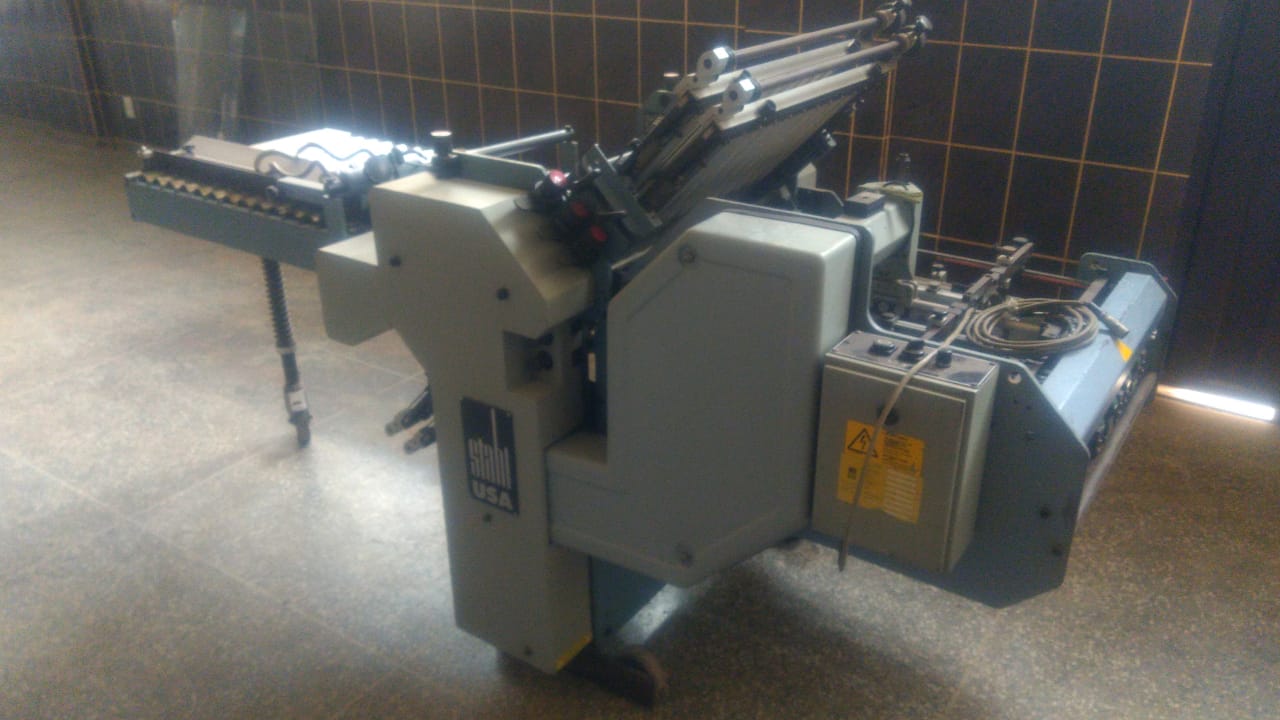 Dobradeira de papéis usada, marca Stahl, modelo B 20, ano 1998, com as seguinte configuração: