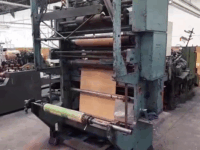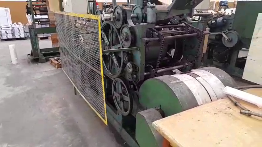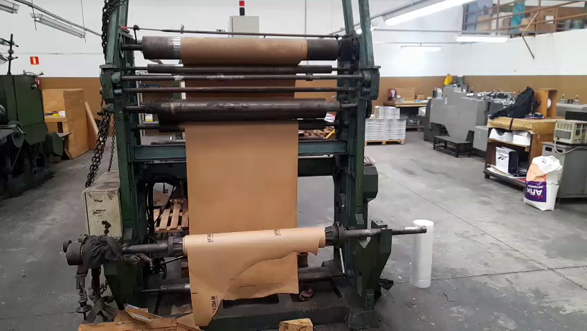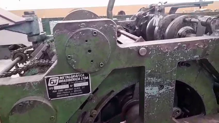 Fechadora de sacos de fundo quadrado usada, SOS 020, marca Brasibérica, pega chapas de 18 a 28 cm, sem impressão, com fotocélulas, em produção.
