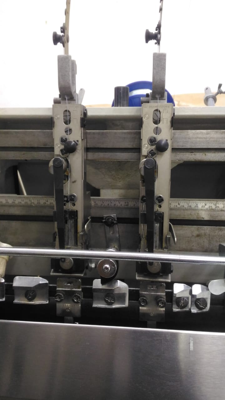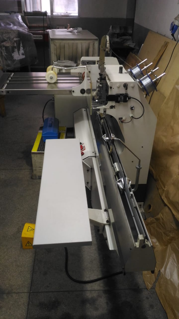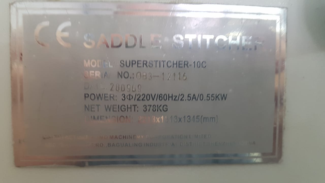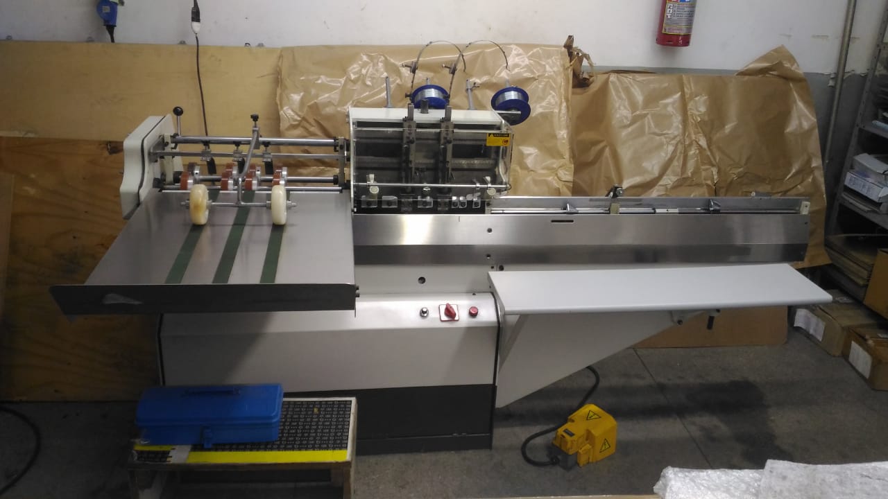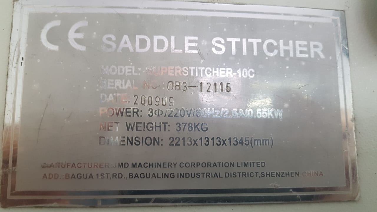 Gampeadeira semi-automática marca JMD, modelo Saddle Stitcher 10C, ano 2009, com 2 cabeçotes de grampo à cavalo.