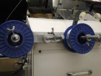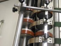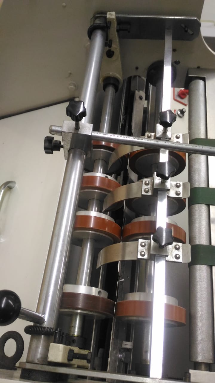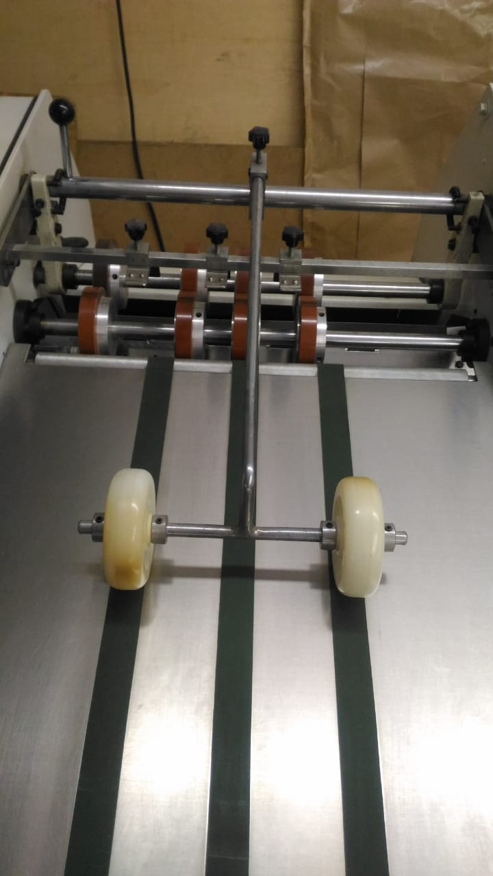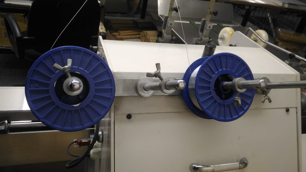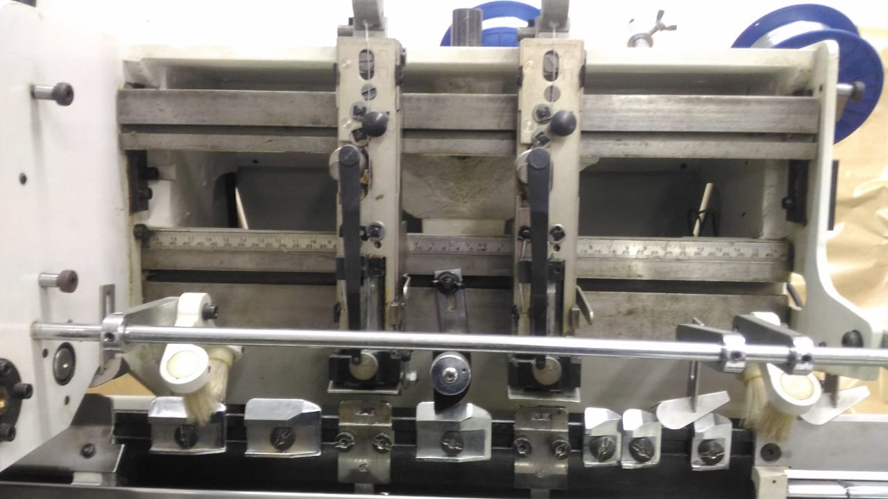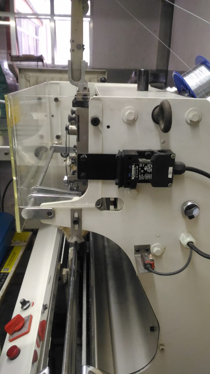 Gampeadeira semi-automática marca JMD, modelo Saddle Stitcher 10C, ano 2009, com 2 cabeçotes de grampo à cavalo.