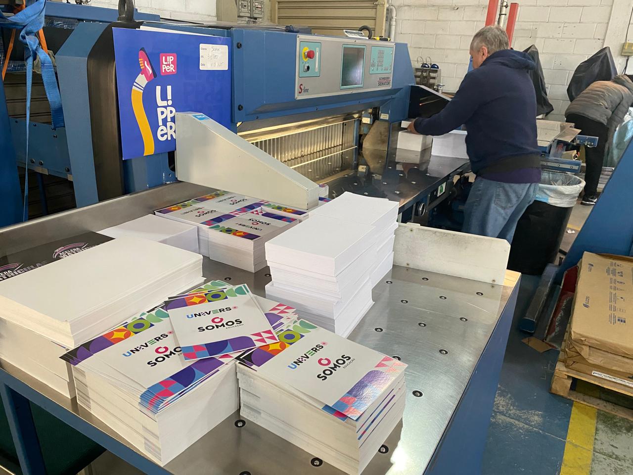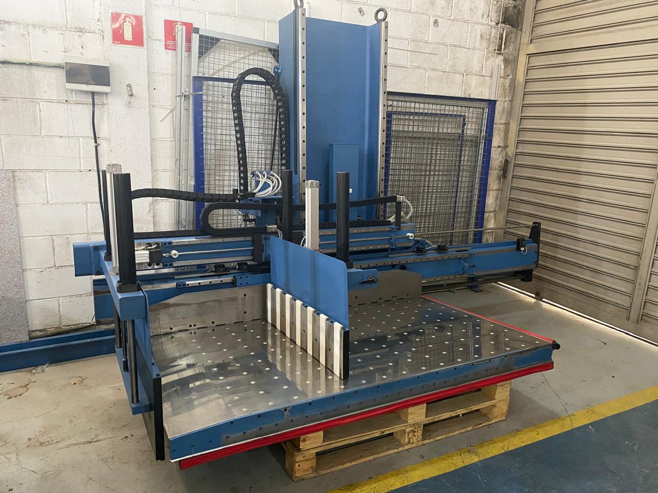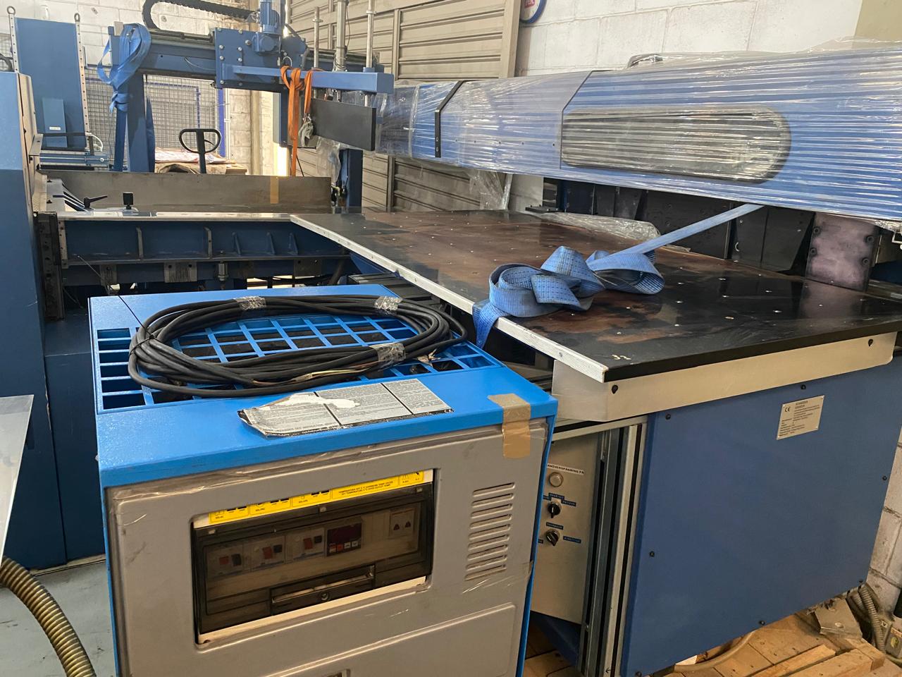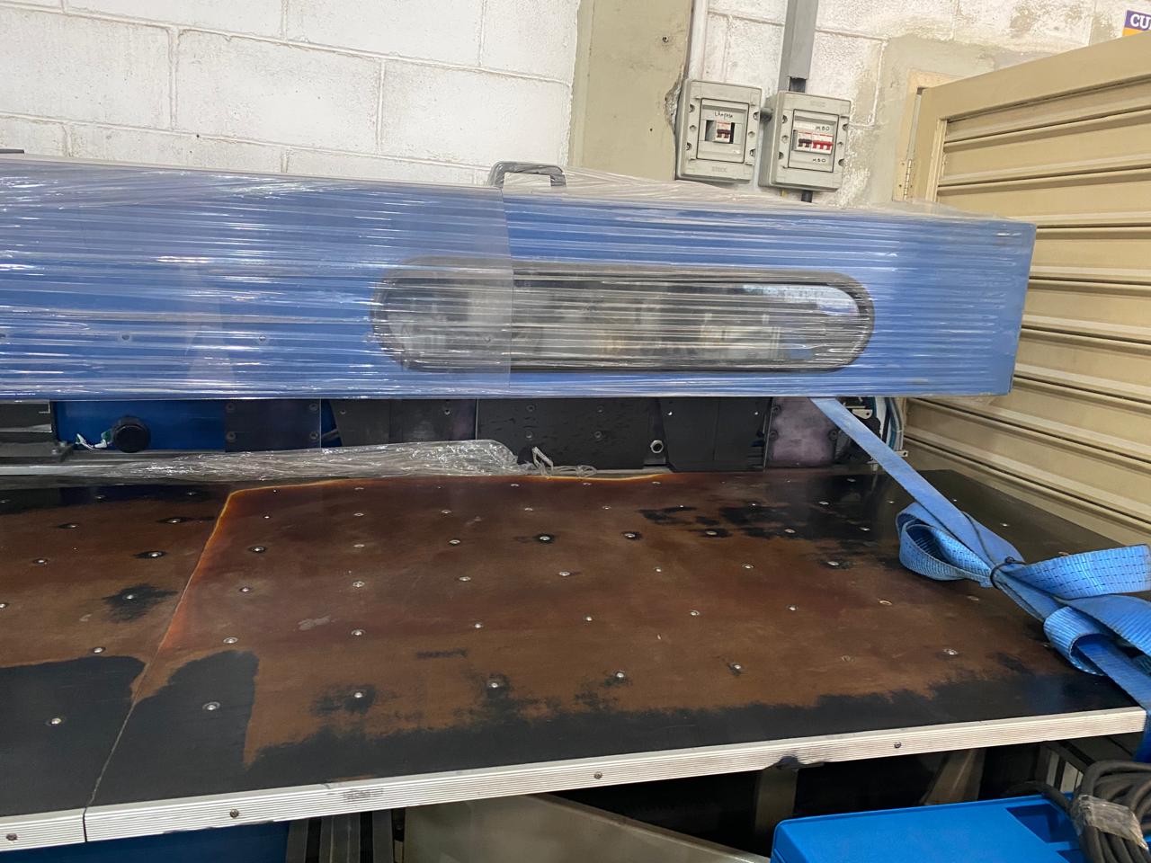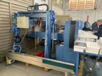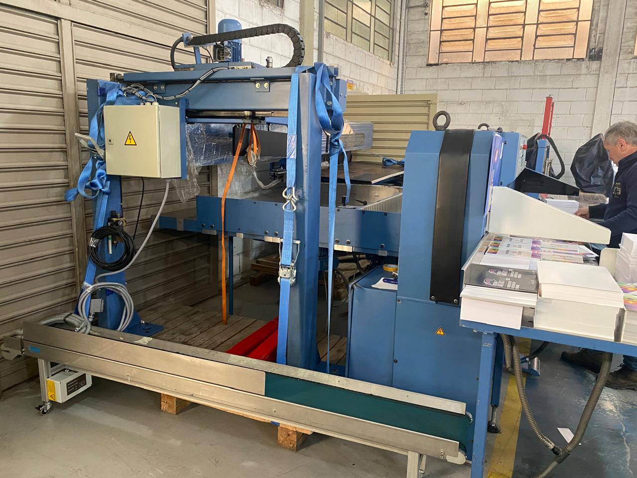 Guilhotina linear usada, marca Schneider, modelo Senator 137 + Profiline PL10-1000-H, ano 2008, com 137 cm de largura de corte, com sistema completo de automação de corte para grandes volumes, com tecnologia Profiline de programação de corte via tela touch screen, incluindo mesa longa com coletor de aparas, carregador traseiro, elevador de pilhas de papel (lift) e jogger (para alinhar pilhas).