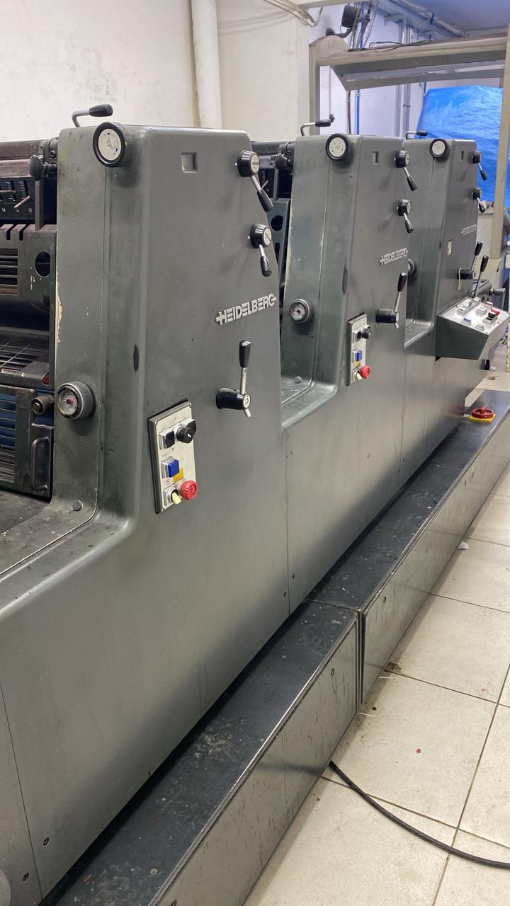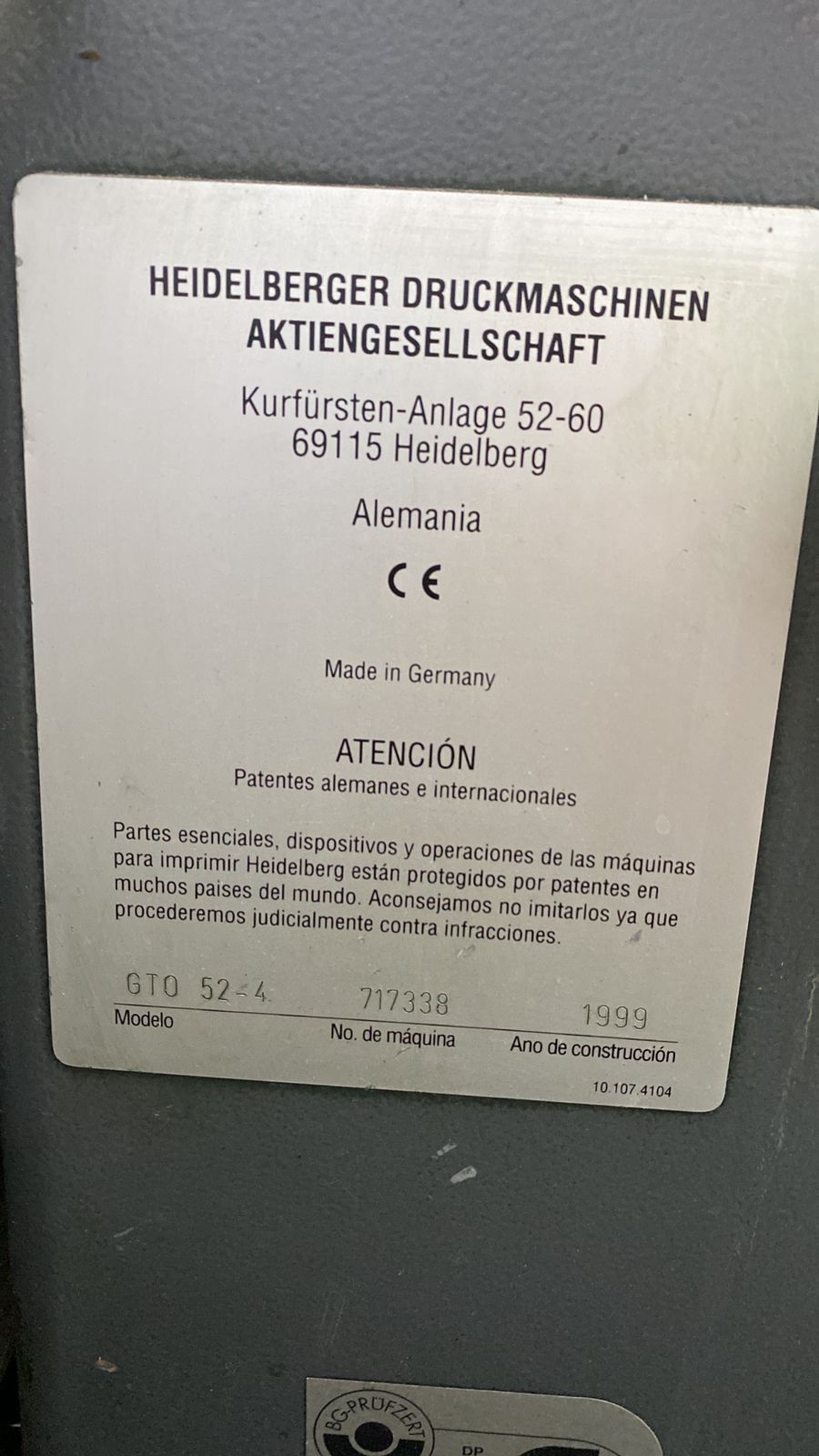 Impressora offset usada, marca Heidelberg, modelo GTO 52-4, ano 1999, 4 cores, formato 36 x 52 cm, equipada com molha DDS, alimentador 8.000 IPH, em produção.