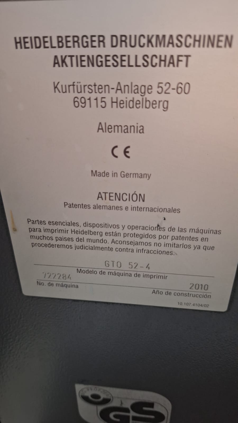 *Impressora offset Heidelberg GTO 52-4, ano 2010