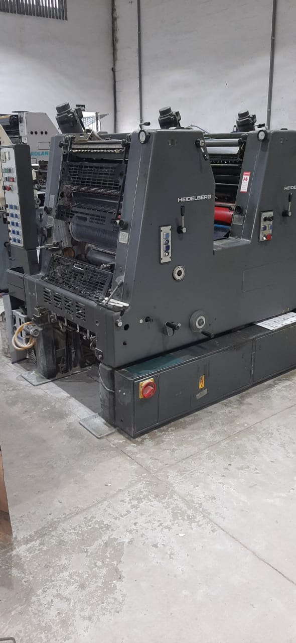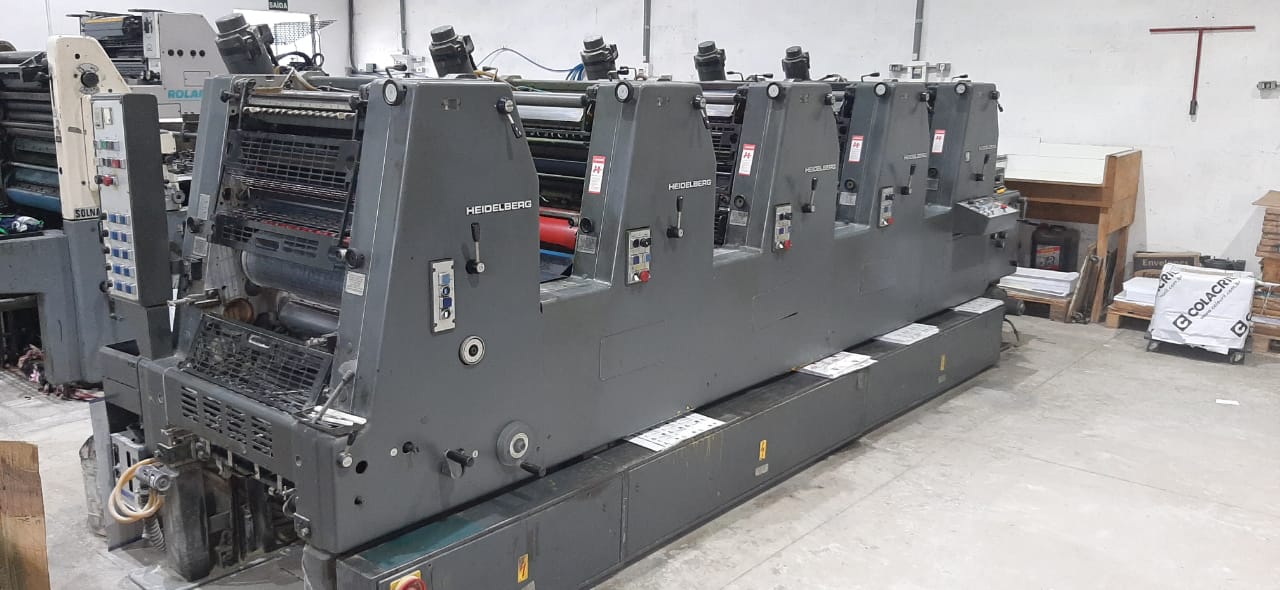 Impressora offset usada, marca Heidelberg, modelo GTO FP 52, ano 1987, 5 cores, formato 36 x 52 cm, equipada com molha Alcolor original, alimentador 8.000 IPH, em produção.