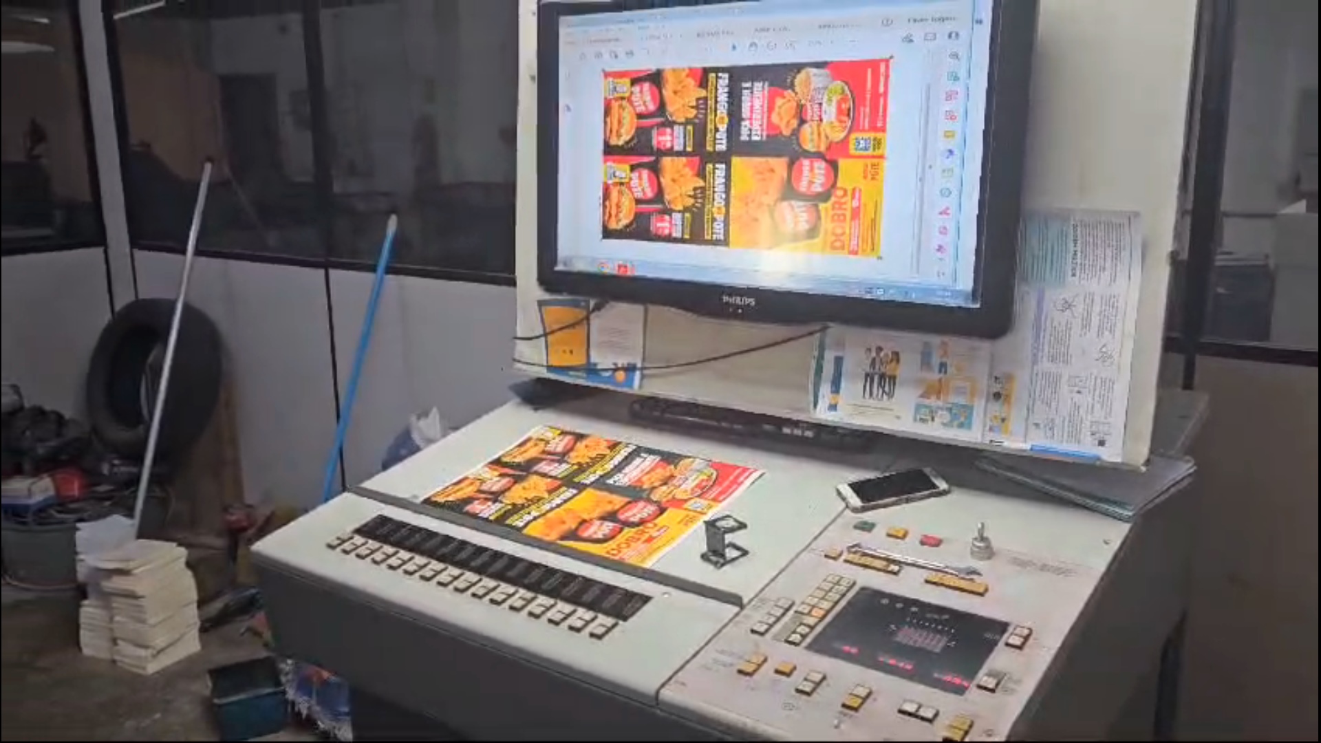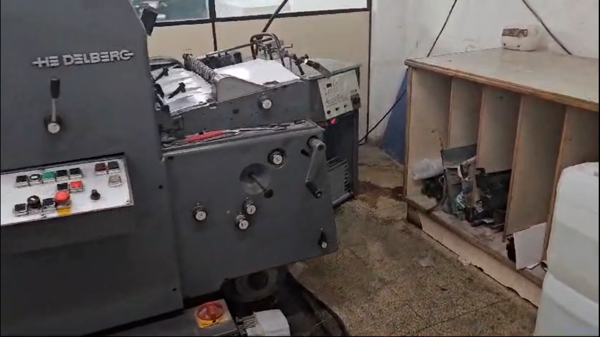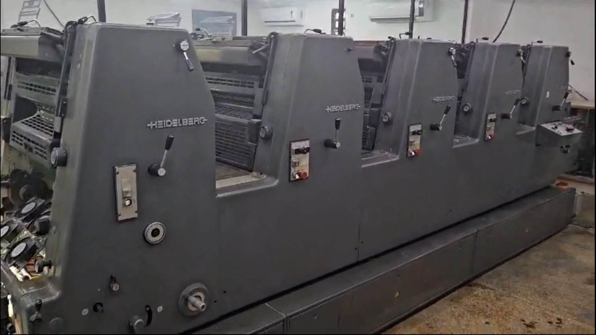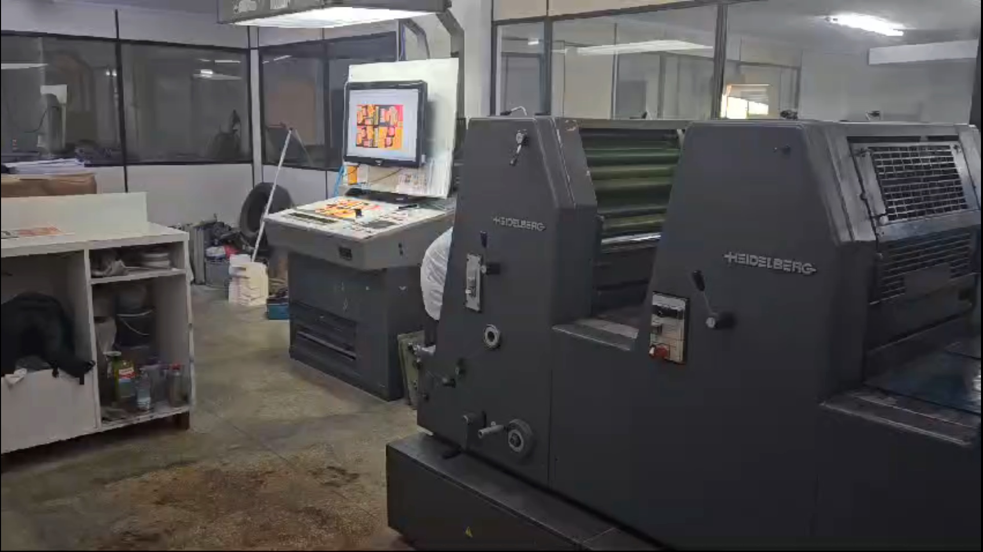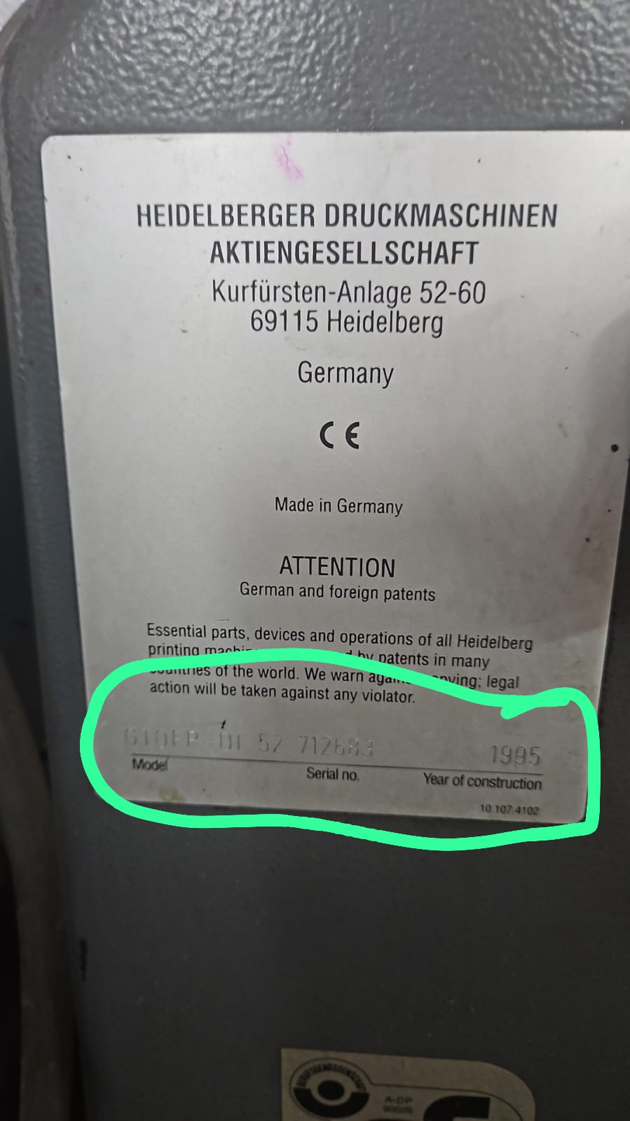 Impressora offset usada, marca Heidelberg, modelo GTO FP 52, ano 1995, 5 cores, formato 36 x 52 cm, equipada com CPC/CPTronic, molha alcolor, reversão 1/4, em produção.