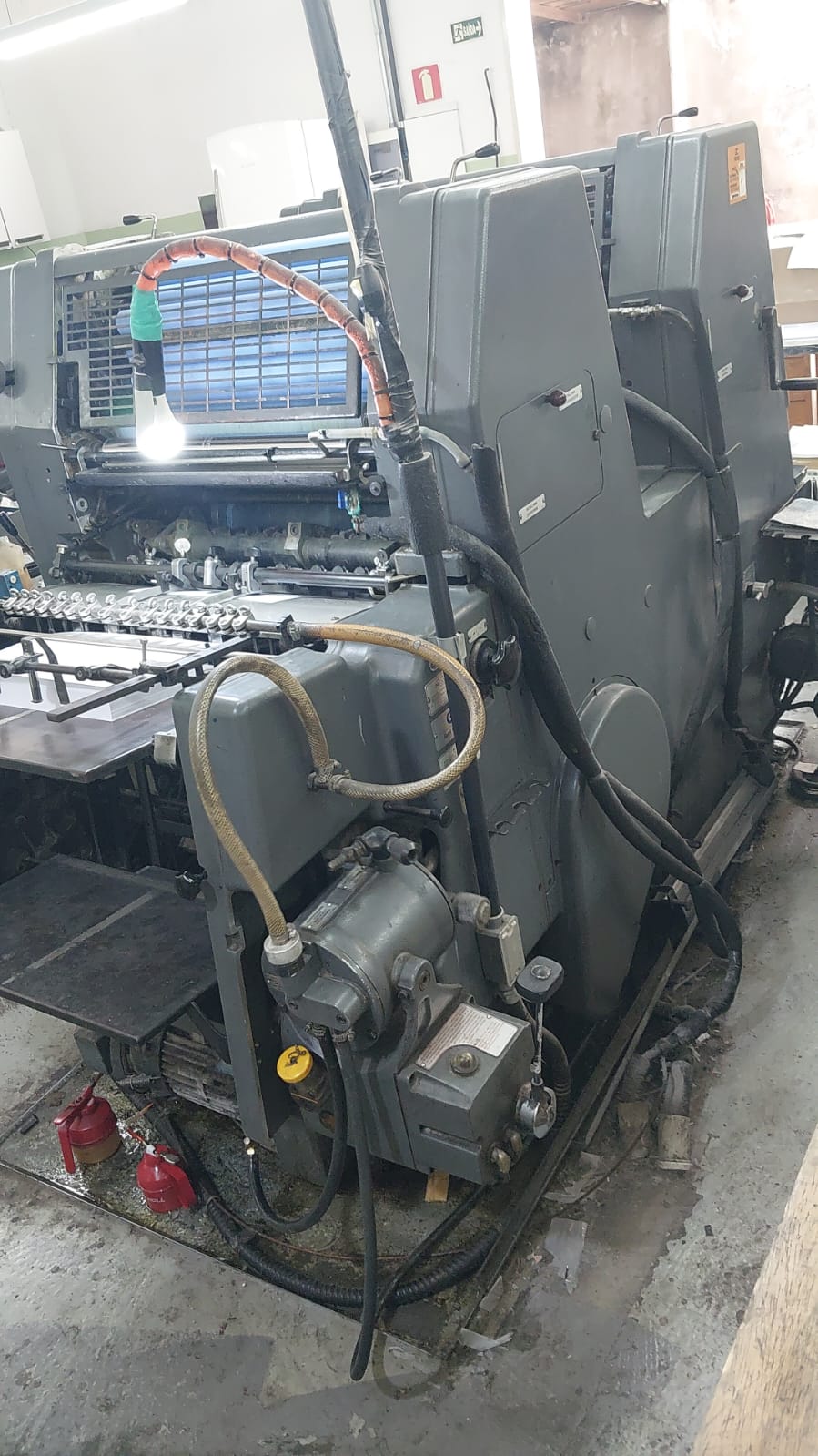 Impressora offset usada, marca Heidelberg, modelo GTO ZS, ano 1993 bicolor, formato 36 x 52 cm, equipada com CPTronic, molha Alcolor, alimentador 12.000 IPH, SEM reversão.
