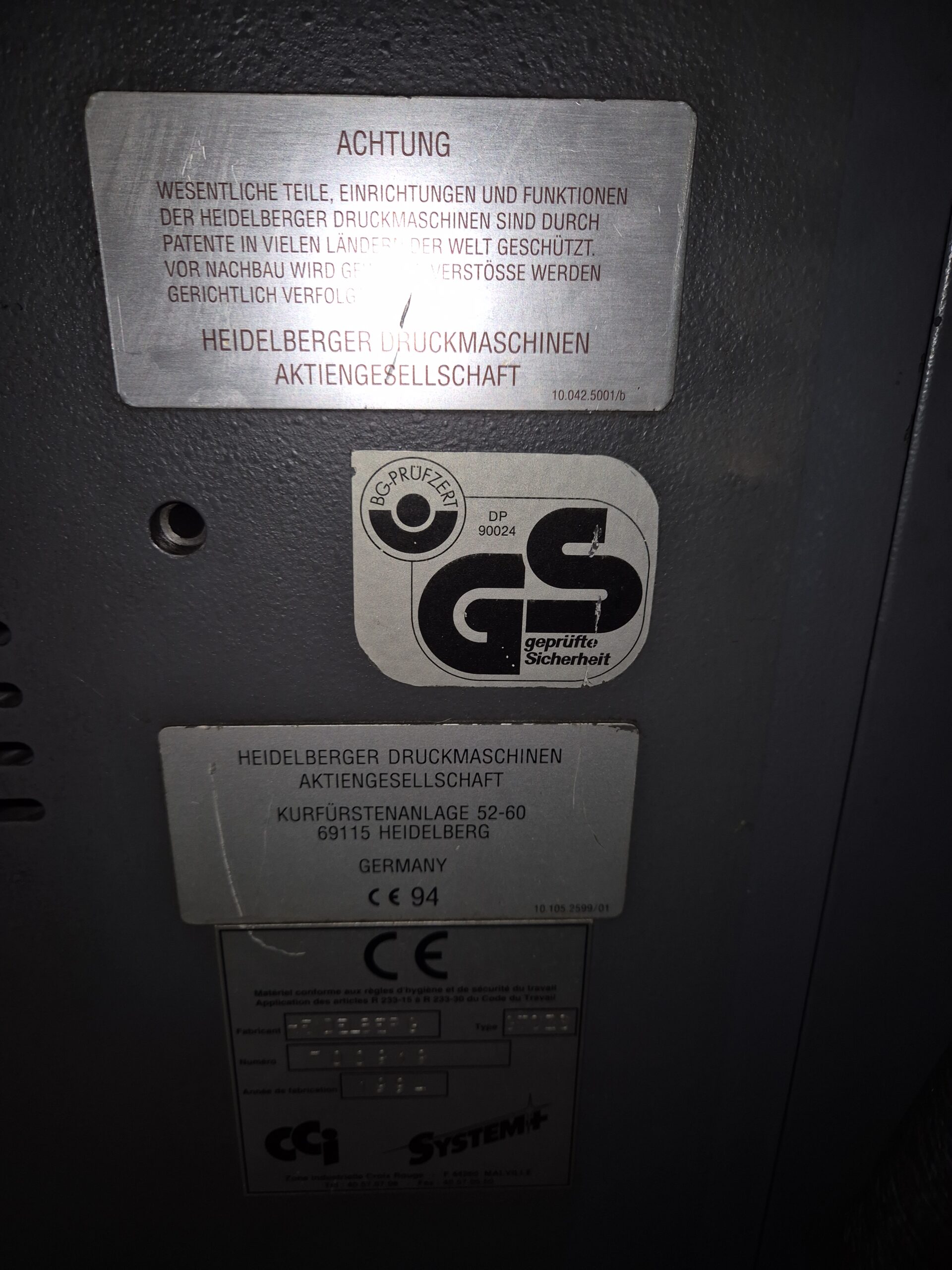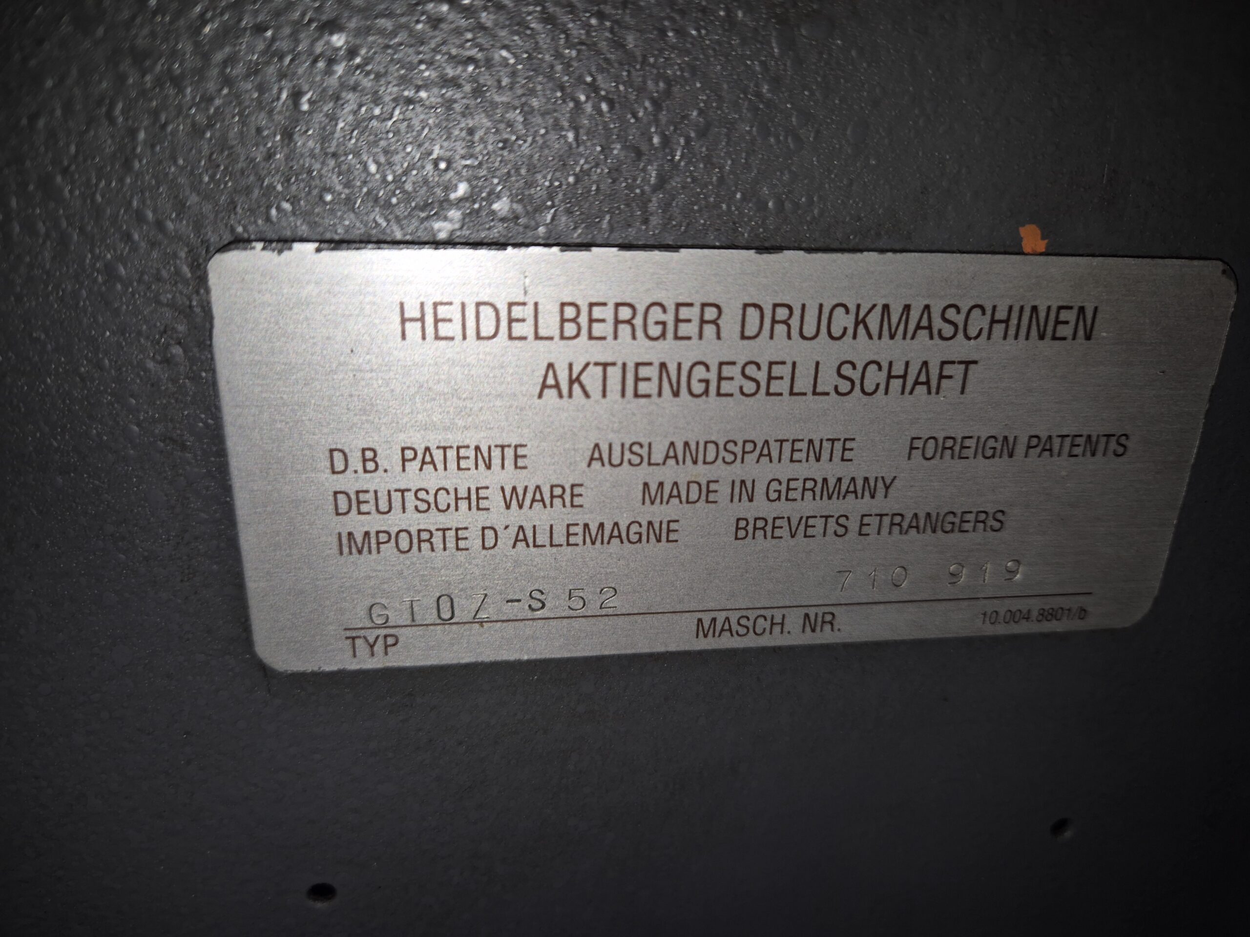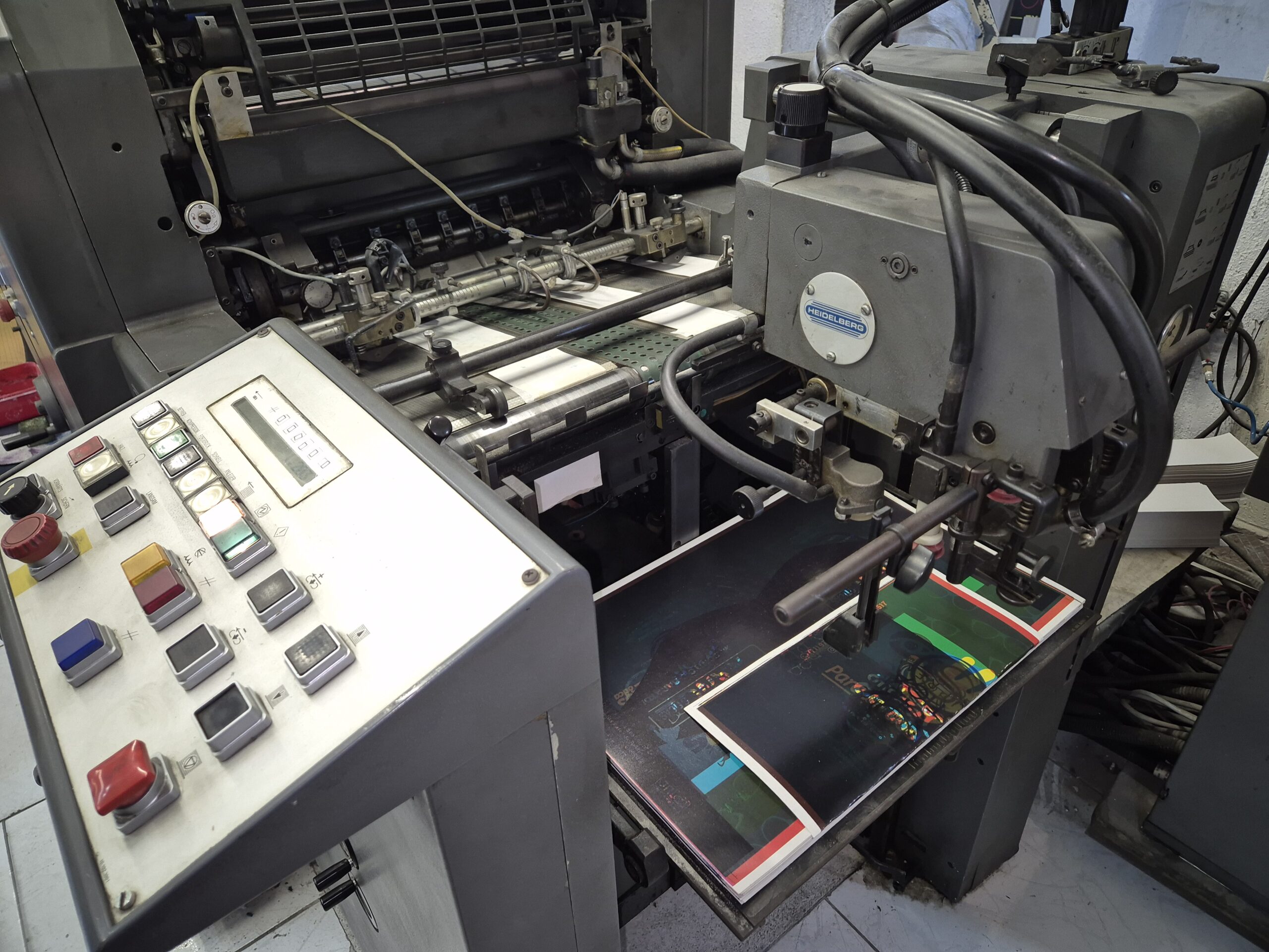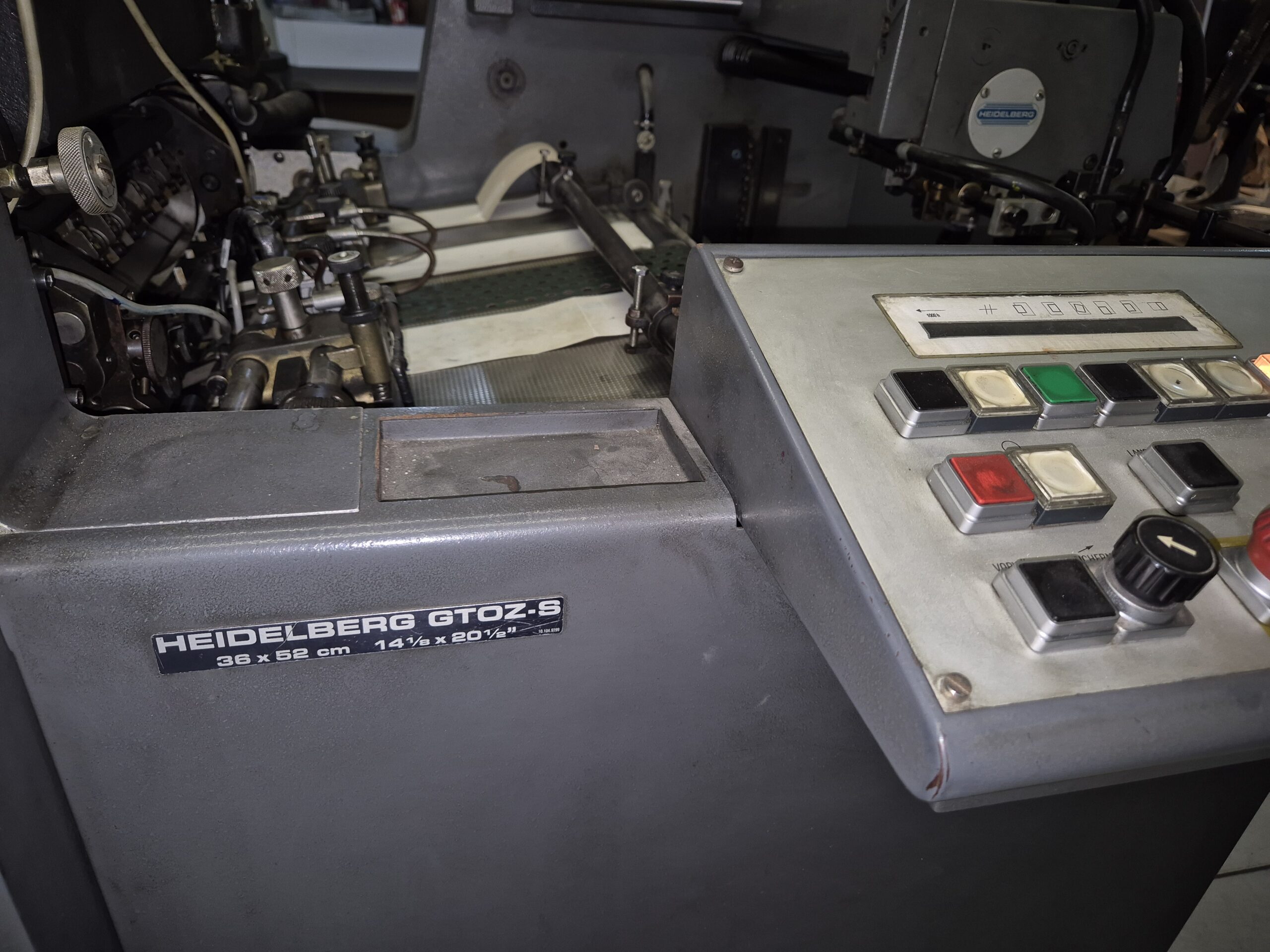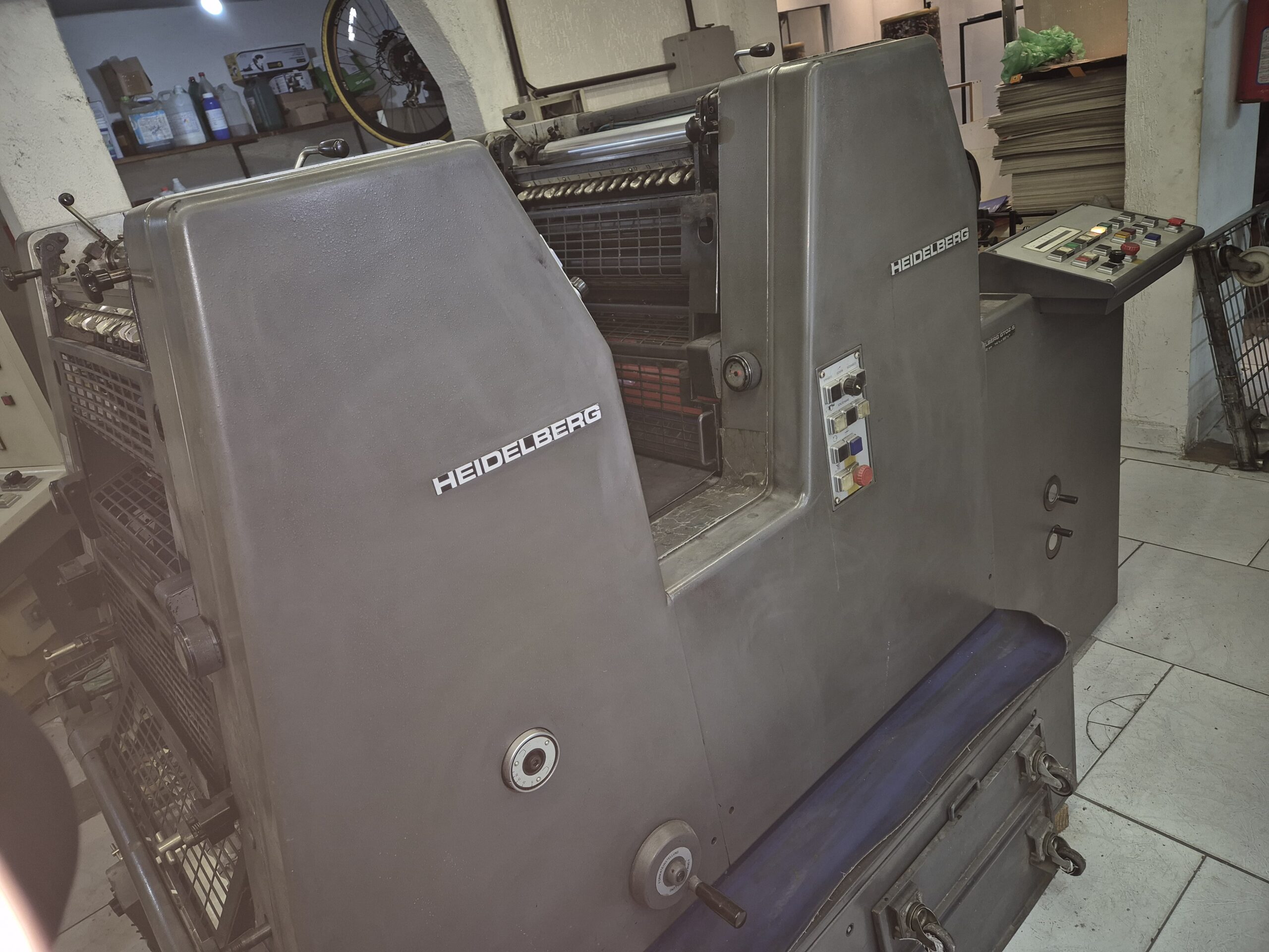 Impressora offset usada, marca Heidelberg, modelo GTO ZS 52, ano 1994, bicolor, formato 36 x 52 cm, equipada com molha Alcolor original, alimentador 12.000 IPH, em produção.