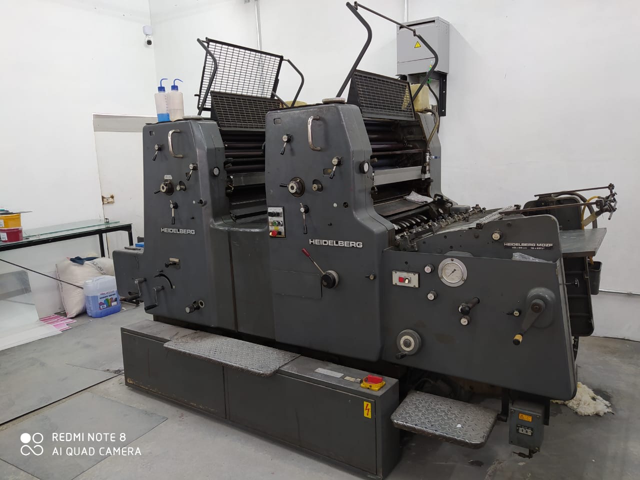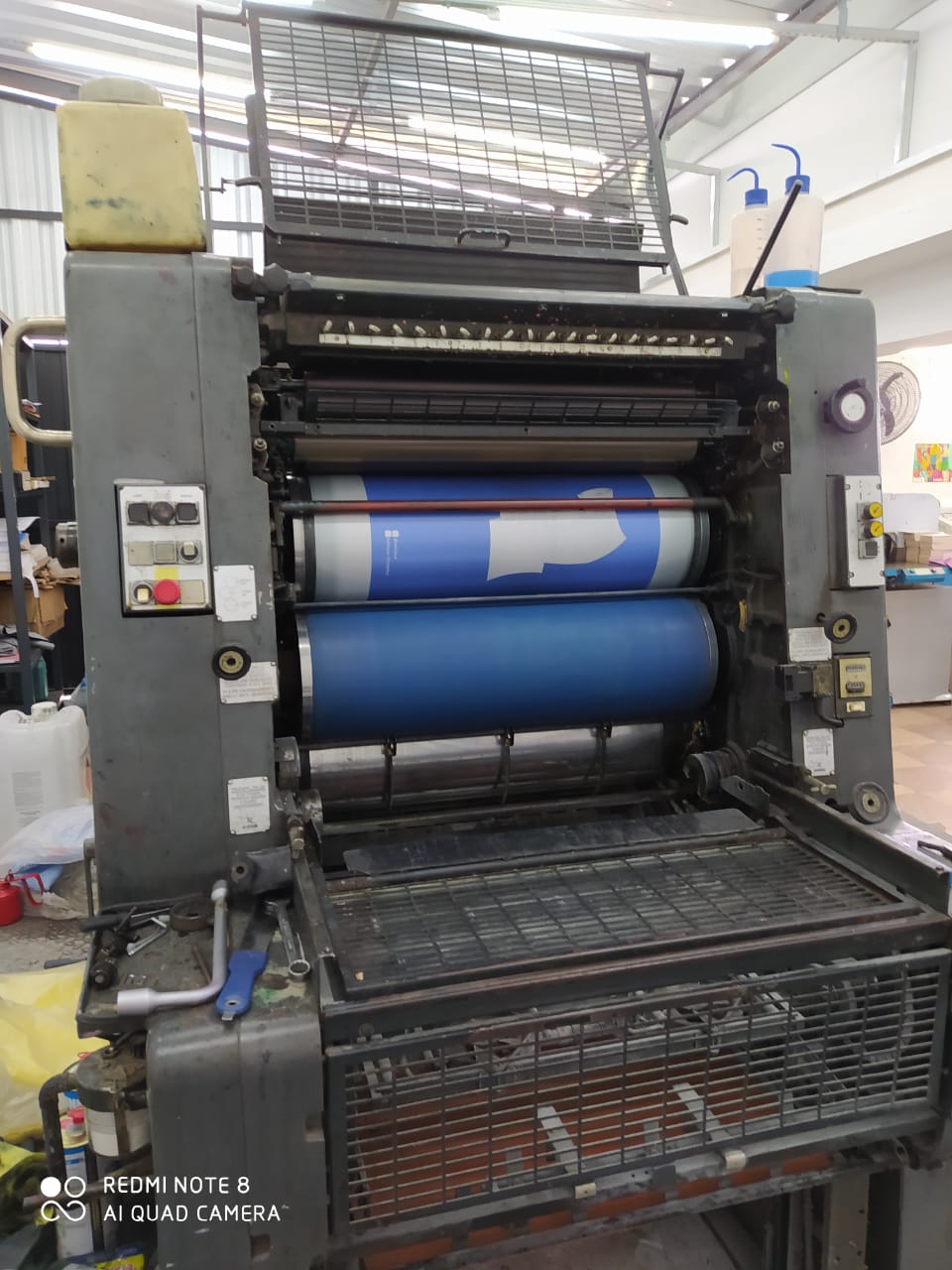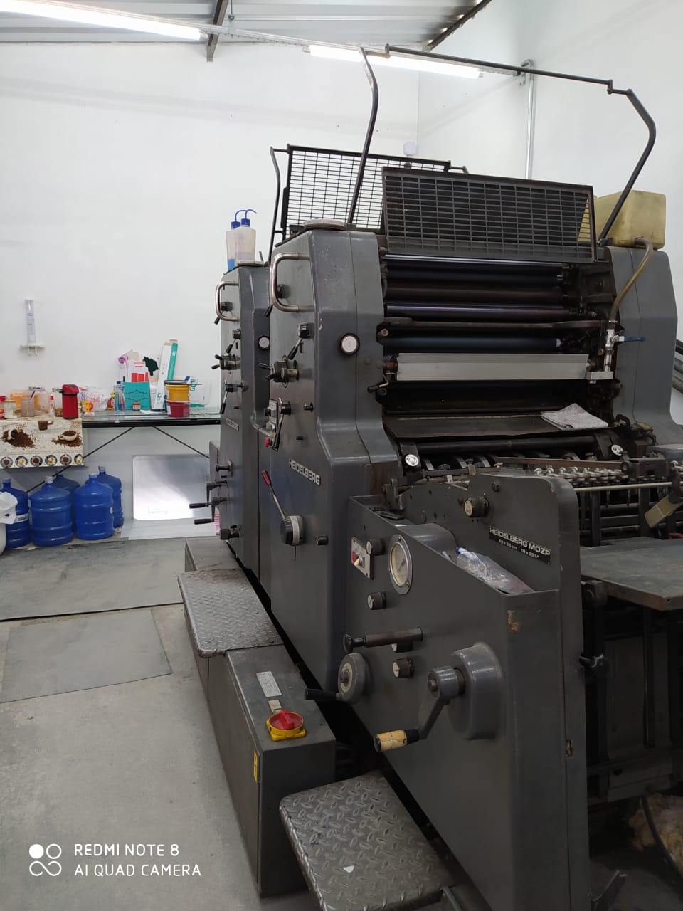 Impressora offset usada, marca Heidelberg, modelo MO ZP, ano 1983, bicolor, formato 48 x 65 cm, molha convencional, reversão, pilha baixa na saída.