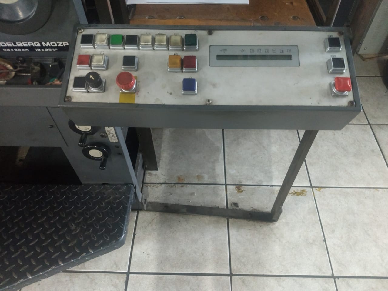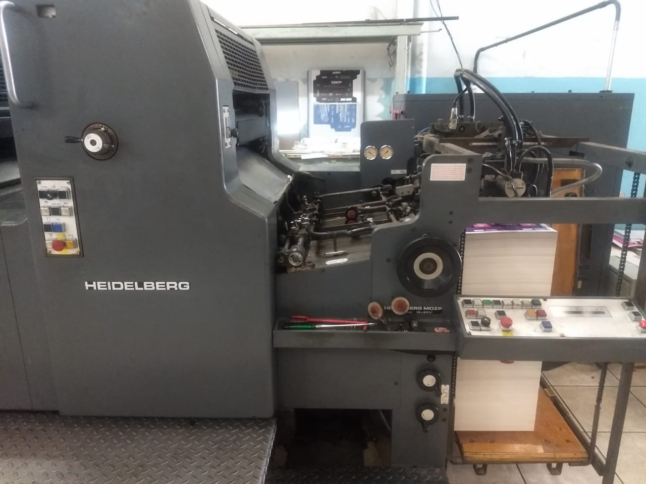Impressora offset usada, marca Heidelberg, modelo MOZP, ano 1993, bicolor, formato 48 x 65 cm, equipada com CPTronic, reversão e molha Alcolor, em produção com apenas 75 milhões de impressos.