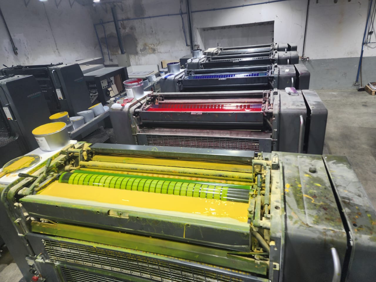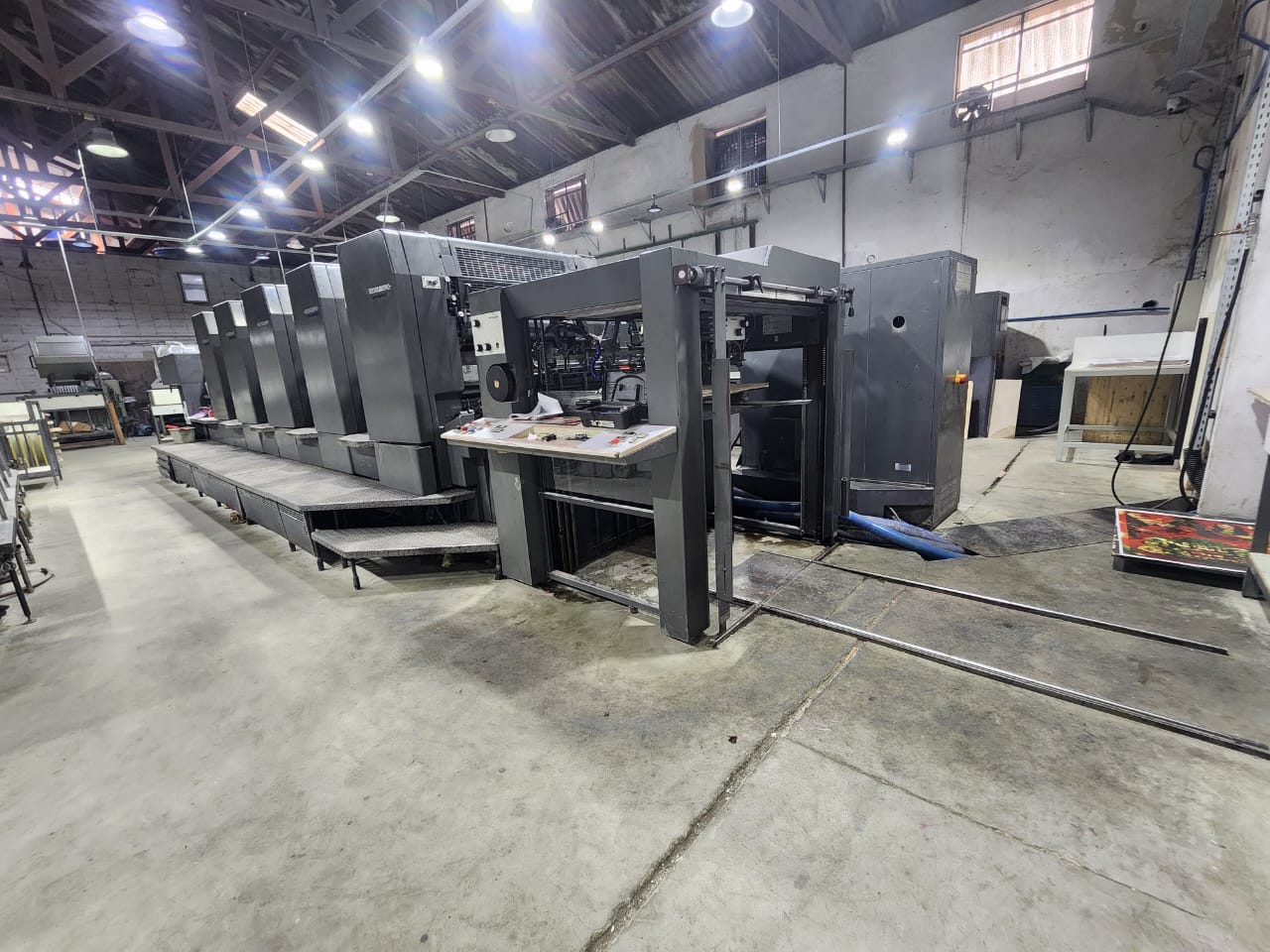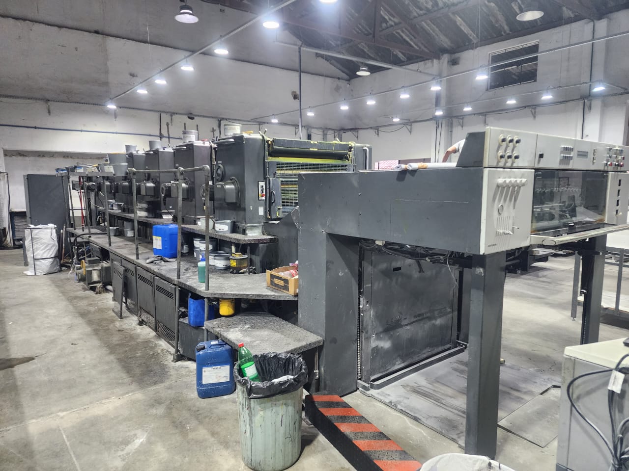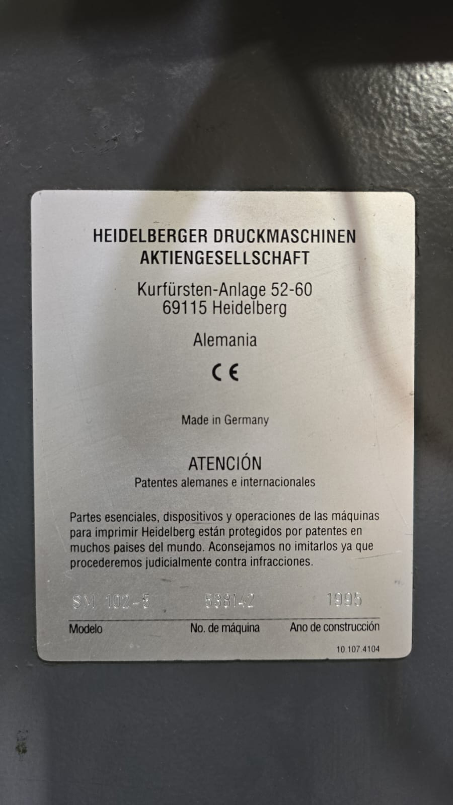 Impressora offset usada, marca Heidelberg, modelo SM 102-5, ano 1995, 5 cores, formato 72 x 102, equipada com CPC/CPTronic, molha Alcolor, lavadores automáticos, em produção.