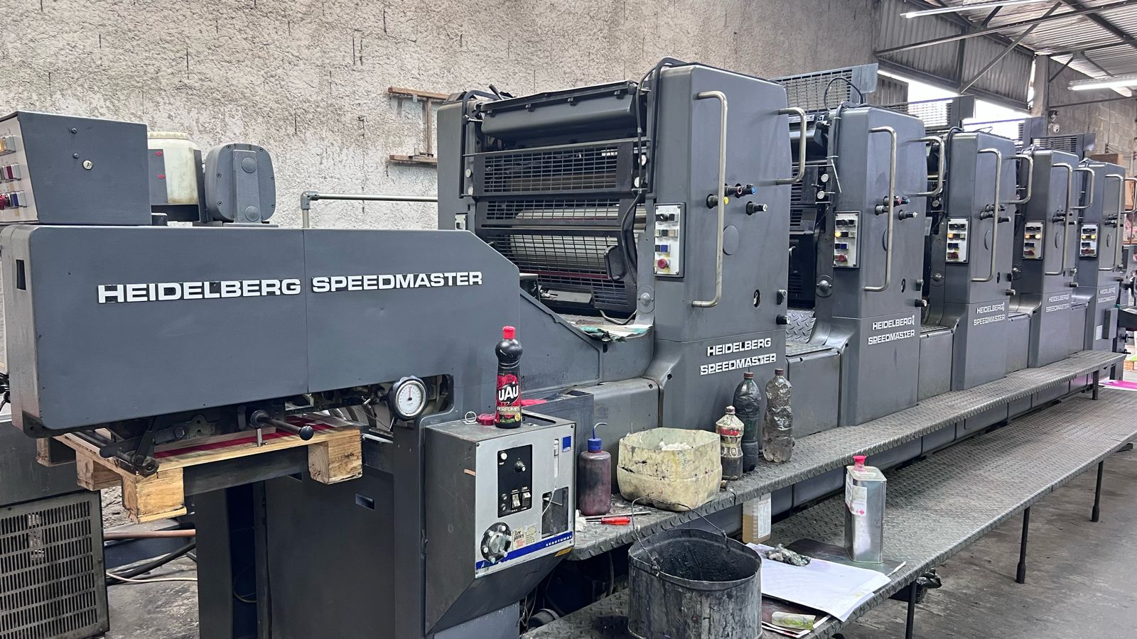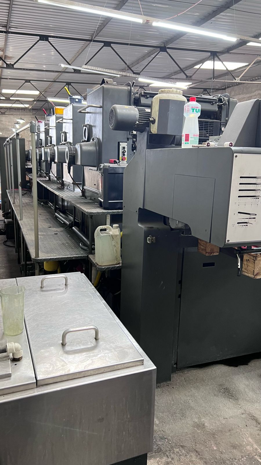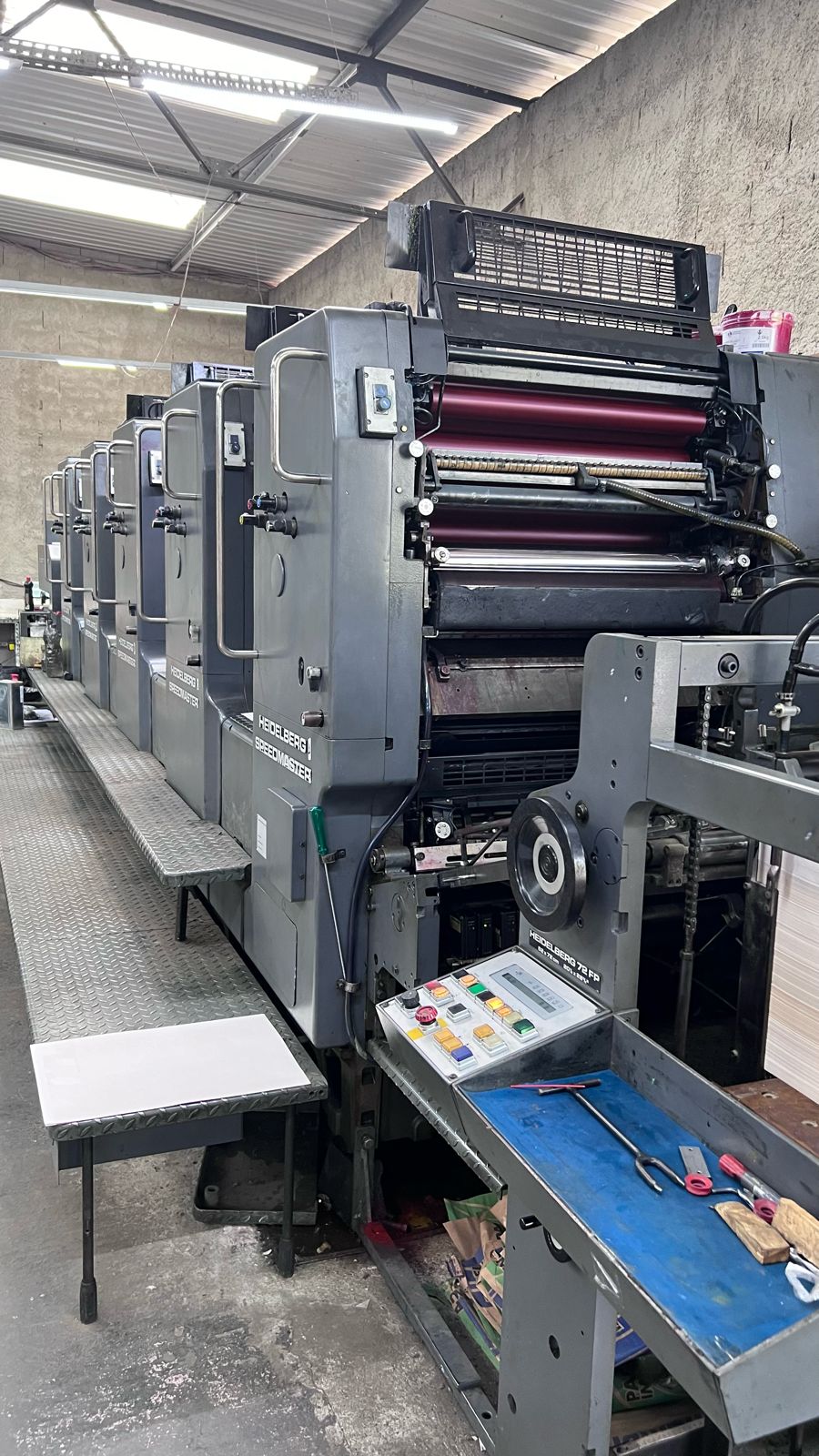 Impressora offset usada, marca Heidelberg, modelo SM 72 FP, ano 1989, 5 cores, equipada com CPC 1.02, molha Alcolor original, reversão 1/4, em produção.