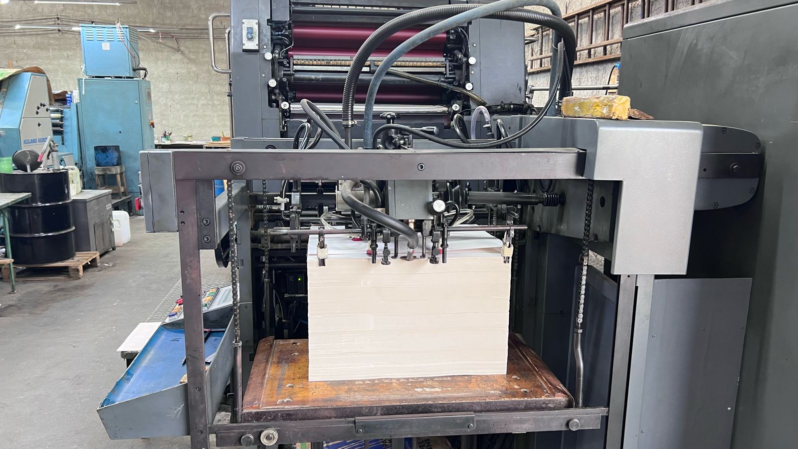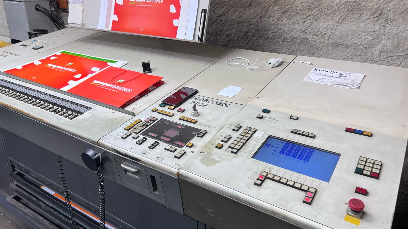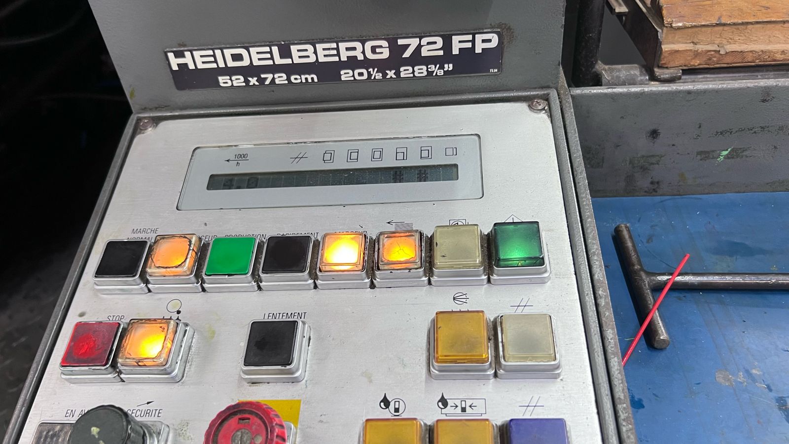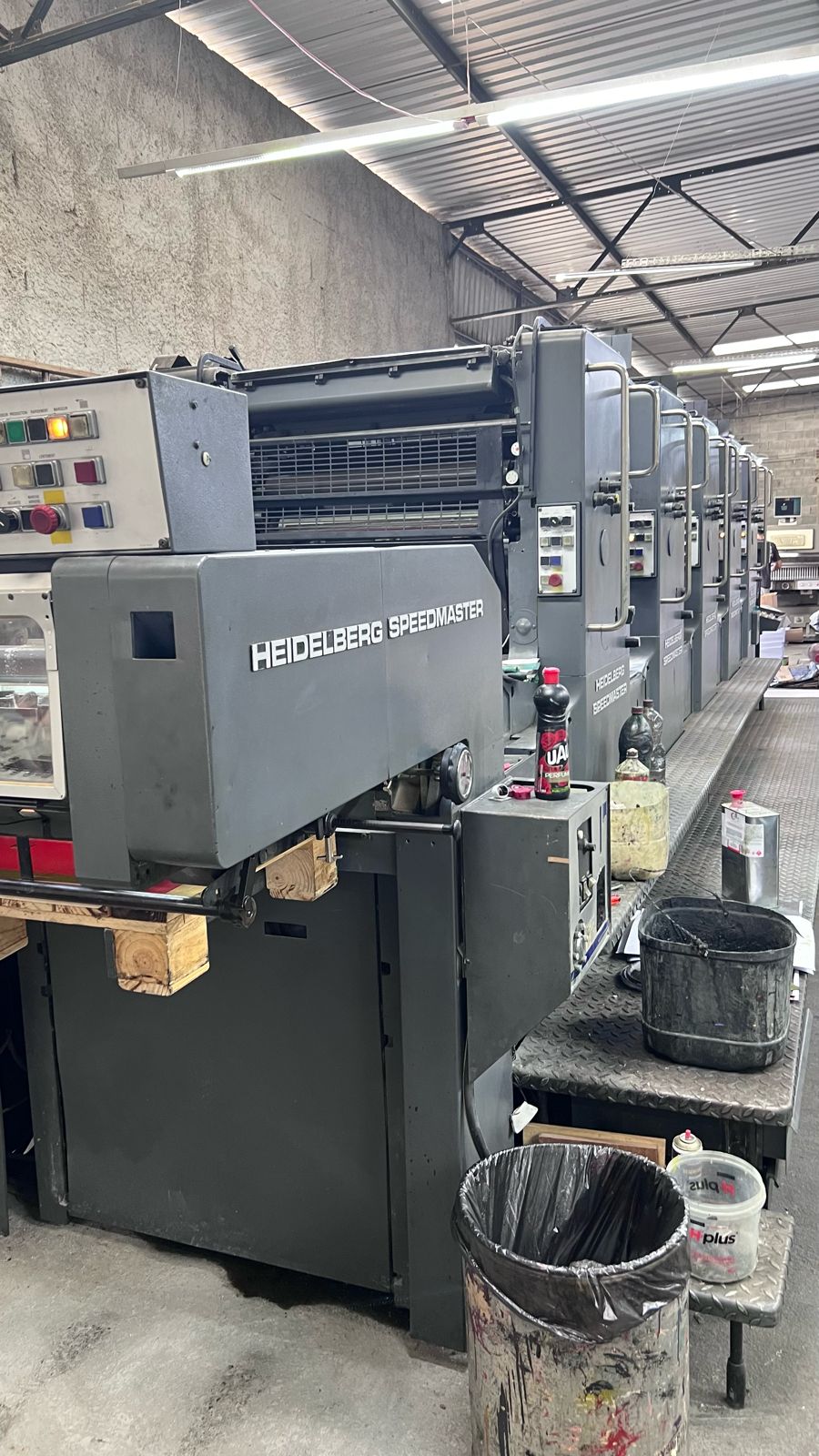 Impressora offset usada, marca Heidelberg, modelo SM 72 FP, ano 1989, 5 cores, equipada com CPC 1.02, molha Alcolor original, reversão 1/4, em produção.