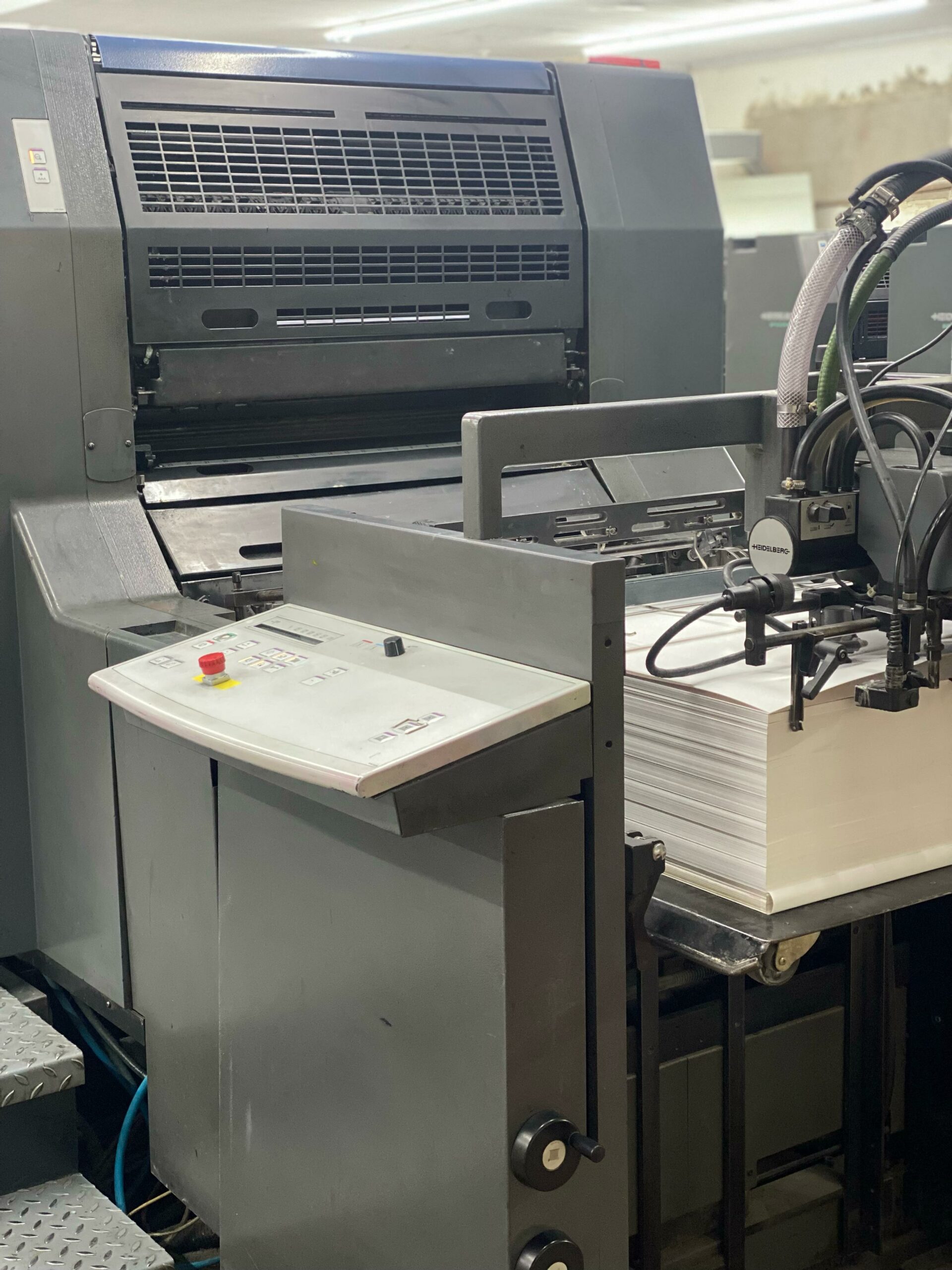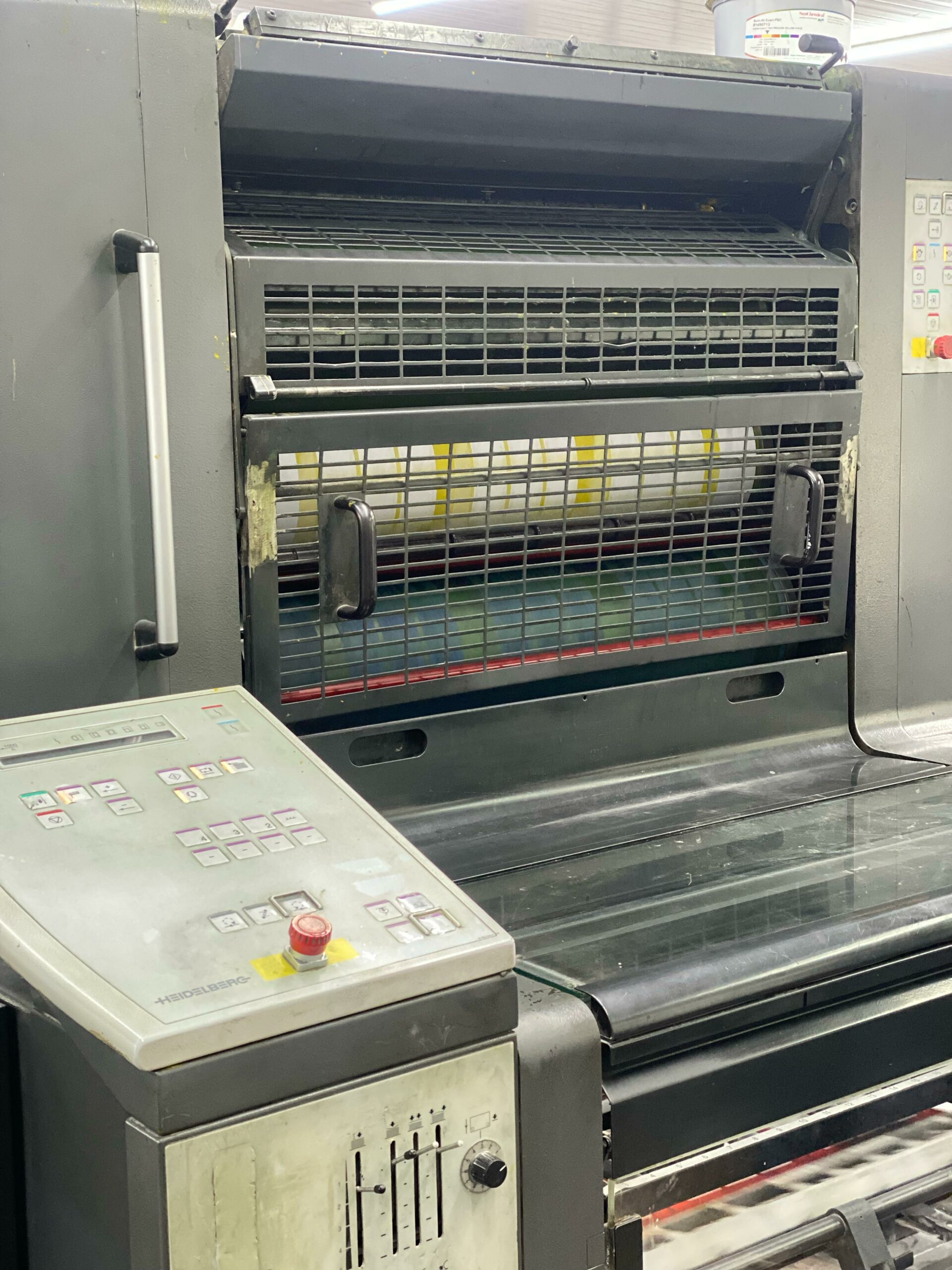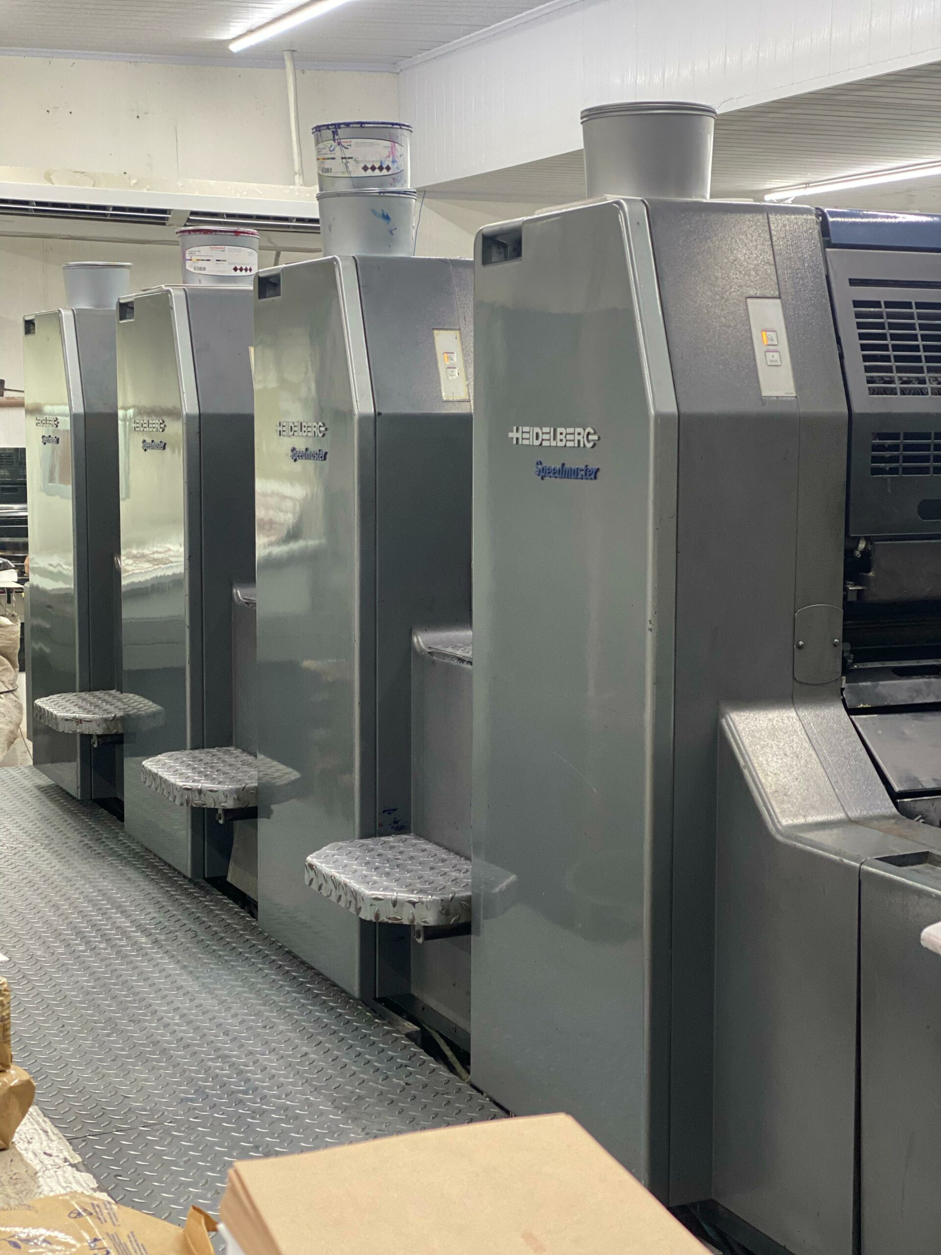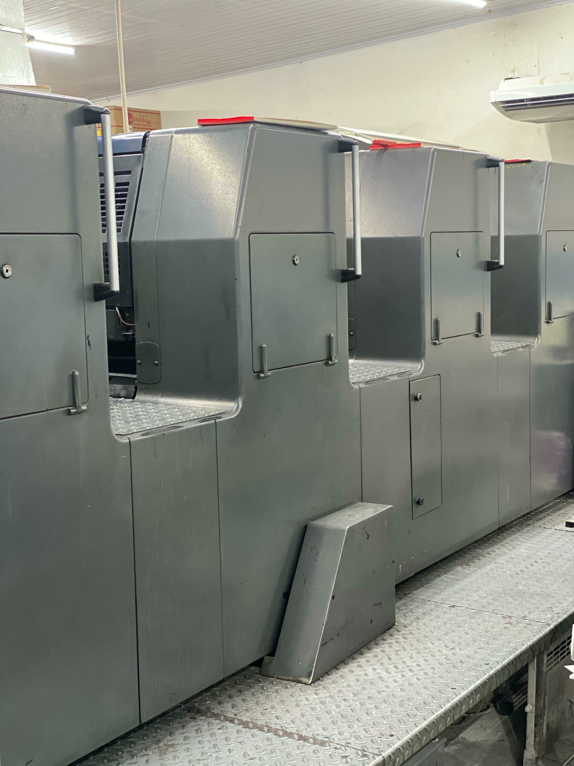 Impressora offset usada, marca Heidelberg, modelo SM 74-4 P, ano 2002, 4 cores, formato 52 x 74 cm, equipada com CP2000, Autoplate, molha Alcolor, lavadores automáticos, reversão 2/2, rolaria nova, em produção.