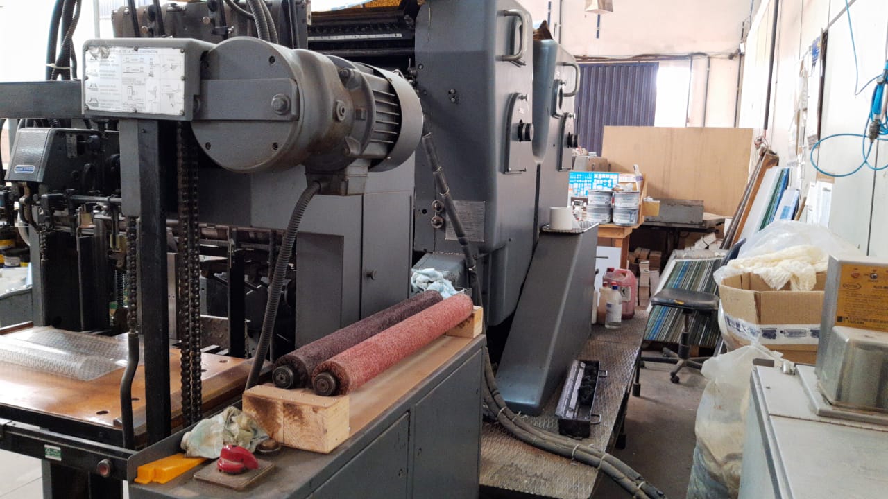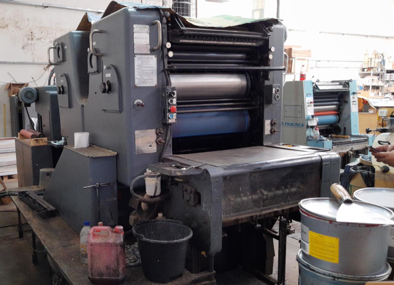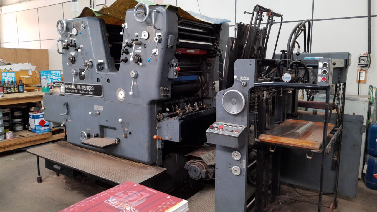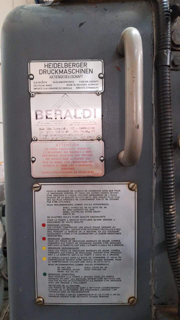 Impressora offset usada, marca Heidelberg, modelo SORKZ, ano 1971, bicolor, formato 48 x 65 cm, molha convencional, em produção.