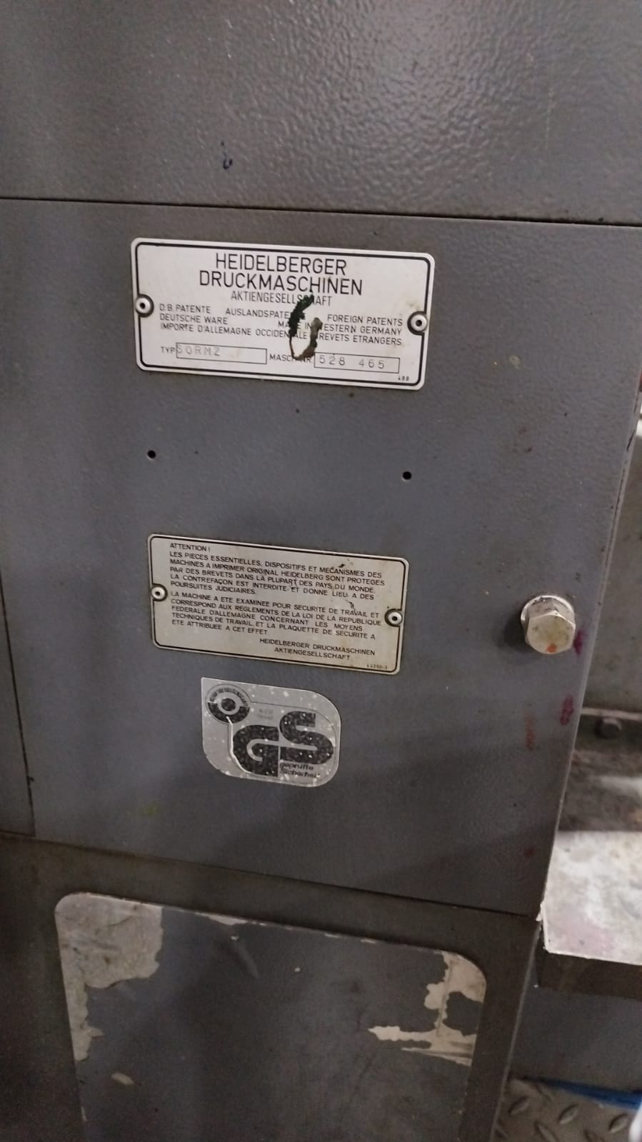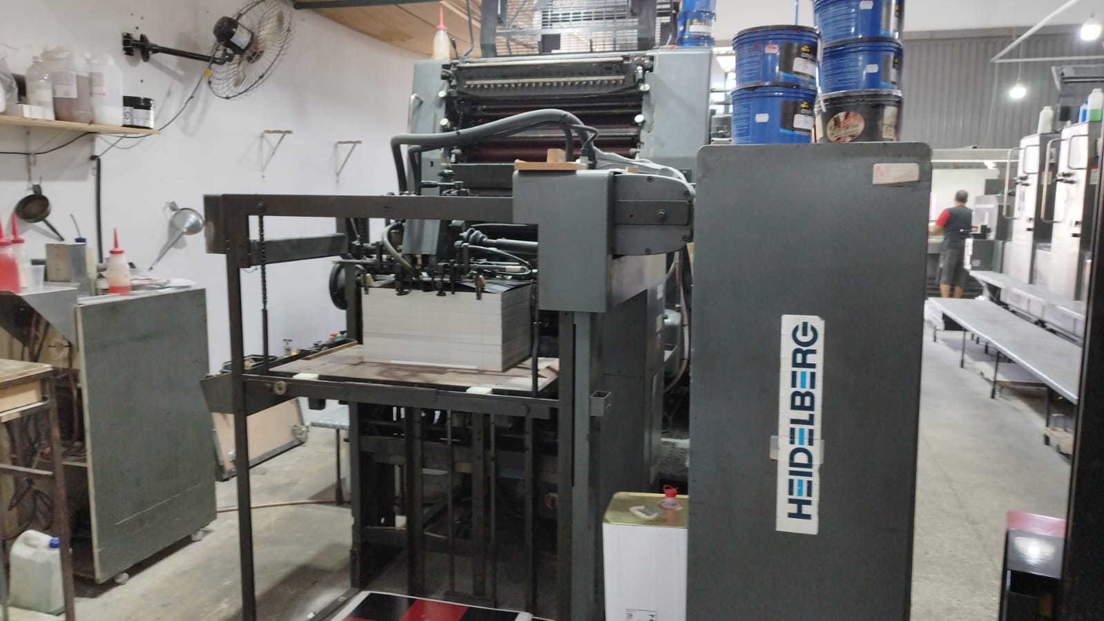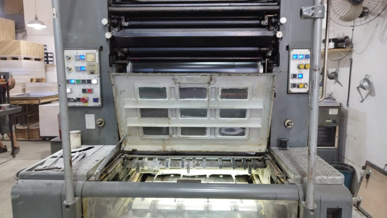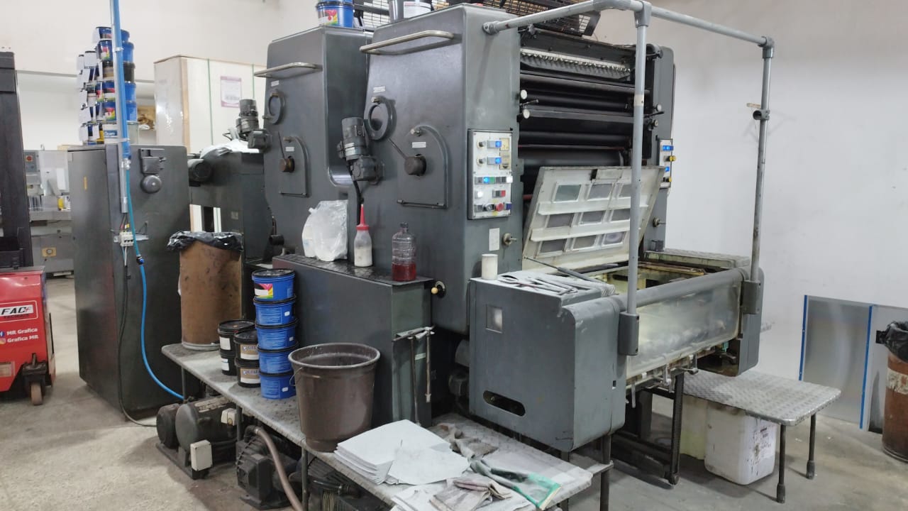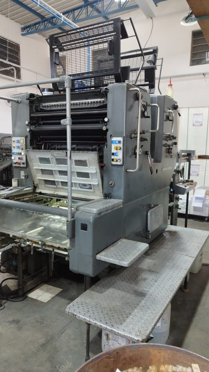 Impressora offset usada, marca Heidelberg, modelo SORMZ, ano 1989, bicolor, formato 52 x 74 cm, equipada com molha Aquacel, em produção.