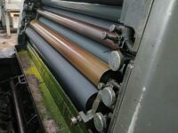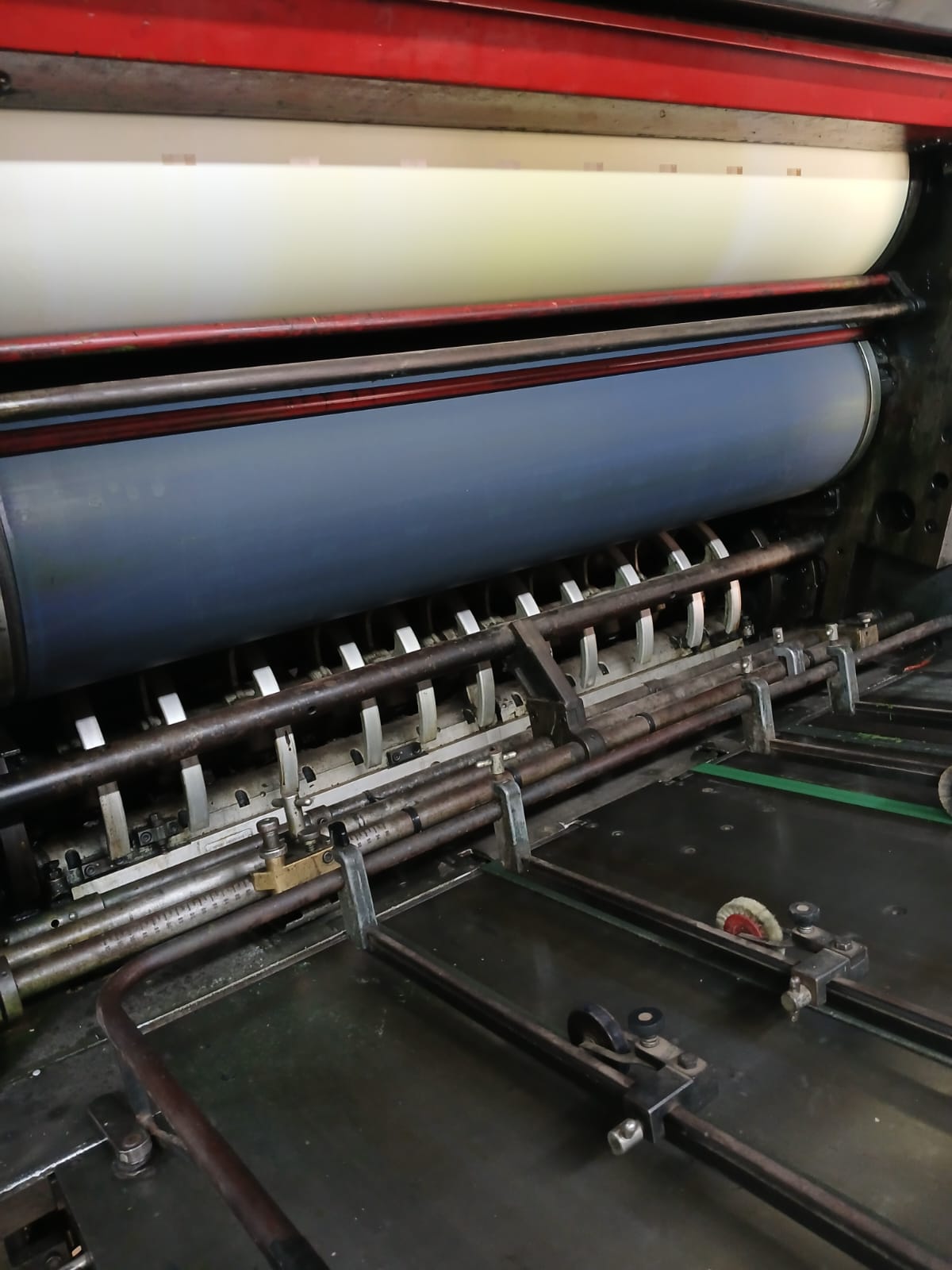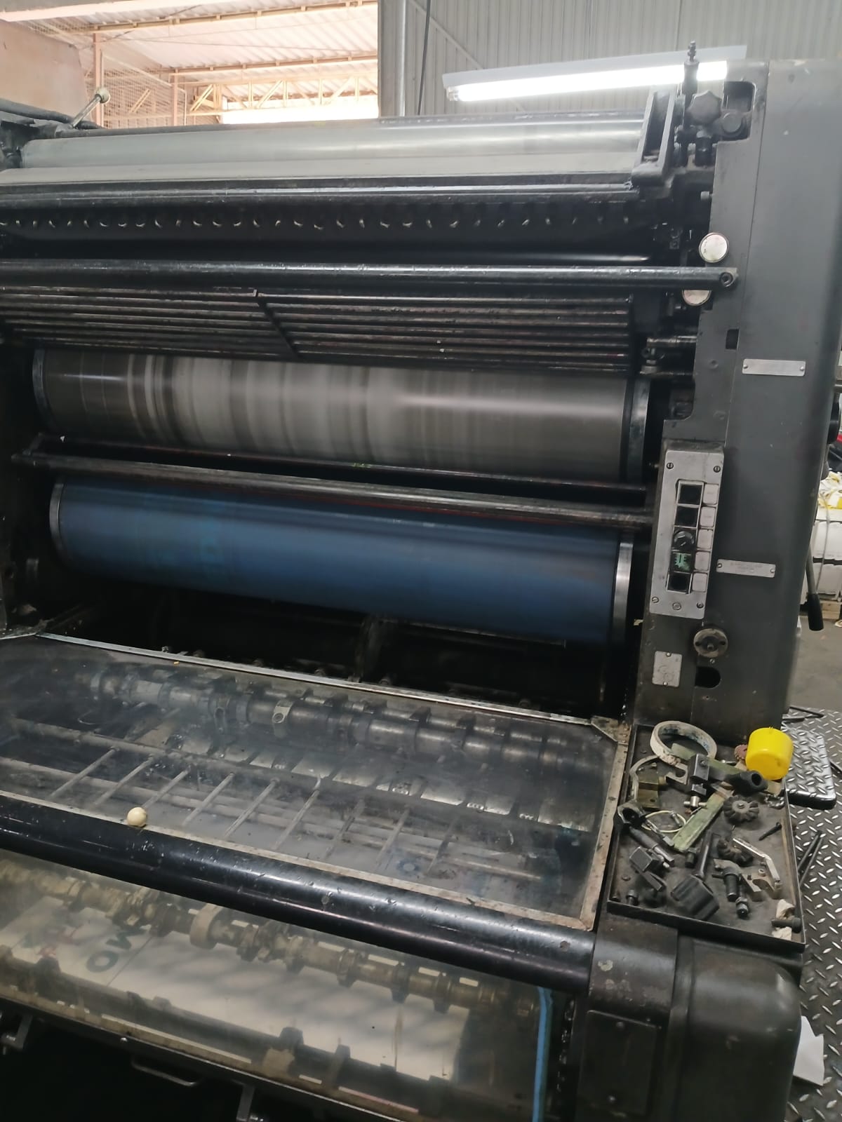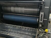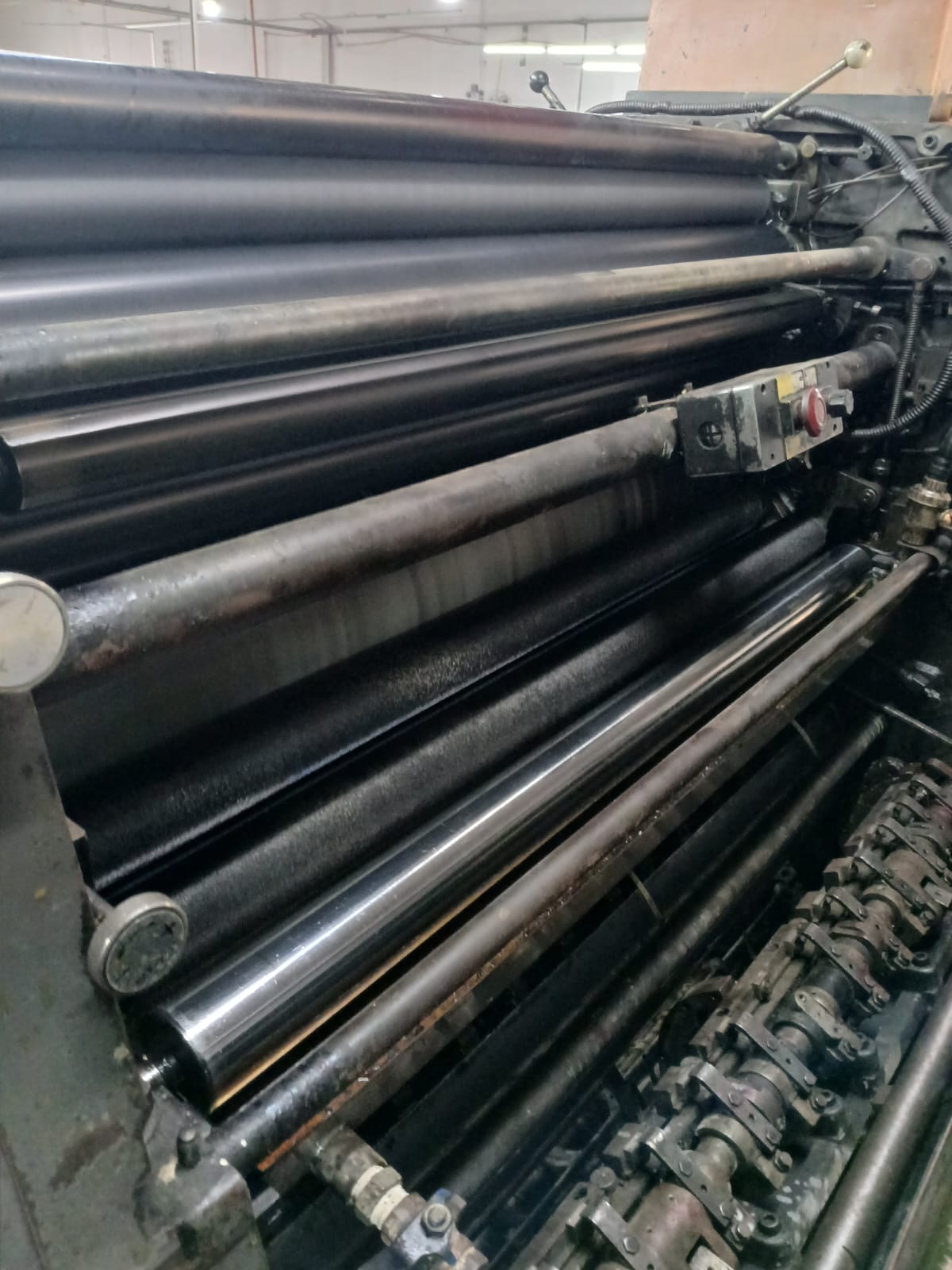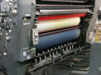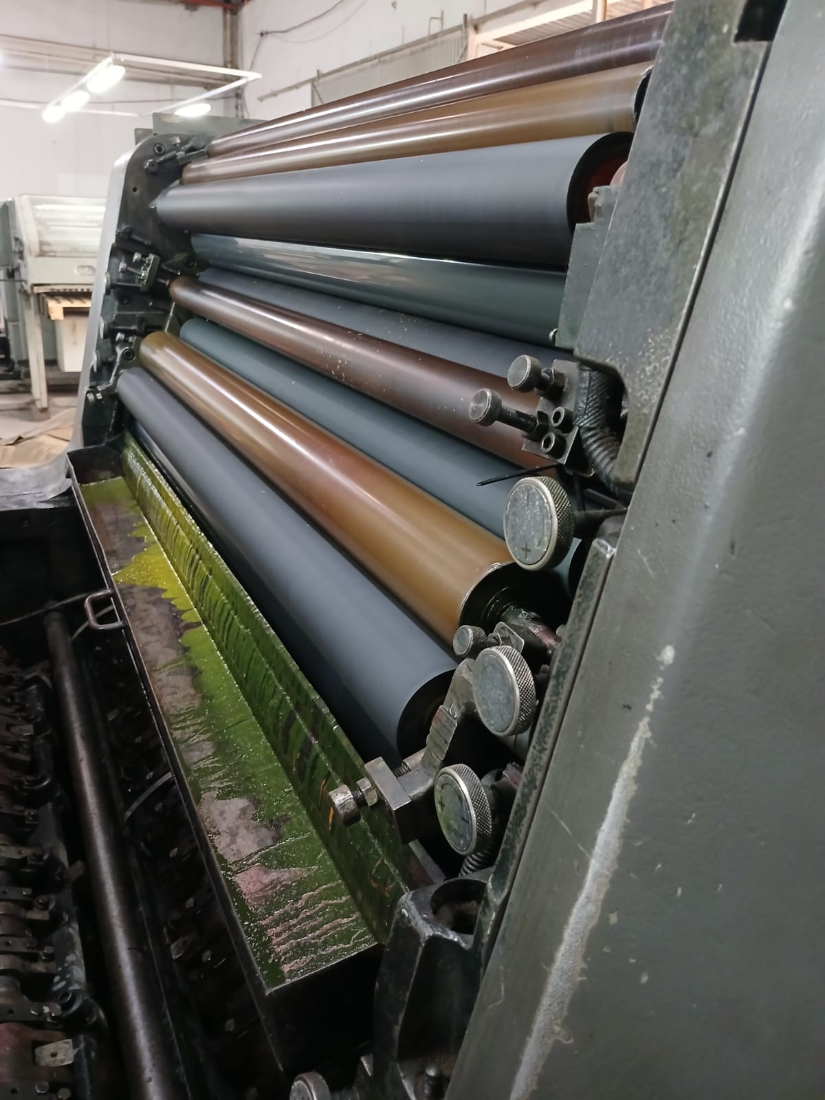 Impressora offset usada, marca Heidelberg, modelo SORSZ, ano 1978, bicolor, formato 72 x 102 cm, equipada com molha convencional, em produção rodando cromia,