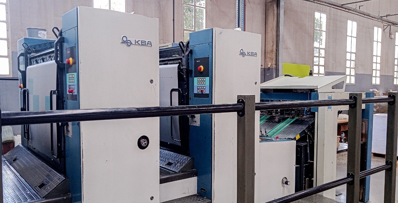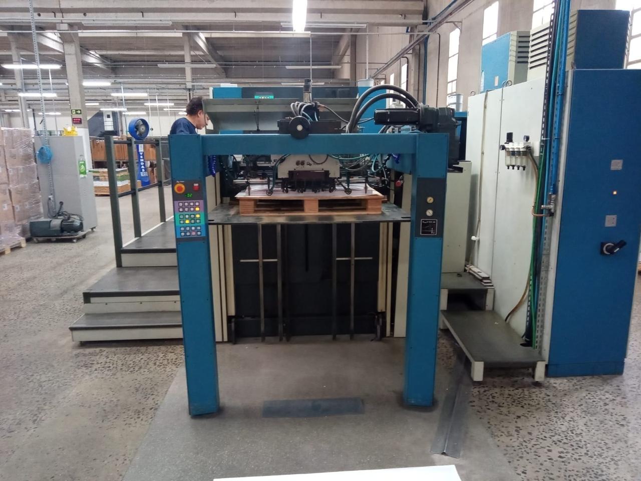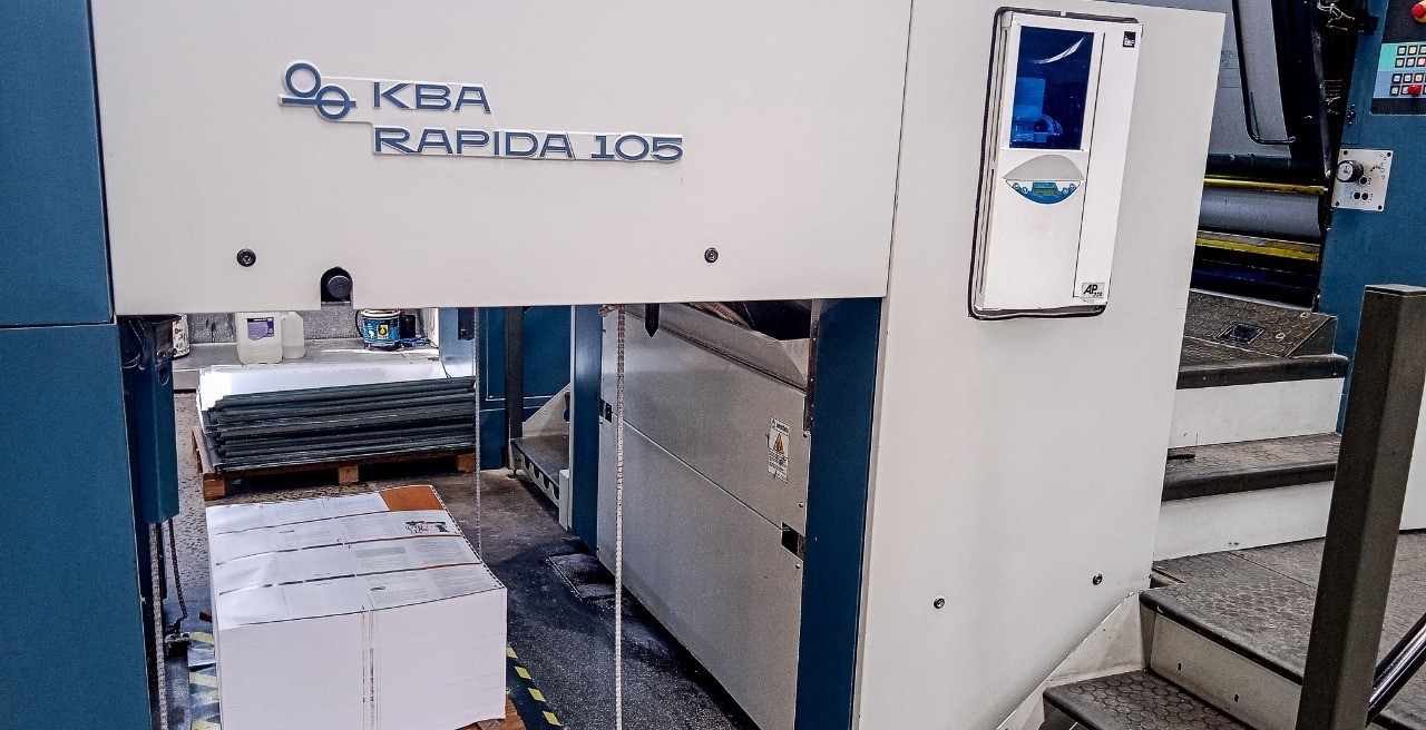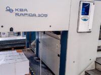 Impressora offset usada, marca KBA, molelo Rapida 105-4, ano 2002 4 cores, formato 72 x 105 cm, equipada com Colortronic, Varidamp, FAPC-troca de chapas, todos os lavadores automáticos, pulverizador Weko AP, molha com refrigeração Baldwin, em produção.