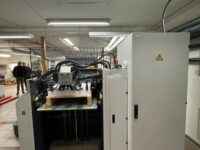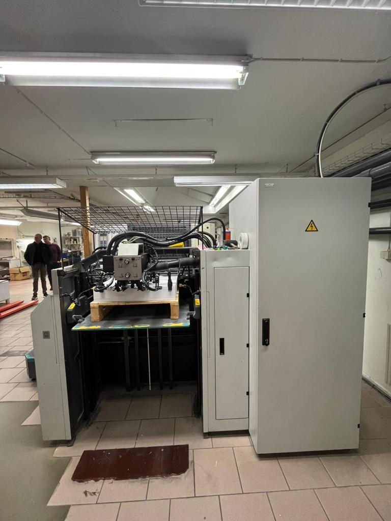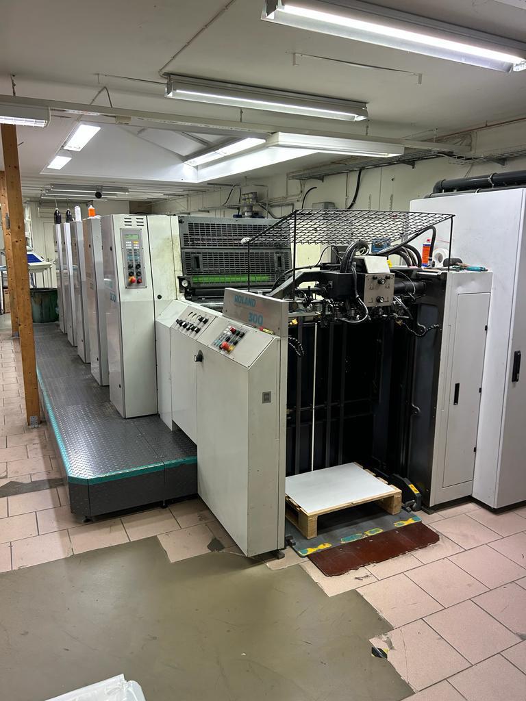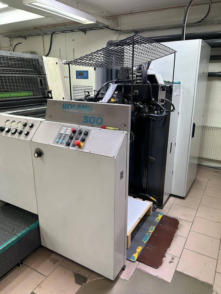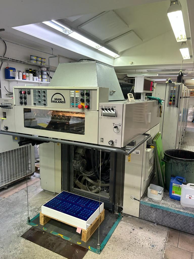 Impressora offset usada, marca Man Roland, modelo 305 P-F, ano 2001, 5 cores, formato (F) 59 x 74 cm, equipada com RCI, molha Rolandmatic com refrigeração Technotrans, APL-troca de chapas semi-automática, lavadores automáticos, reversão 1/4. Único dono, com apenas 80 milhões de impressos!