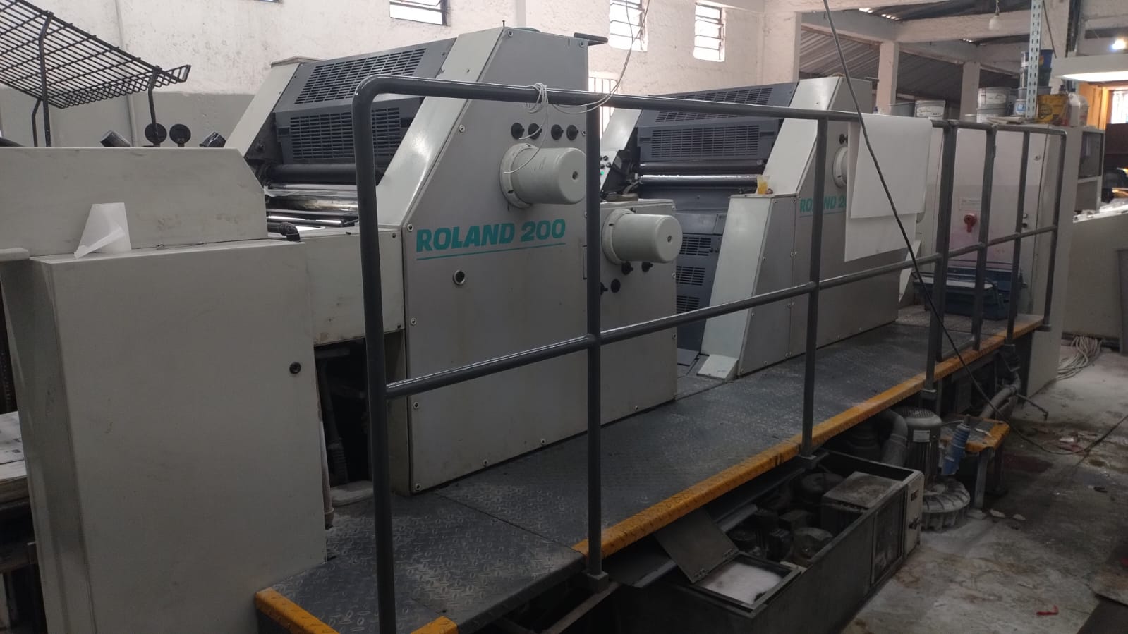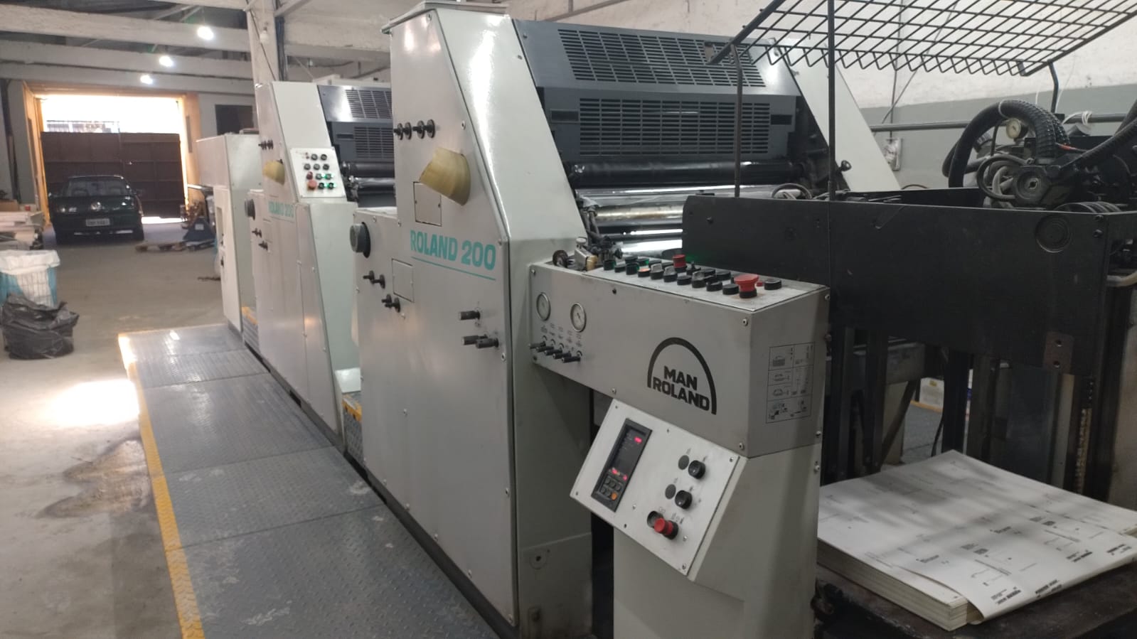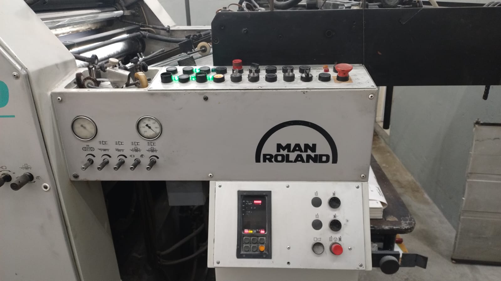 Impressora offset usada, marca Man Roland, modelo 204 HOB, ano 1996, 4 cores, formato 52 x 74 cm, equipada com RCI (console), molha Rolandmatic, pilha alta na saída, em produção.