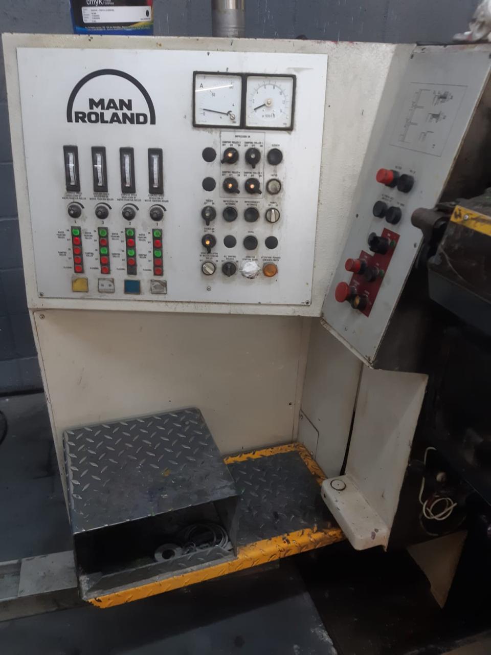 Impressora offset usada, marca Roland, modelo 204 TOB, ano 1995, 4 cores, formato 52 x 74 cm, equipada com RCI, molha Rolandmatic, em produção.