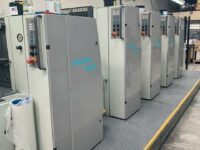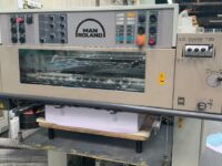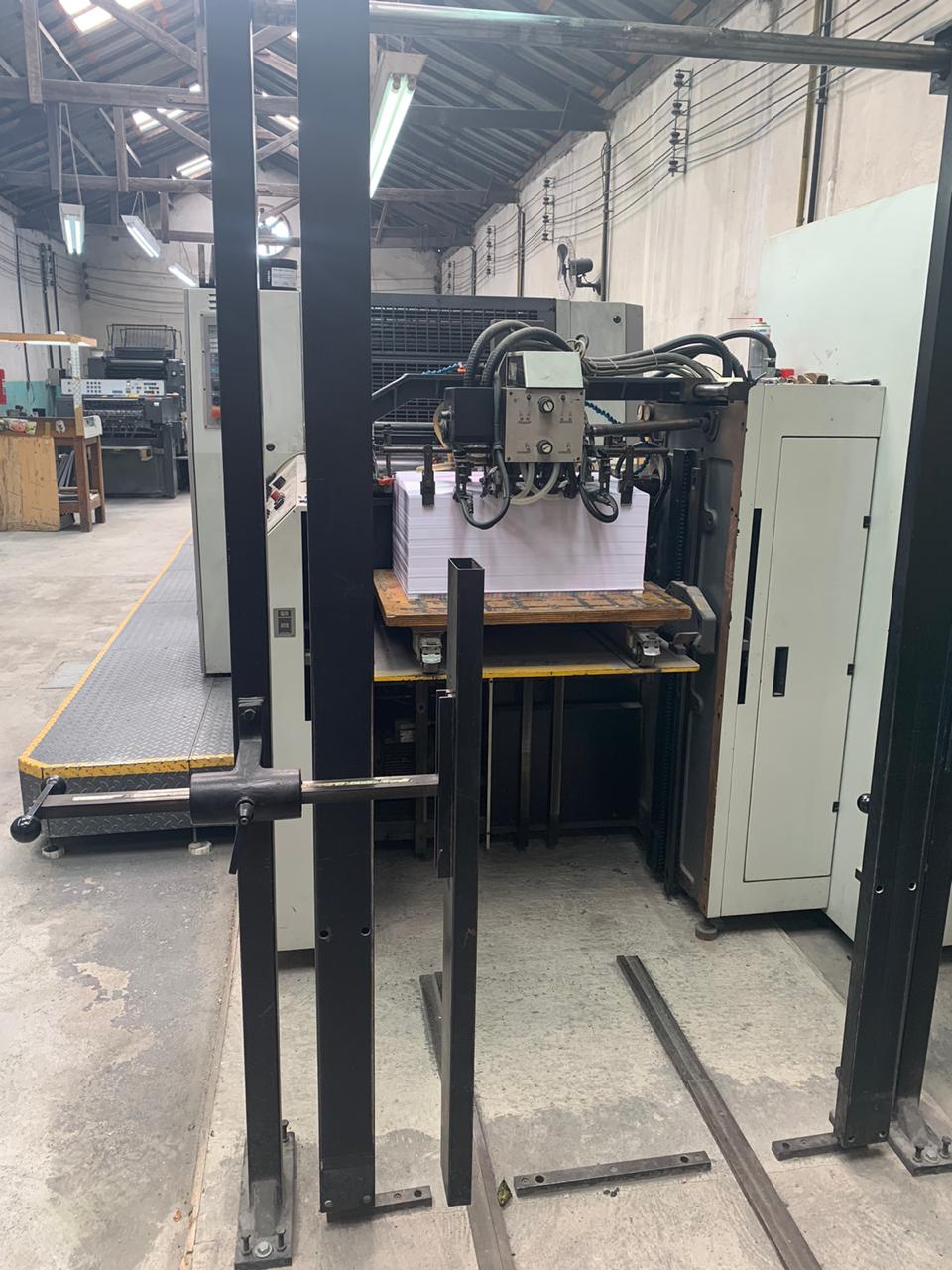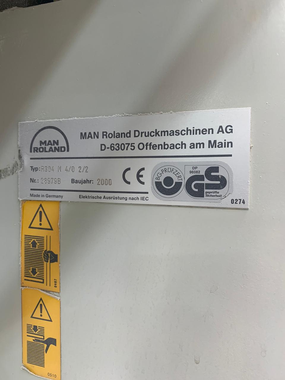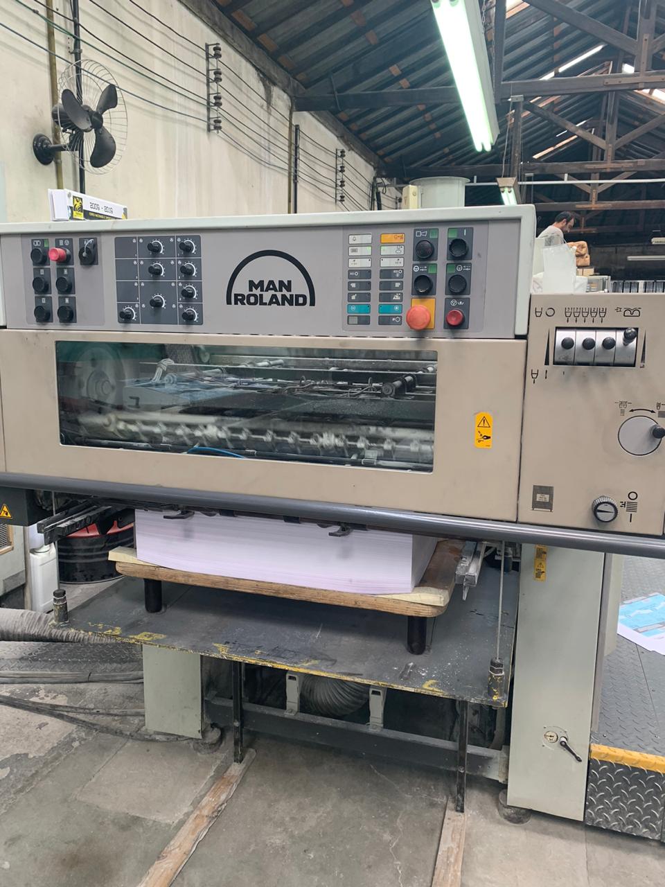 Impressora offset usada, marca Roland, modelo 304+L, ano 2000, formato 52 x 74 cm, 4 cores + unidade de verniz, RCI, APL-troca de chapas, lavadores automáticos, secador IR, em produção.