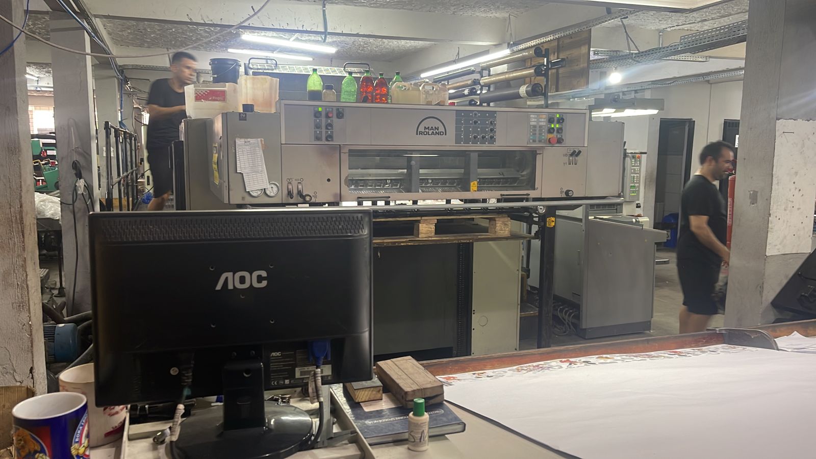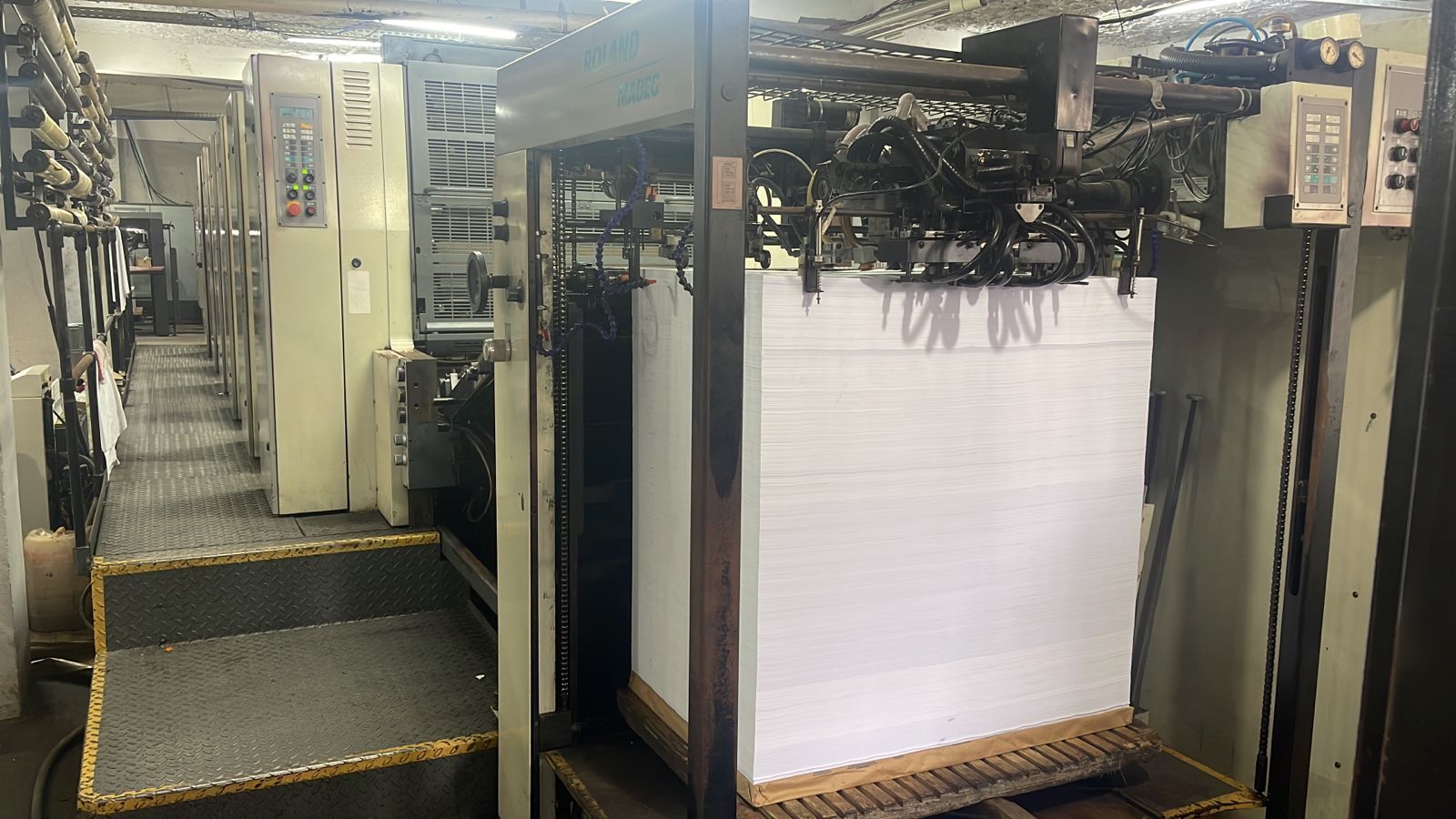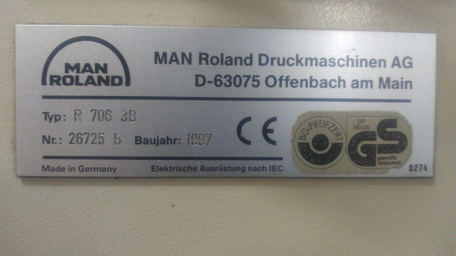 Impressora offset usada, marca Roland, modelo 706 3B, ano 1997, 6 cores, formato 72 x 102 cm, equipada com RCI, CPL-troca de chapas semi-autómatica, em produção.