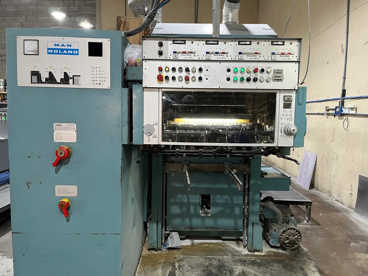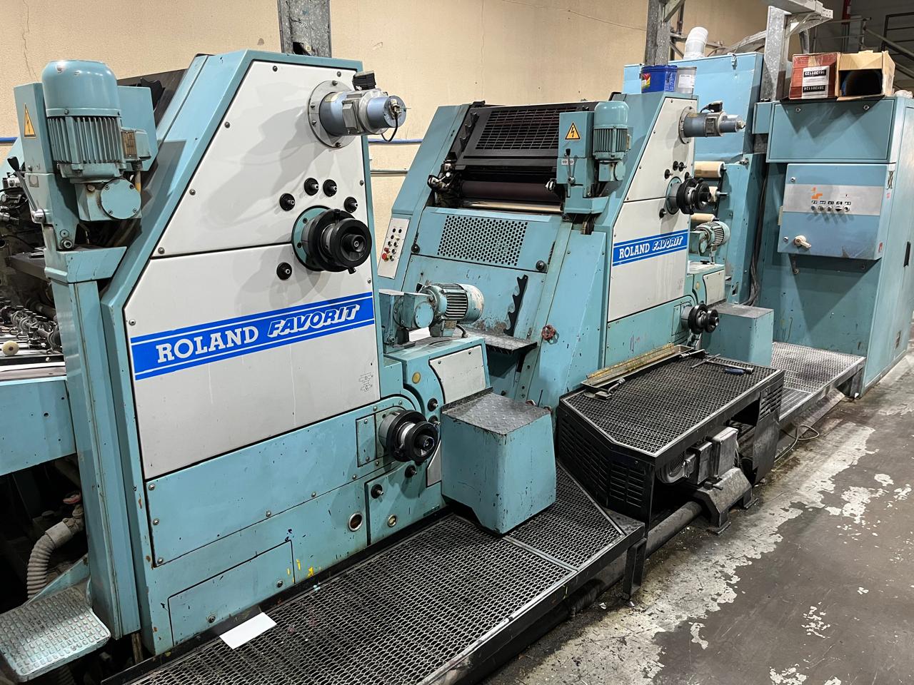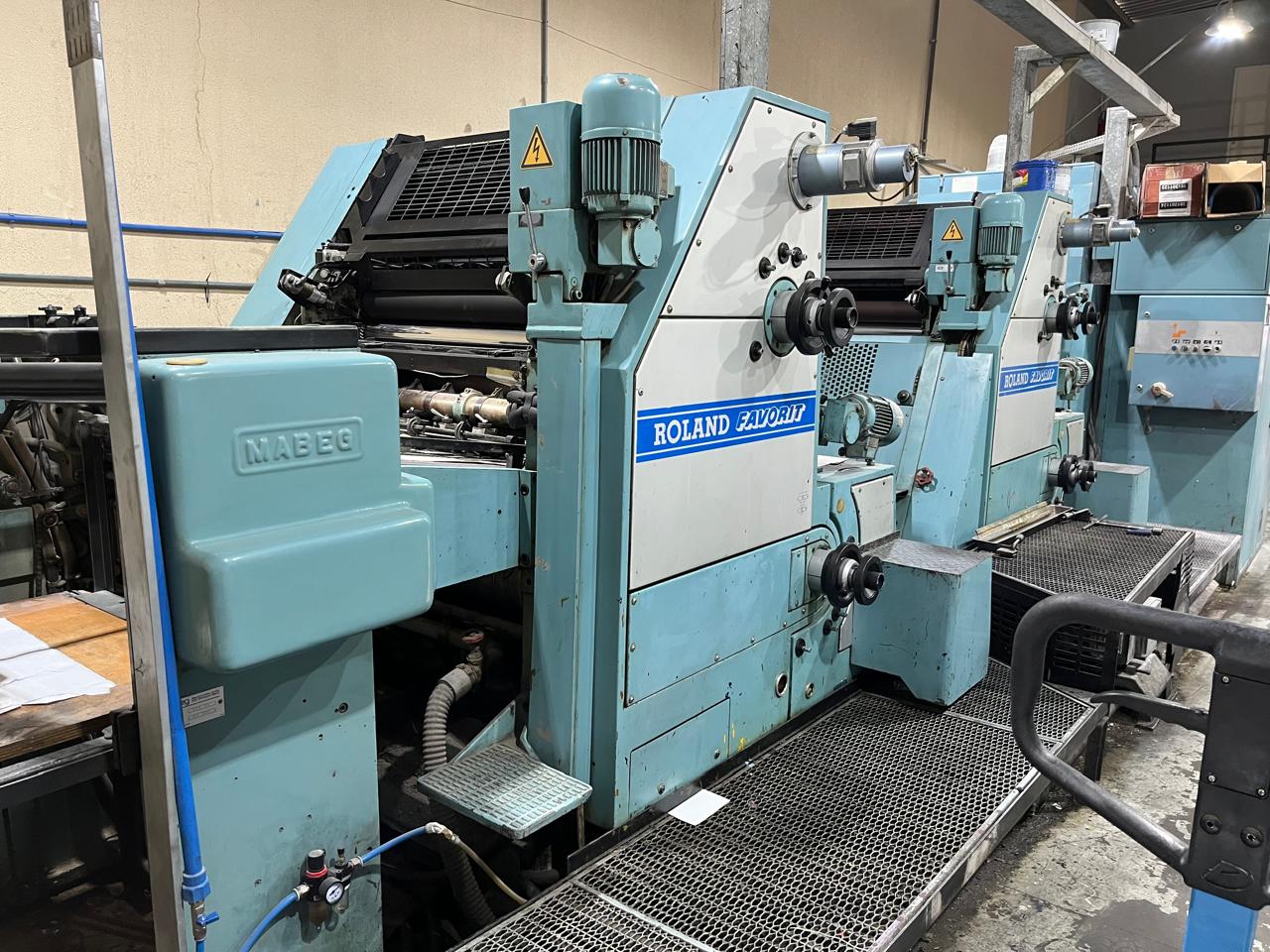 Impressora offset usada, marca Roland, modelo Favorit RVF, ano 1980, 4 cores, formato 52 x 72 cm, molha Rolandmatic (Alcolor), em produção.