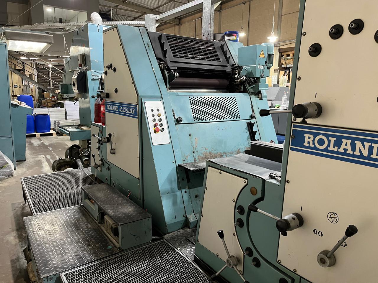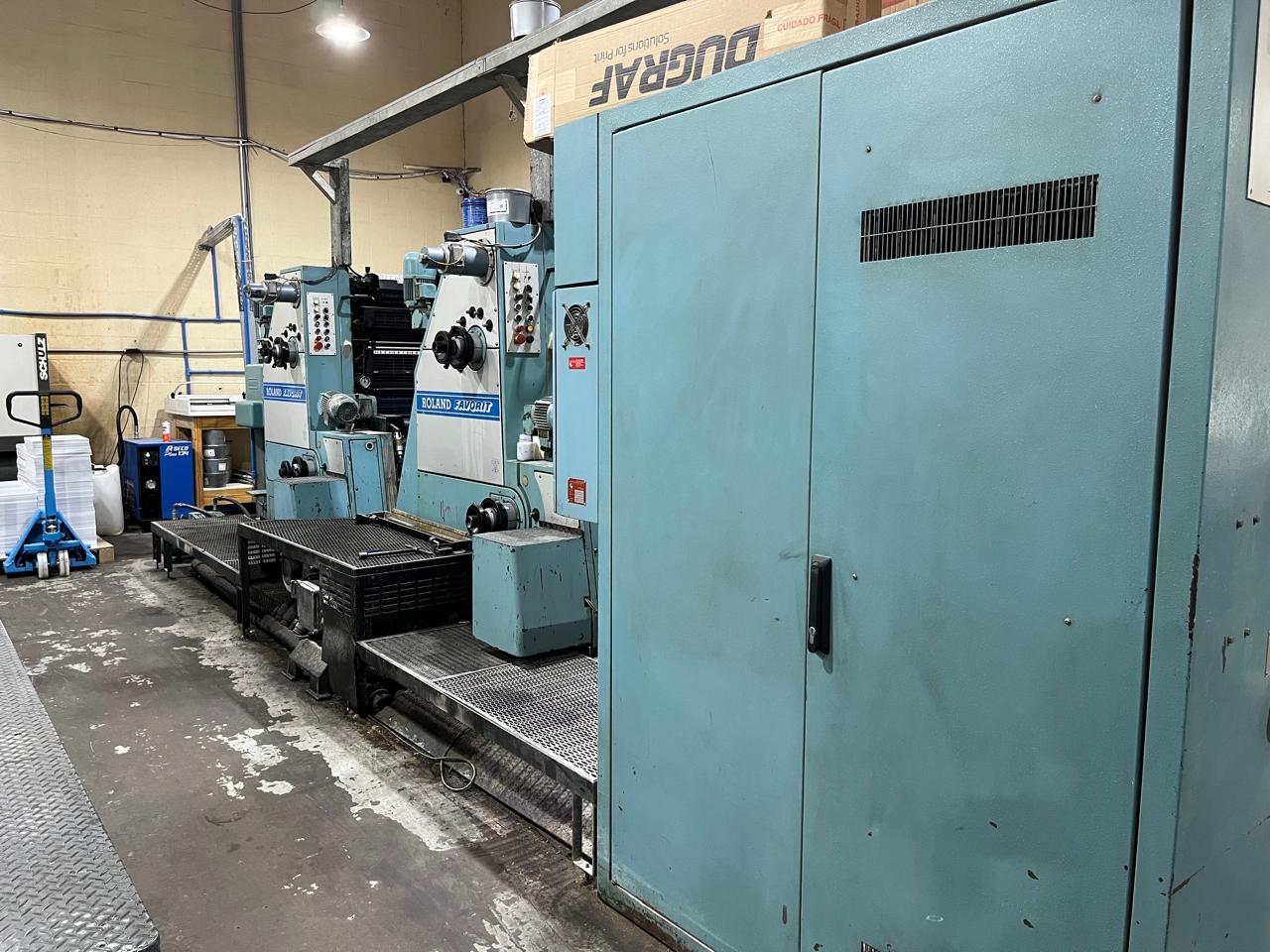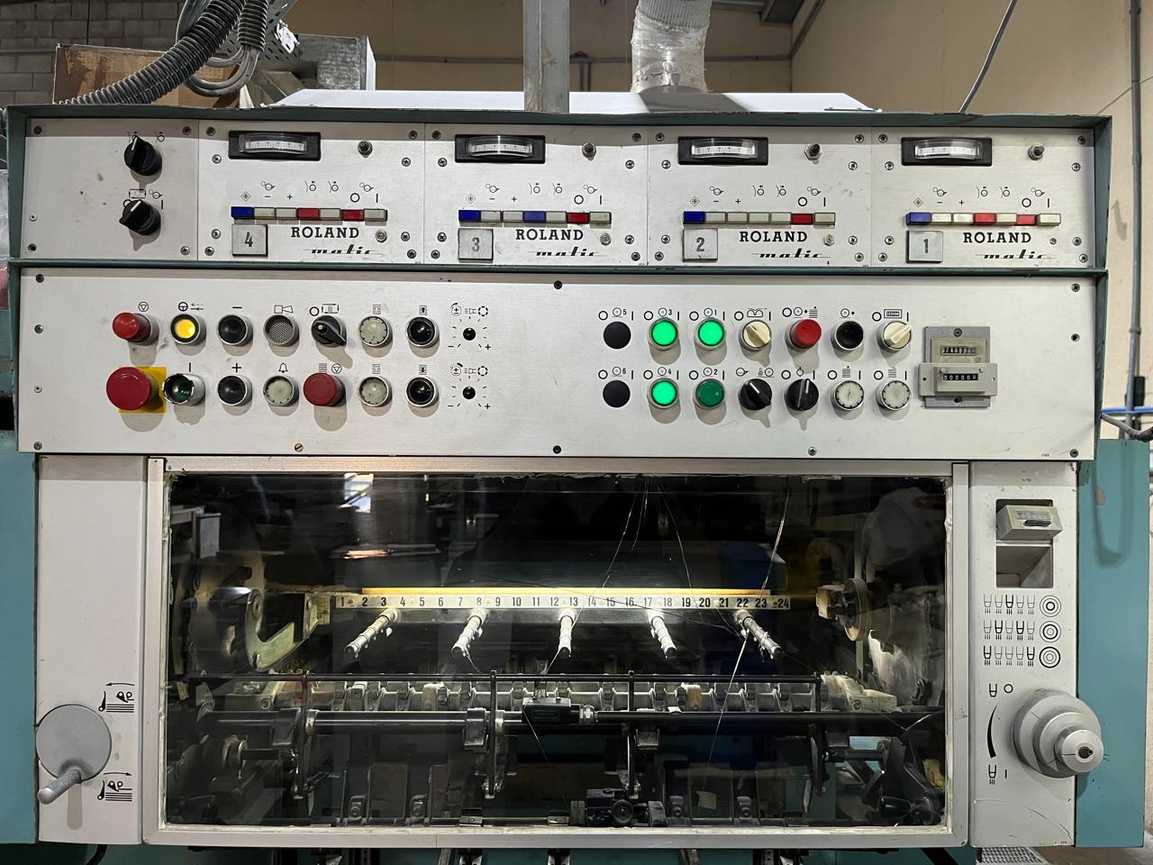 Impressora offset usada, marca Roland, modelo Favorit RVF, ano 1980, 4 cores, formato 52 x 72 cm, molha Rolandmatic (Alcolor), em produção.