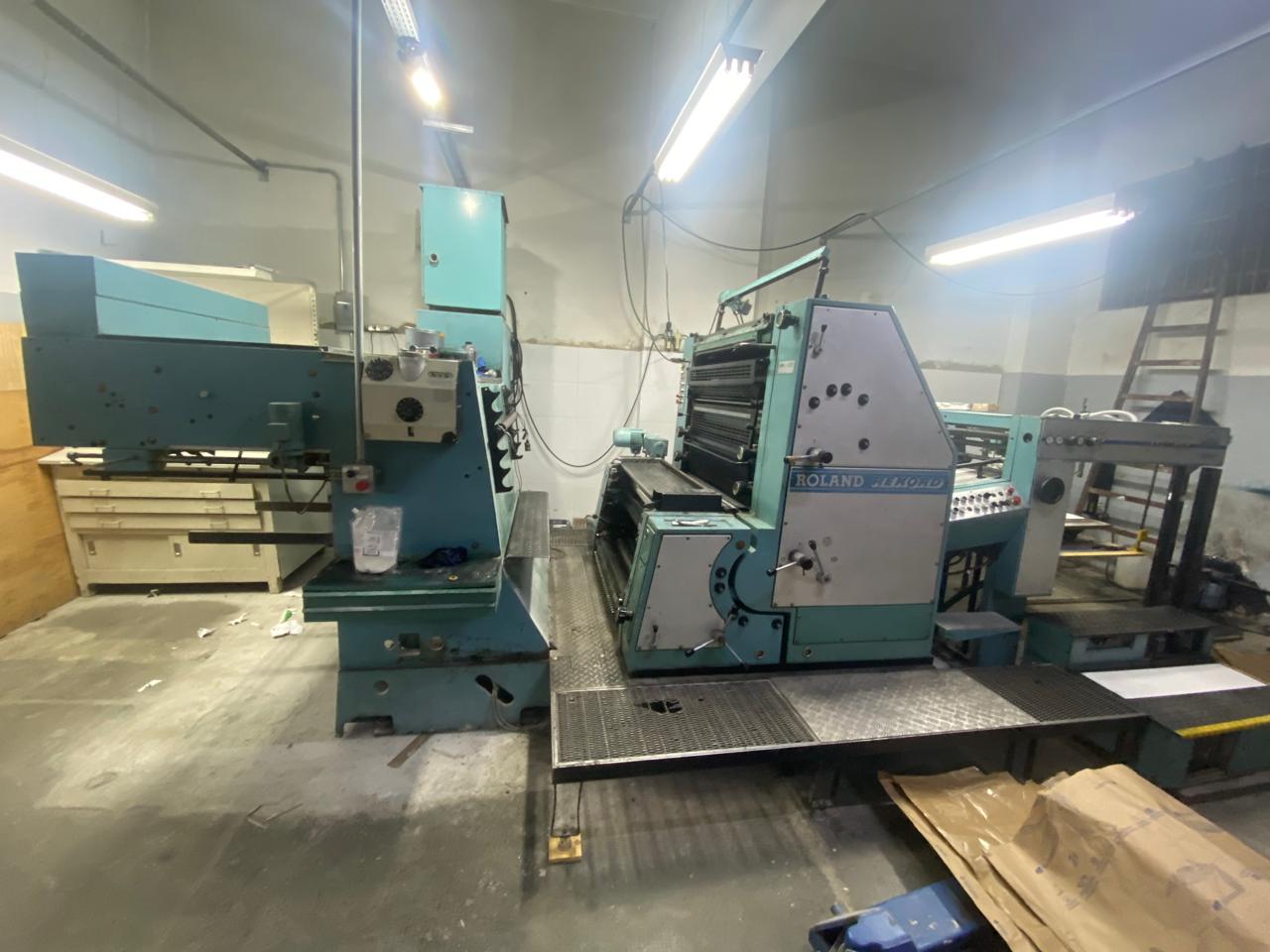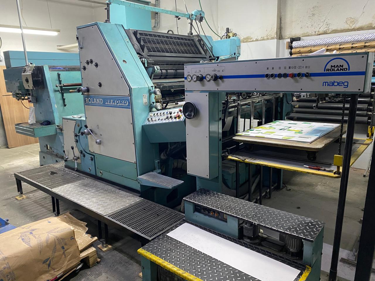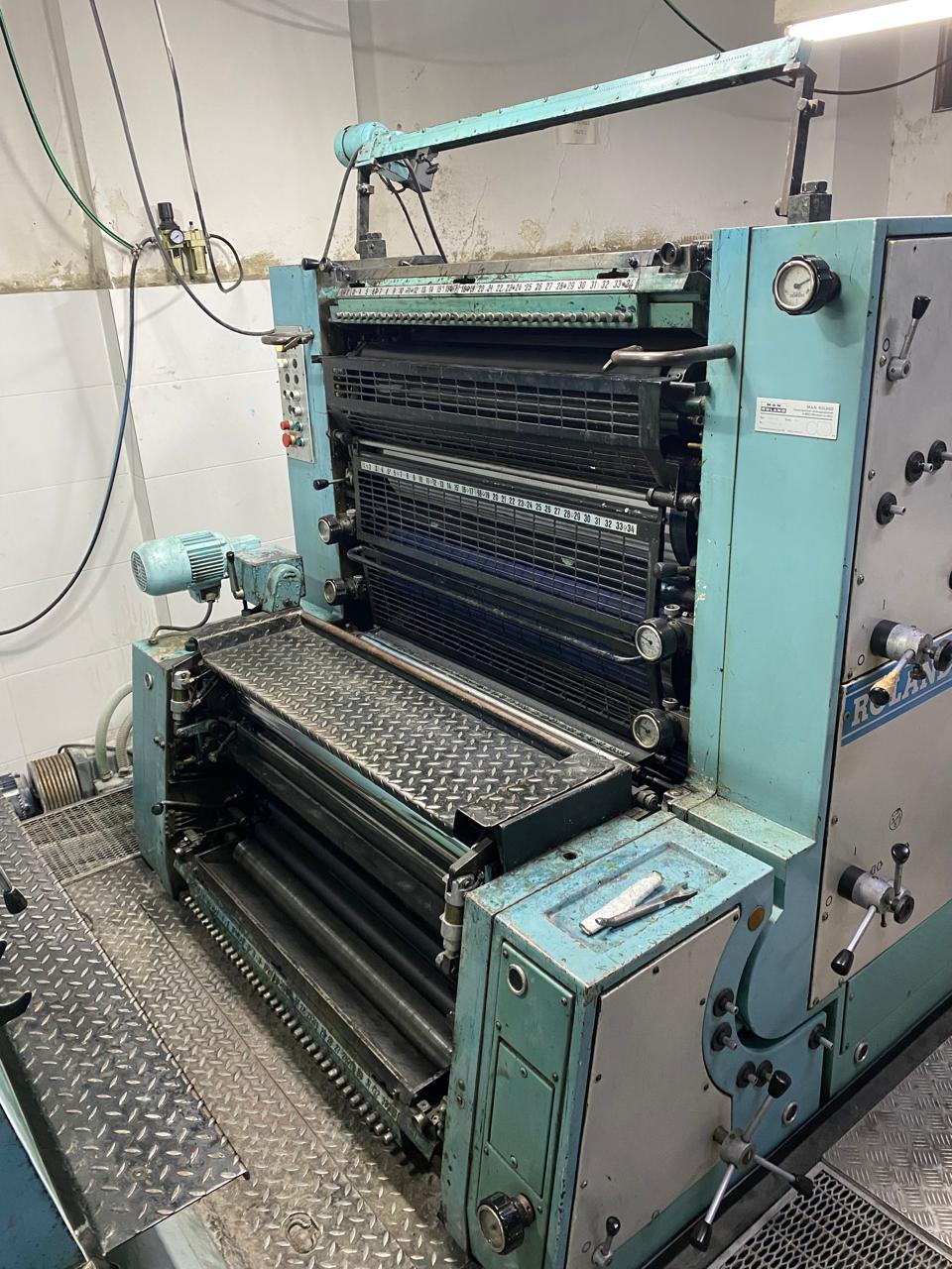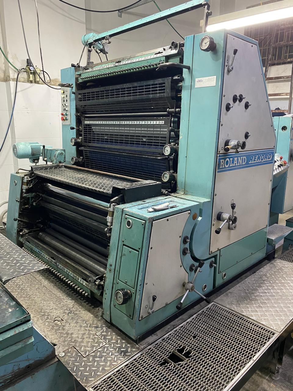 Impressora offset usada, marca Roland, modelo Rekord RZK, ano 1987, bicolor, formato 72 x 102 cm, molha Rolandmatic (Álcool), em produção.