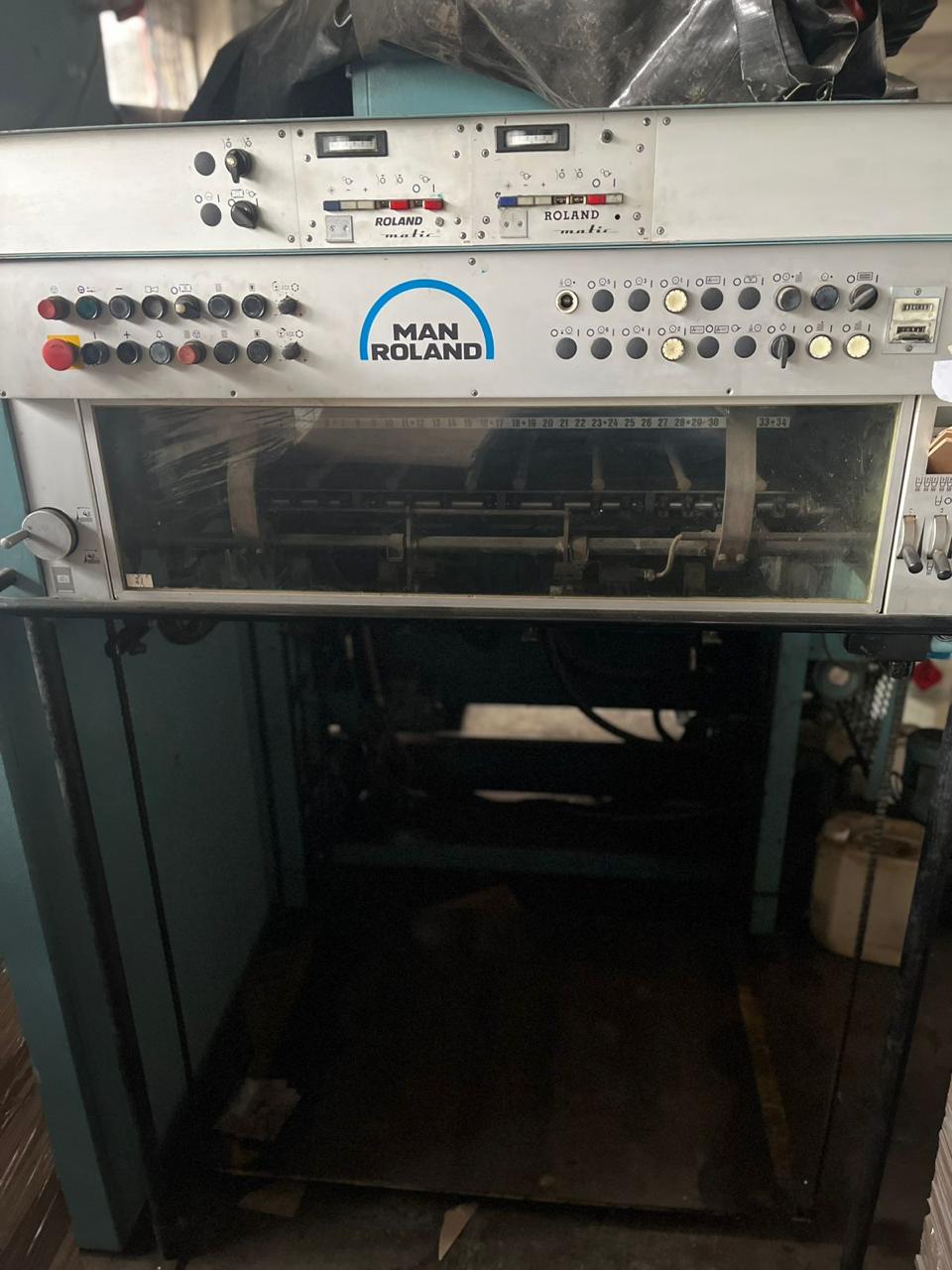 Impressora offset usada, marca Roland, modelo RZK+L, ano 1988, bicolor + unidade de verniz, formato 72 x 102 cm, espessura do papel de 0,04 a 0,6 mm, alimentador Mabeg, detector eletromecânico de dupla folha, molha Rolandmatic, pilha alta na saída.