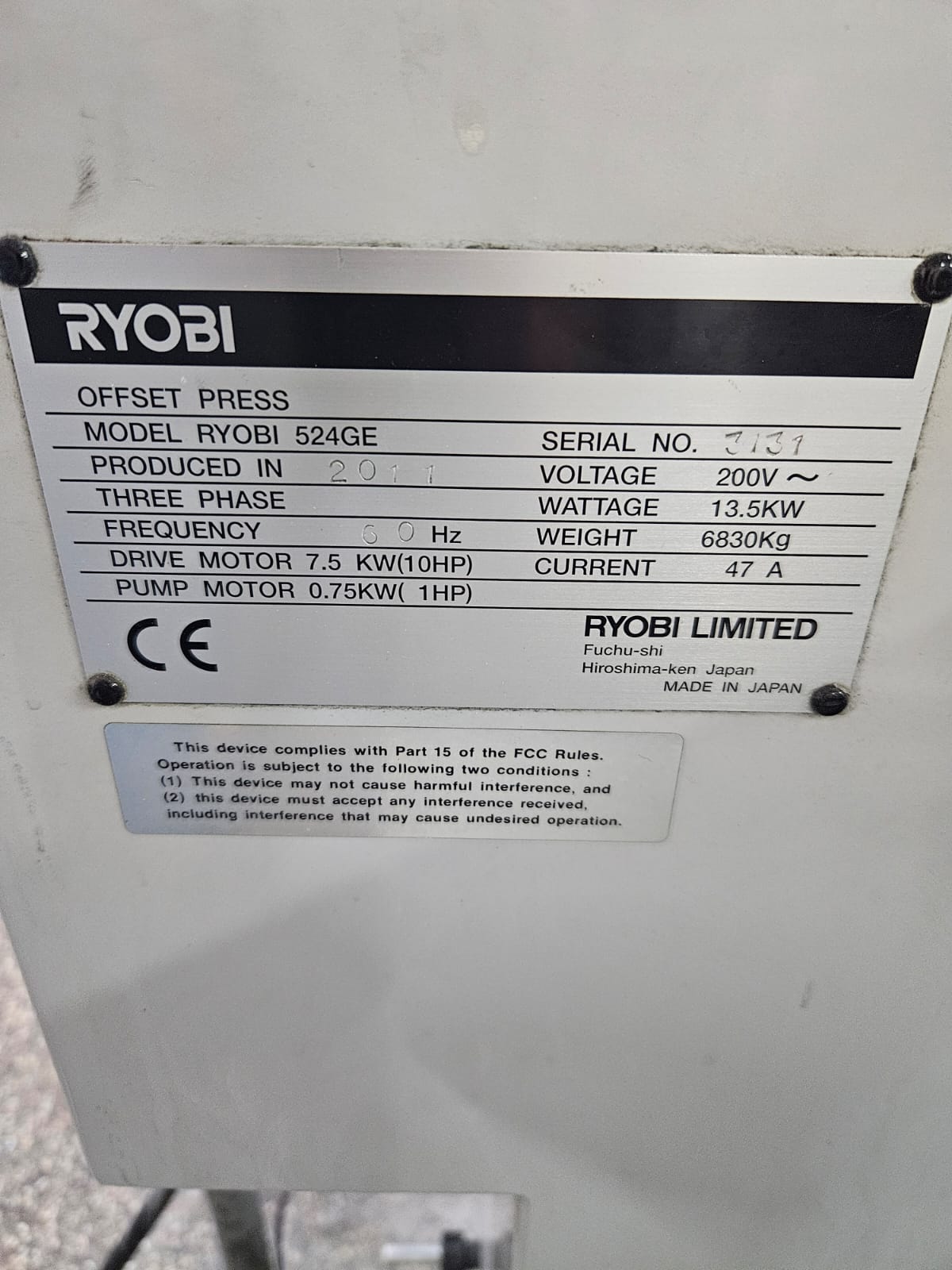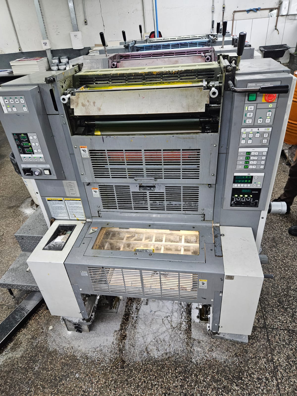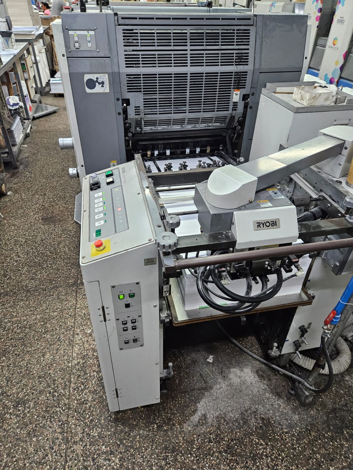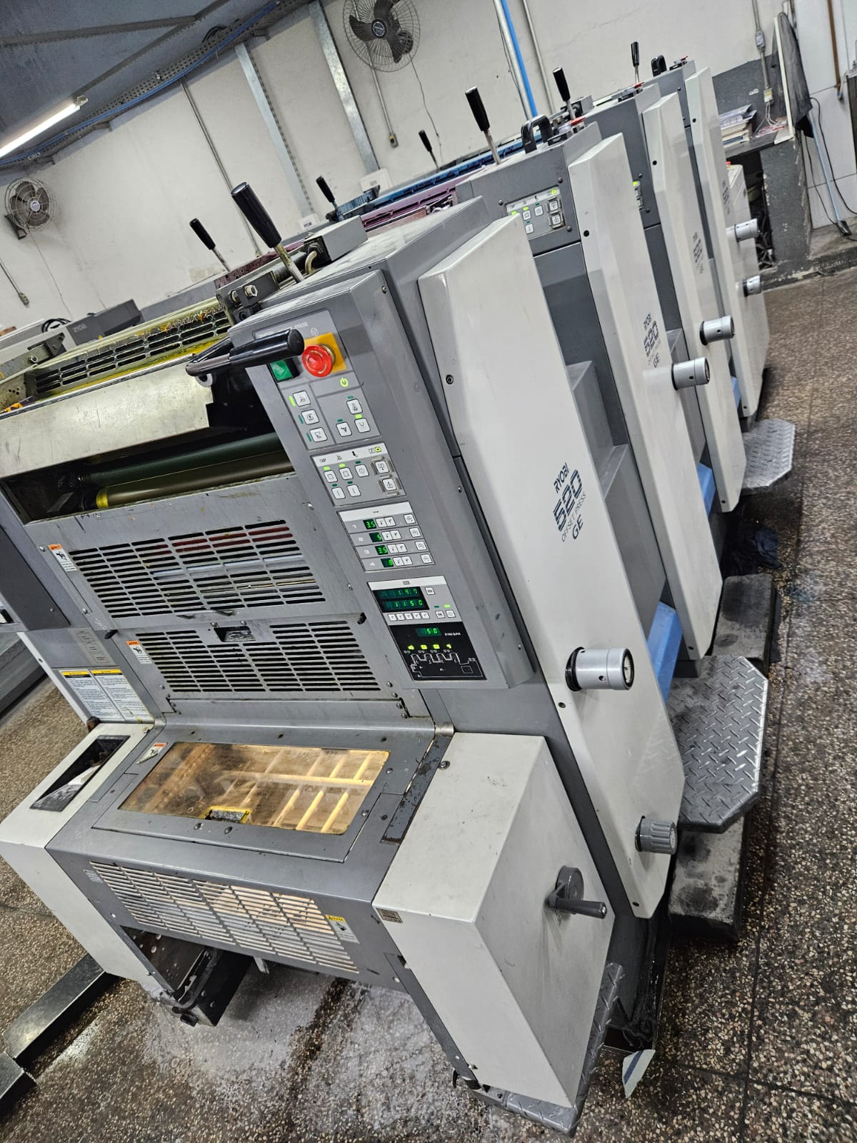 Impressora offset usada, marca Ryobi, modelo 524 GE, ano 2011, 4 cores, formato 37 x 52 cm, equipada com PCS remote control, SAPC – troca de chapas semi-automática, molha Ryobimatic. lavadores automáticos, em produção.