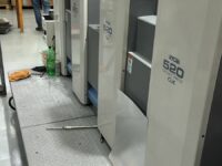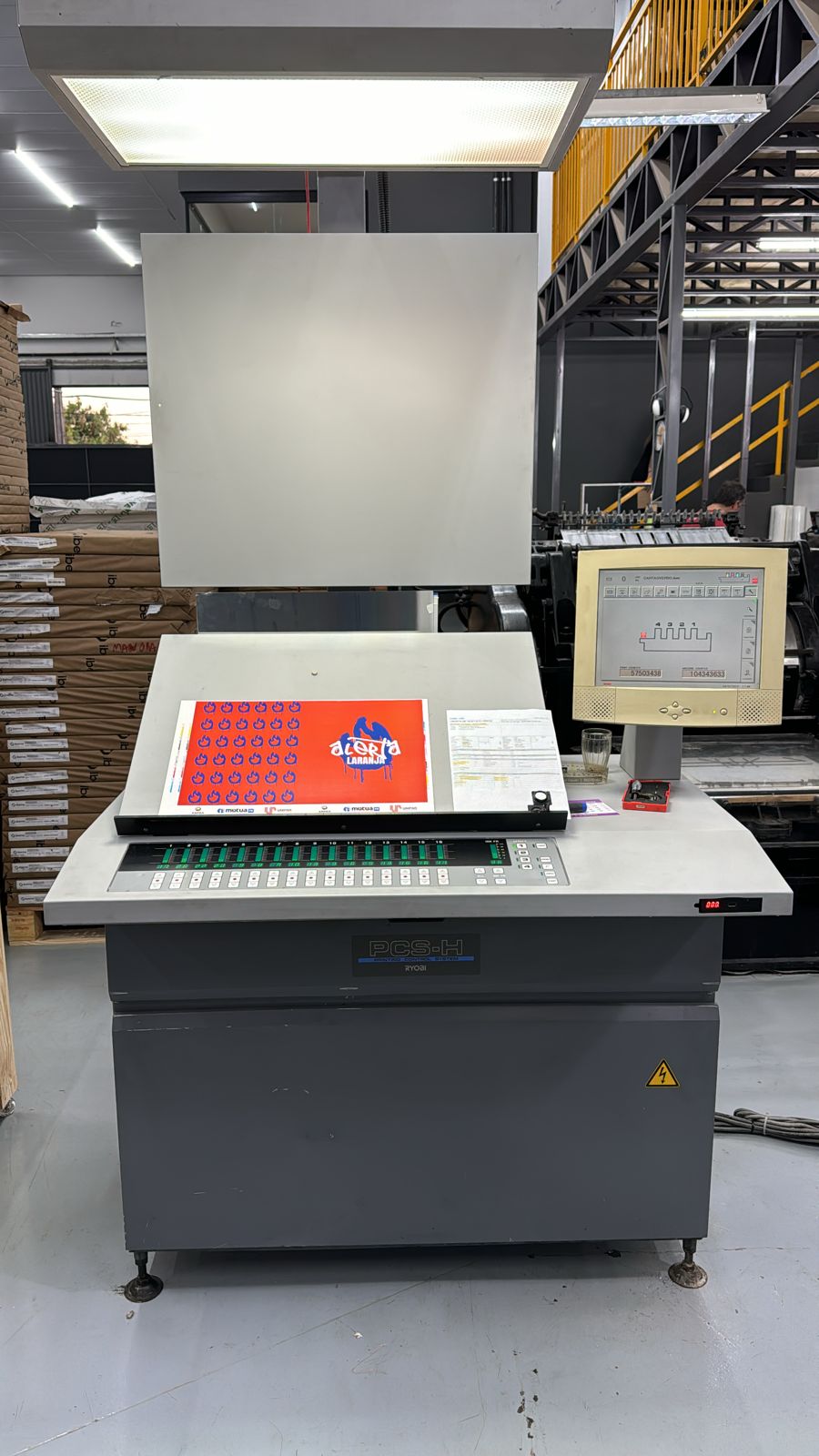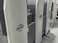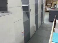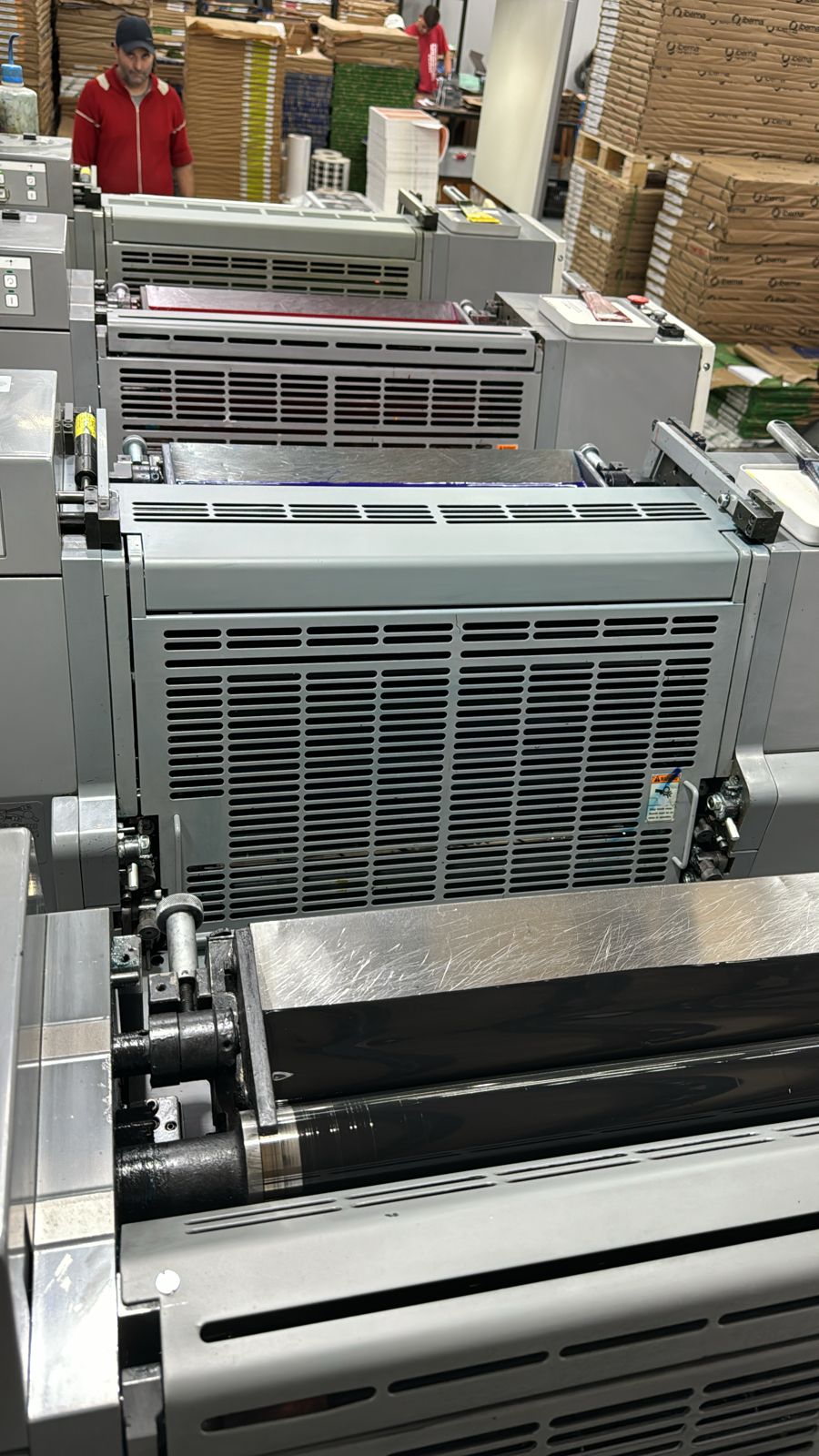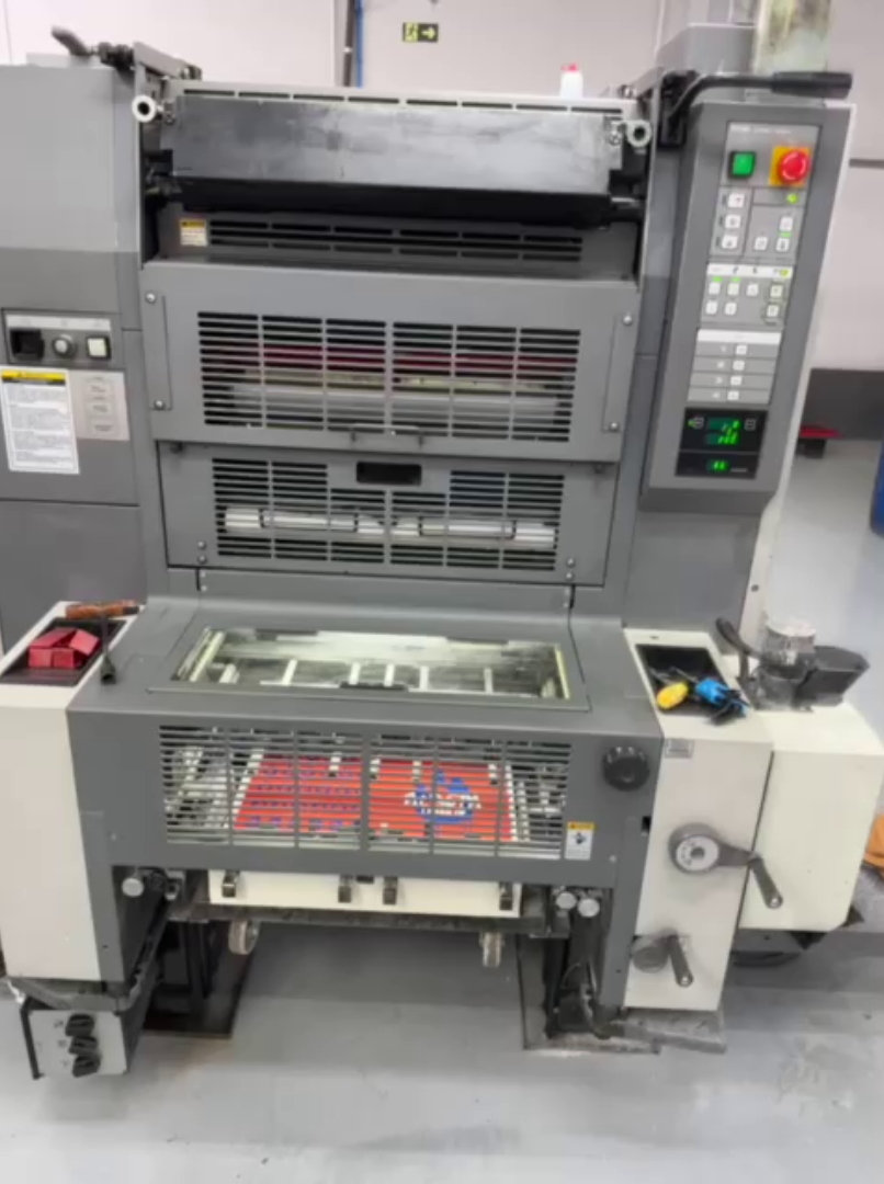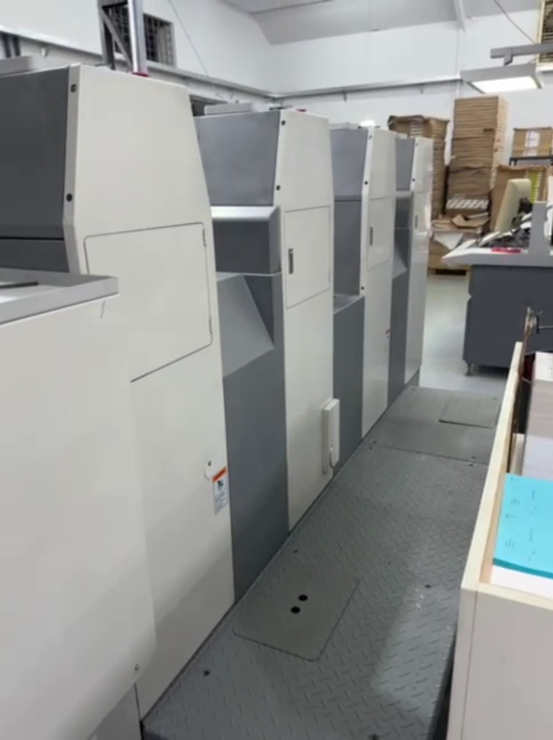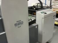 Impressora offset usada, marca Ryobi, modelo 524 GX, ano 2006, 4 cores, formato 37 x 52 cm, equipada com PCS console, SAPC – troca de chapas semi-automática, lavadores automáticos, em produção.