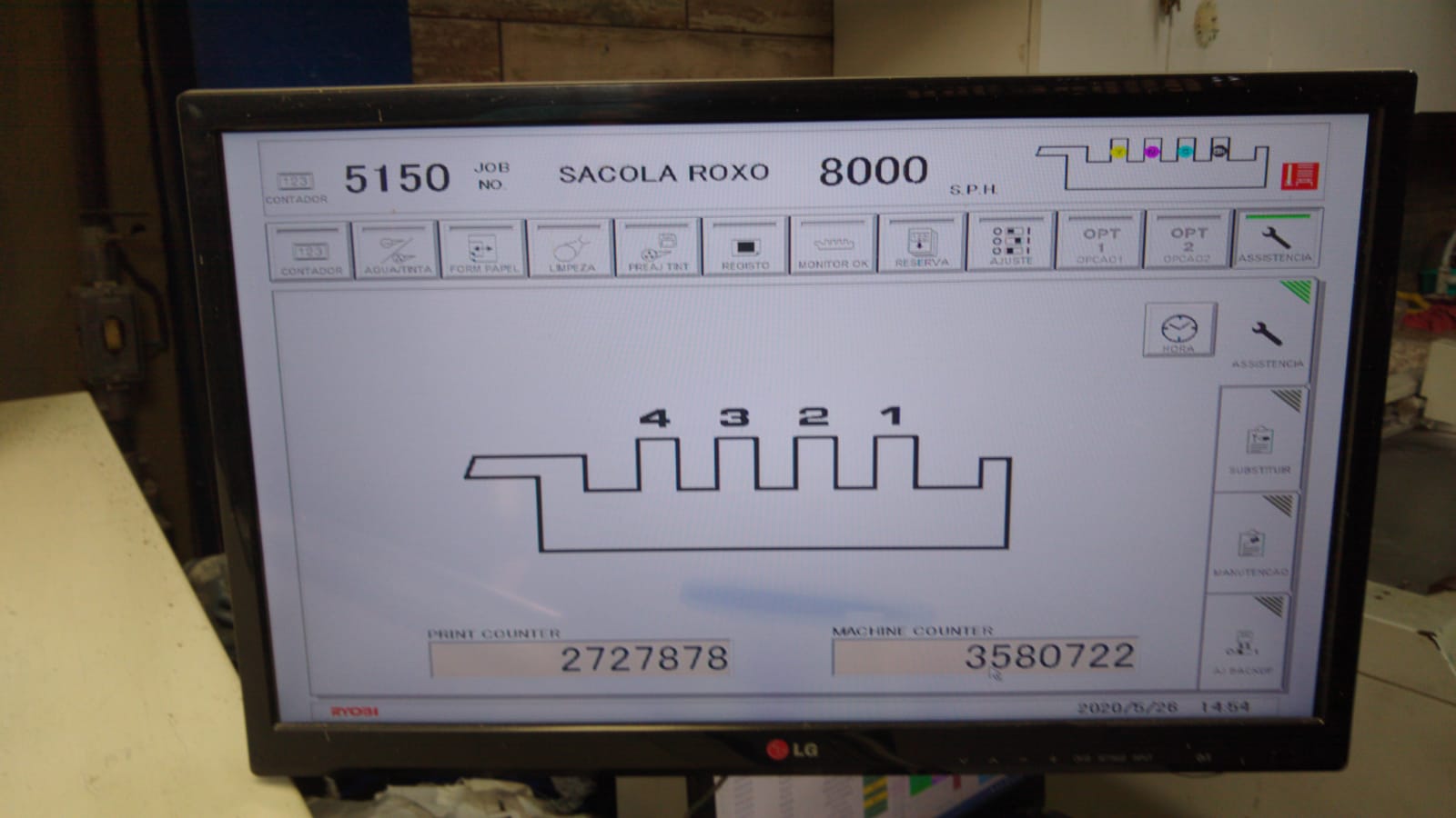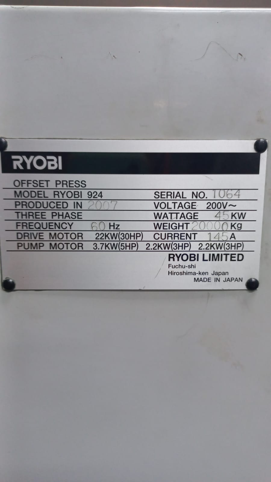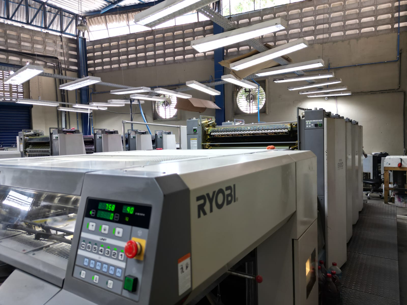 Impressora offset usada, marca Ryobi, modelo 924, ano 2007, 4 cores, formato 62 x 92 cm, equipada com PCS-G console, SAPC-troca de chapas semi-automática, molha Ryobimatic, Preset, lavadores automáticos, com apenas 35 milhões de impressos.