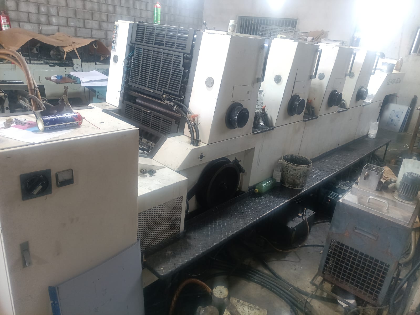 Impressora offset usada, marca Sakurai, modelo Oliver 458 ED, ano 2000, 4 cores, formato 450 x 580 mm, equipada com SCC controle de tinteiros e registros, SAPC-semi auto plate change, molha Olivermatic, pilha alta na saída.