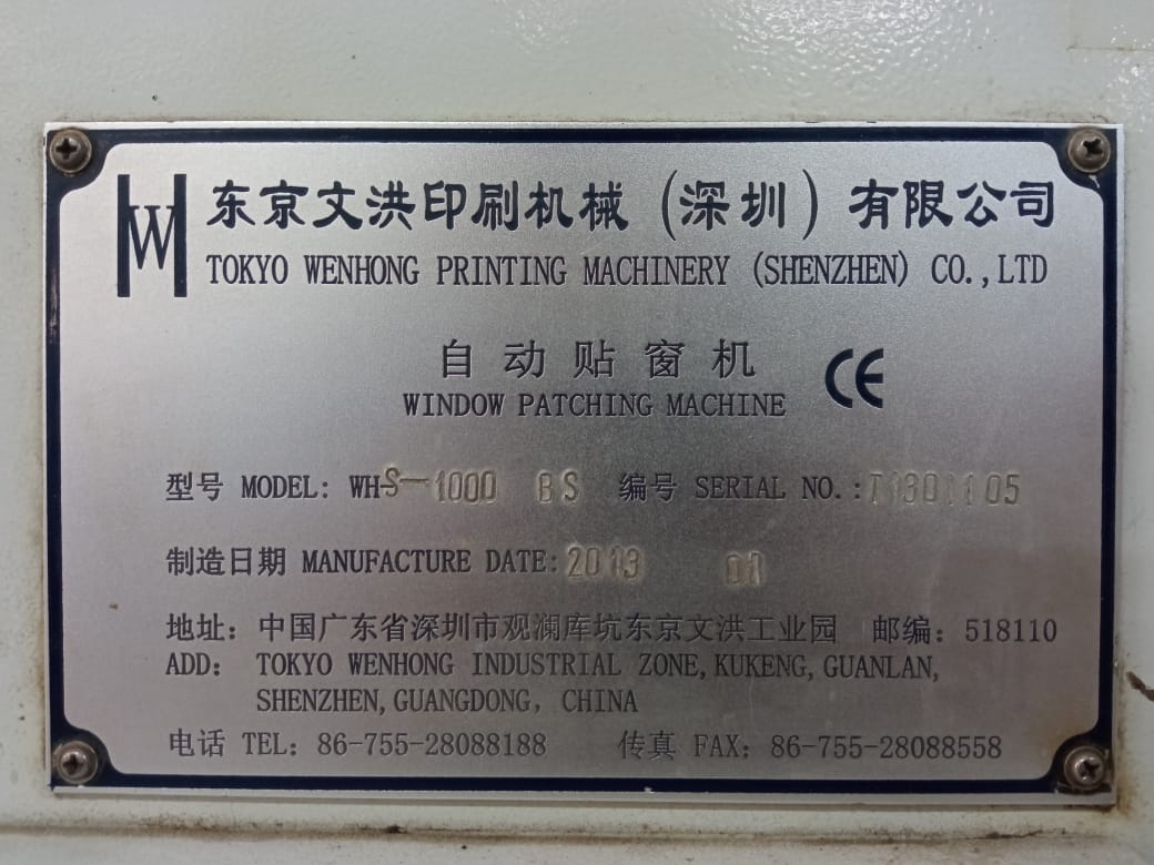 Janeleira coladeira de acetato usada, marca Tokio Wenhong, modelo WH-S-1000 BS, ano 2013, com as seguintes especificações:
